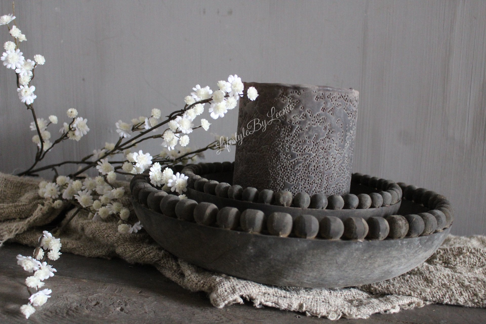 Leuk bakje met twee vakken in een donkere vergrijzde kleur. Erg mooi op het aanrecht met een zeeppompje, of voor de huissleutels of andere kleine spulletjes.