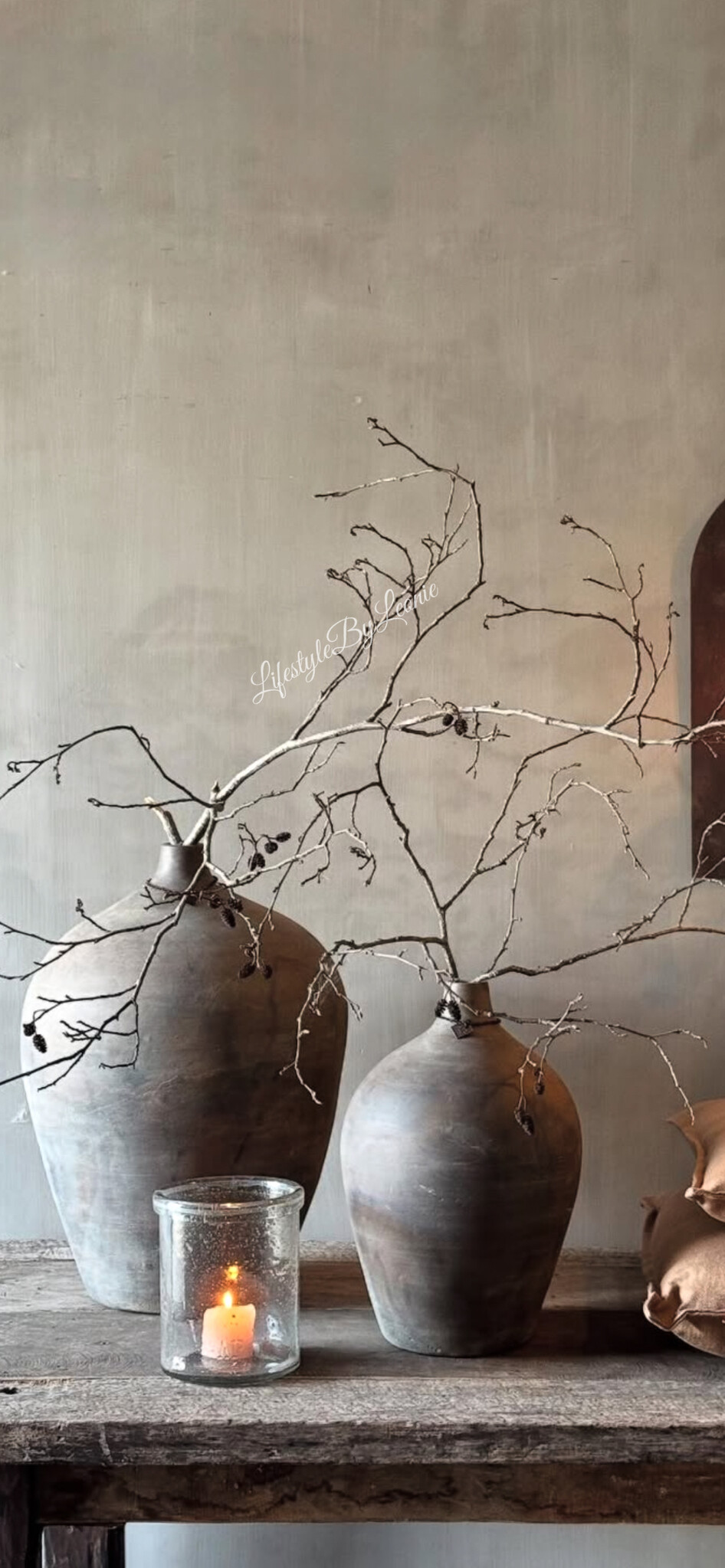Kruik Agra van Aura Peeperkorn is een prachtige grote oude stenen kruik met een vergrijsde kleur. De kruik is er in een grote en een iets kleinere uitvoering.