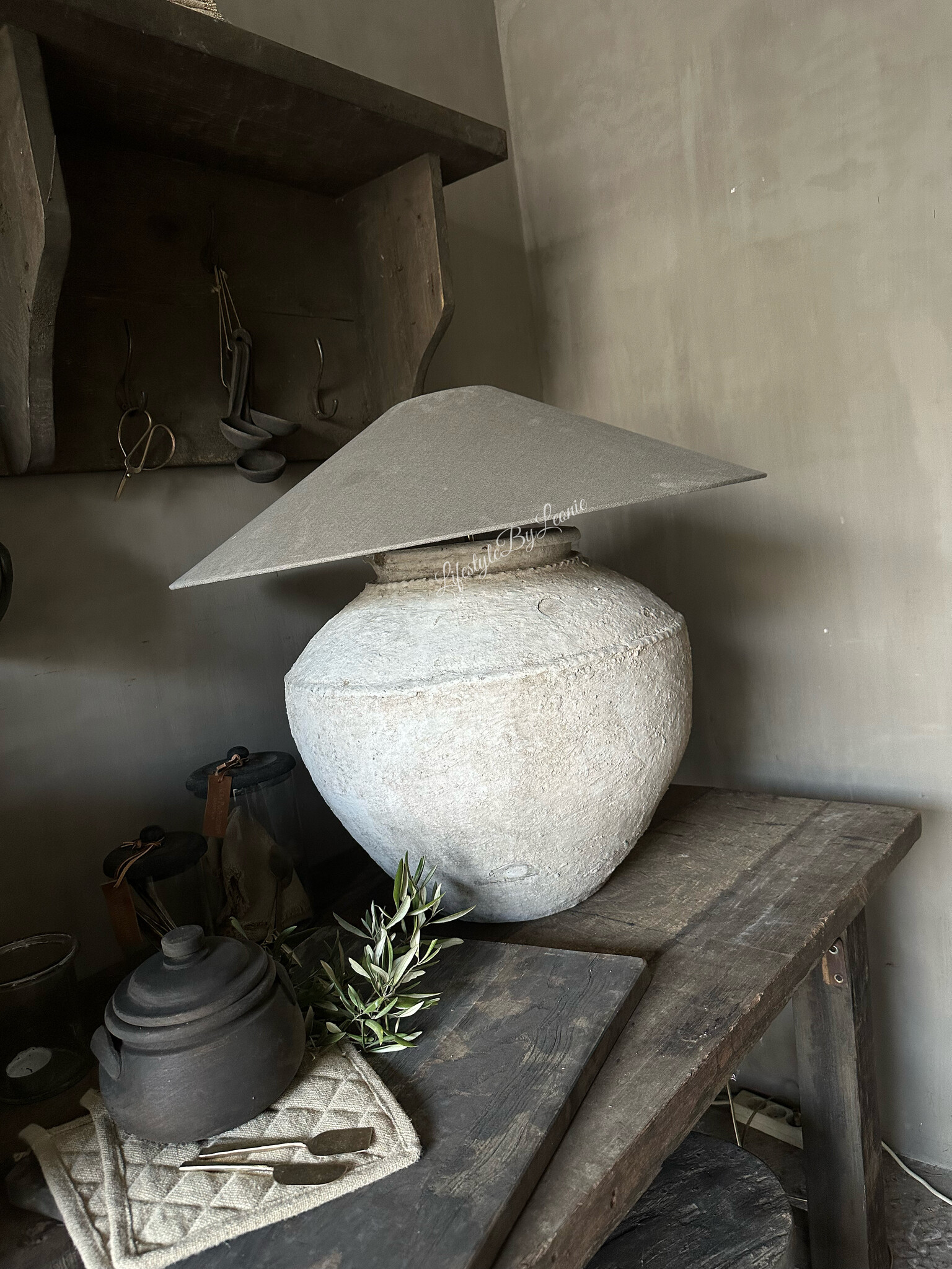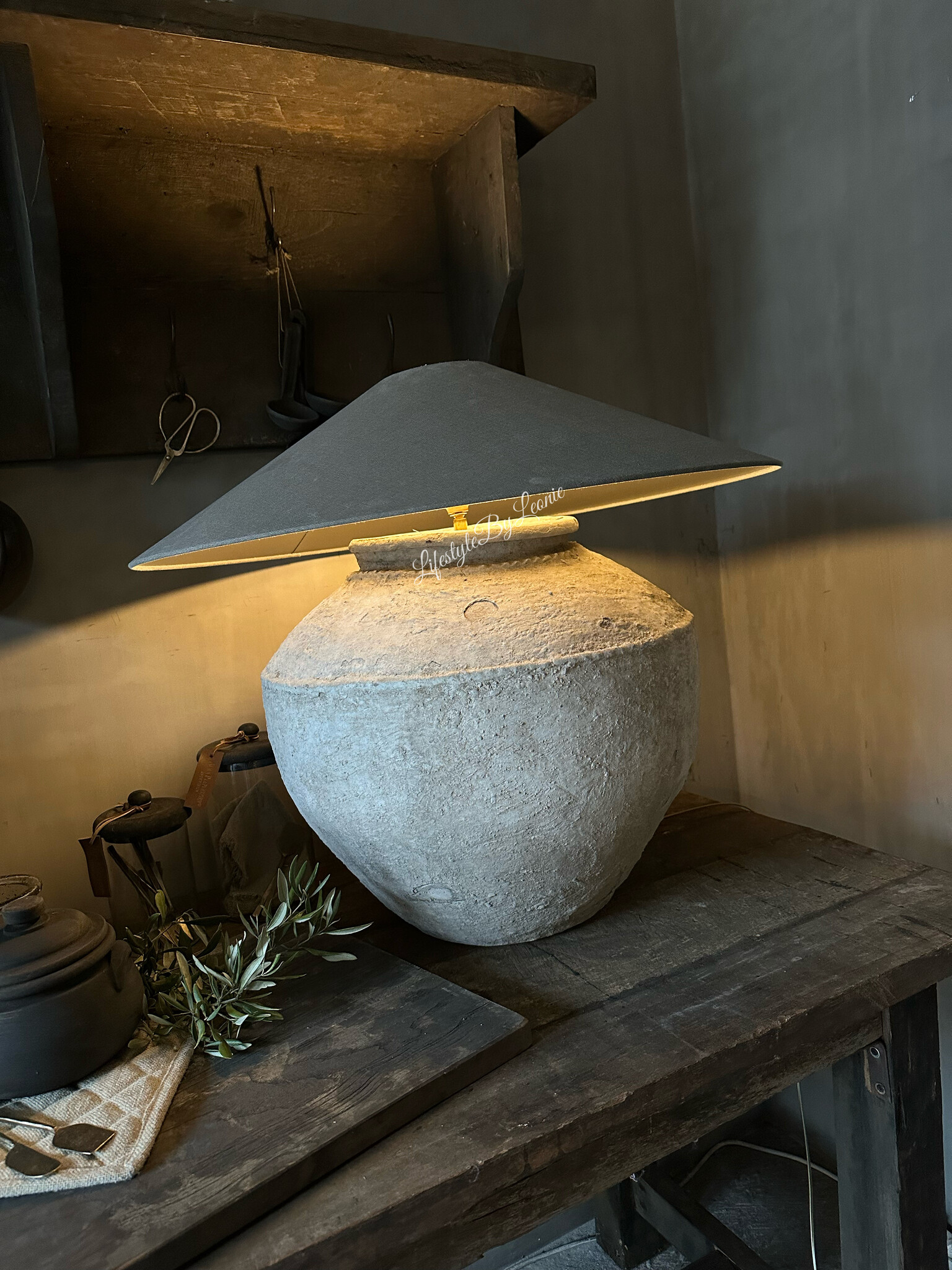 Prachtige grote authentieke stenen waterpot lampvoet van Aura Peeperkorn. Een ware eyecatcher.