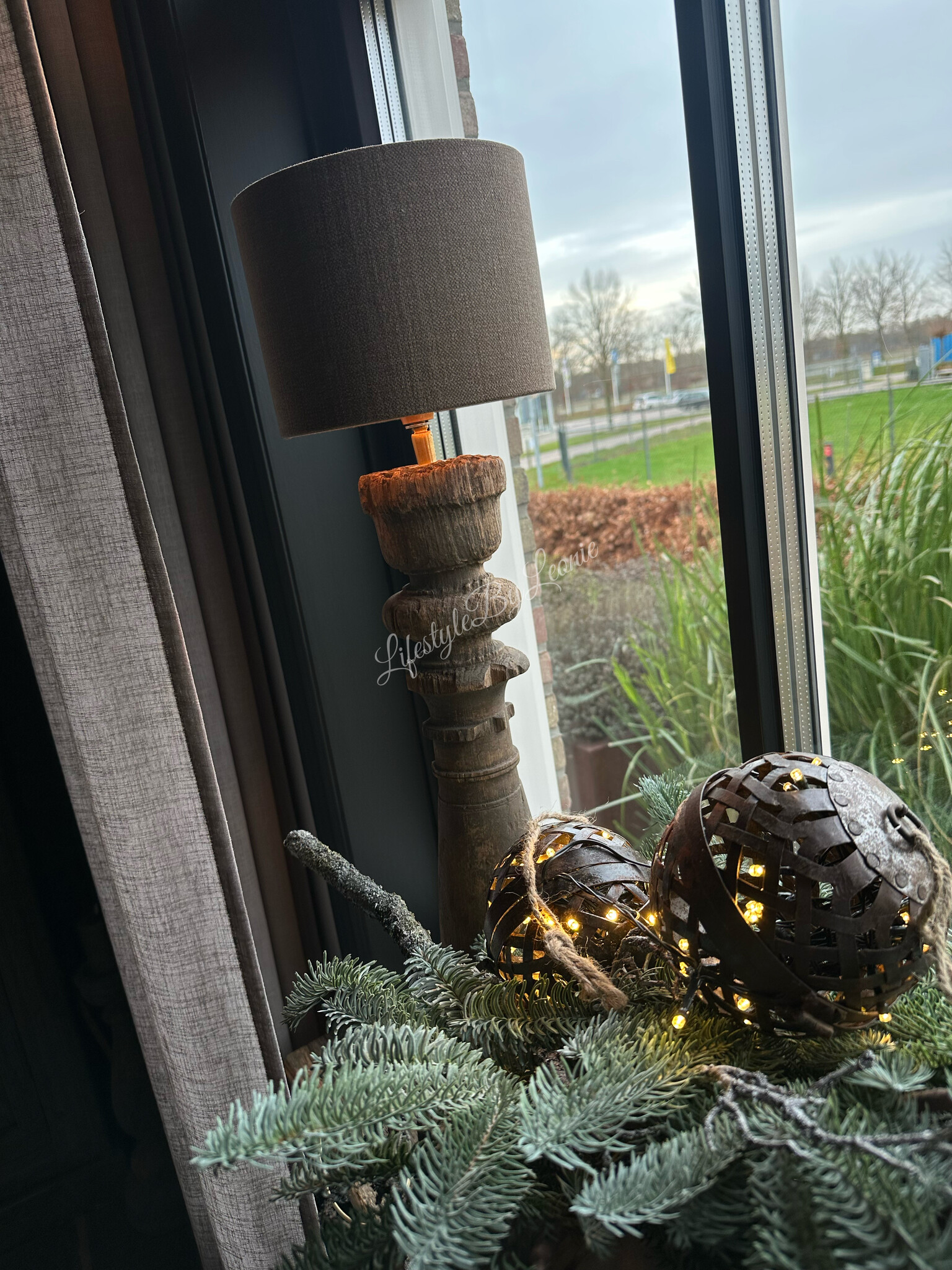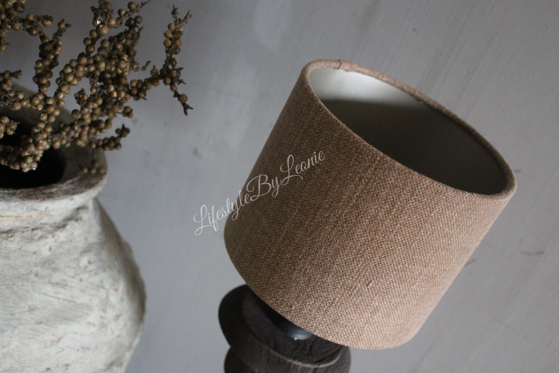 Mooie grote linnen lampenkap in de nieuwste Chestnut kleur van Aura Peeperkorn. De kap is 15 x 12 cm groot.