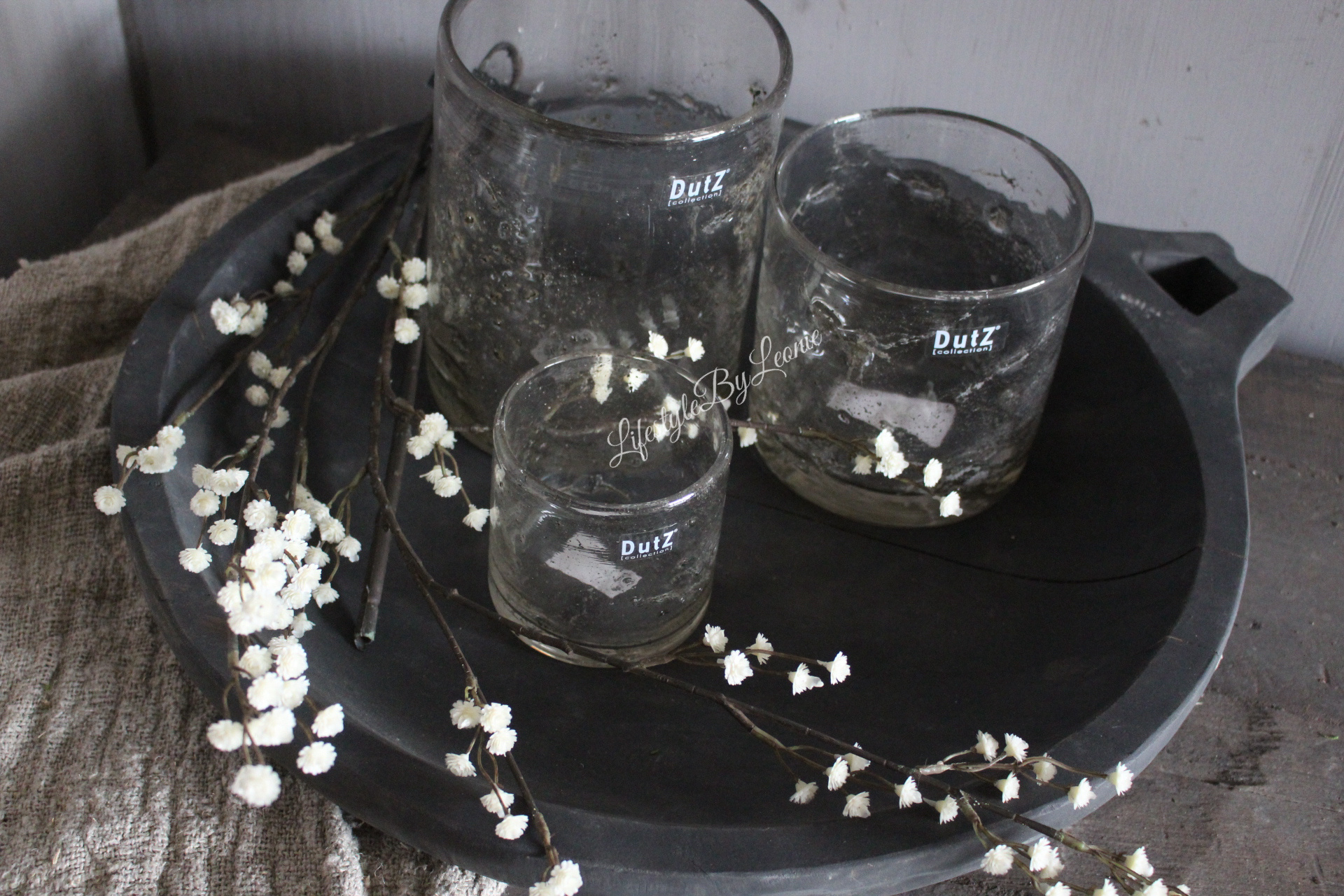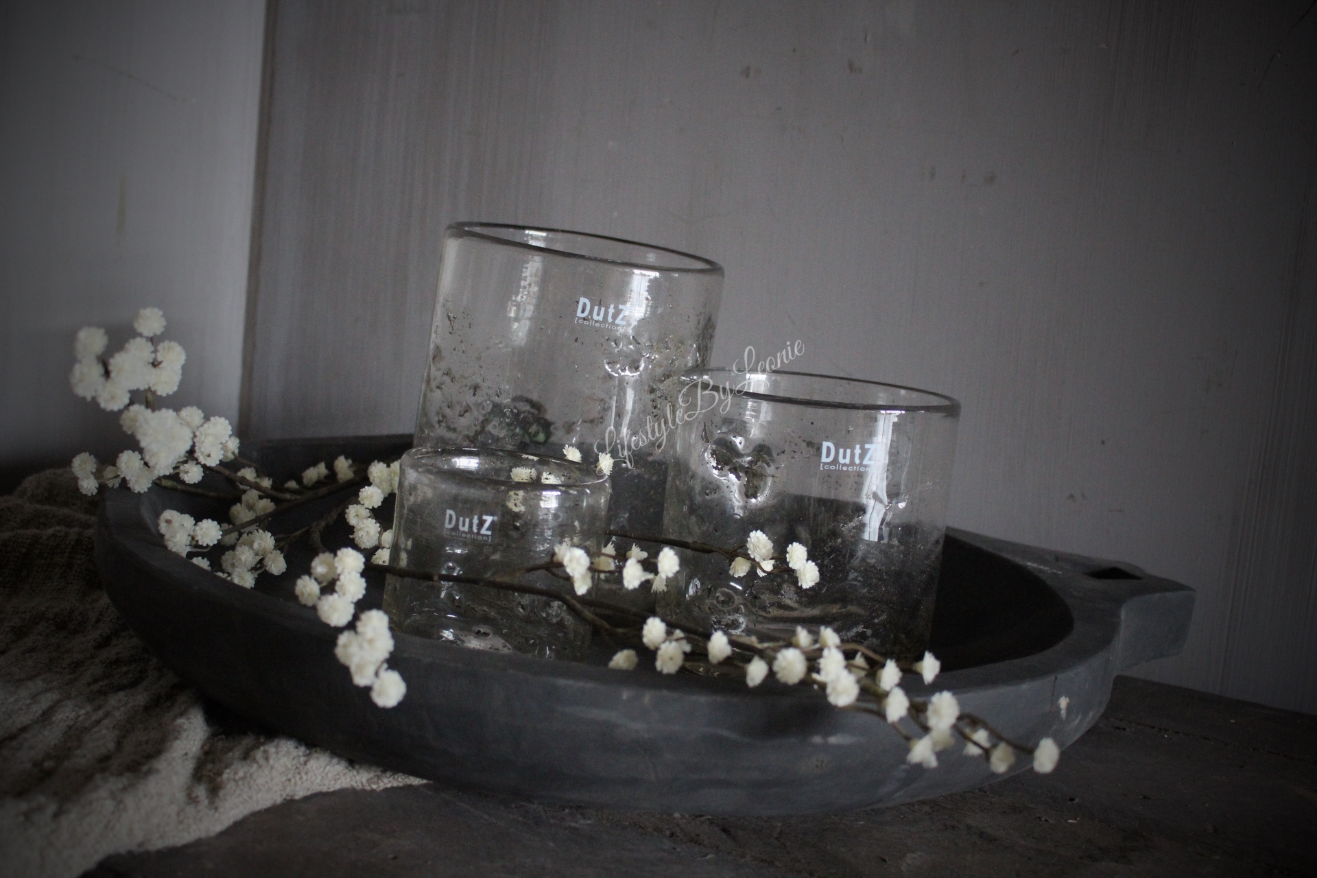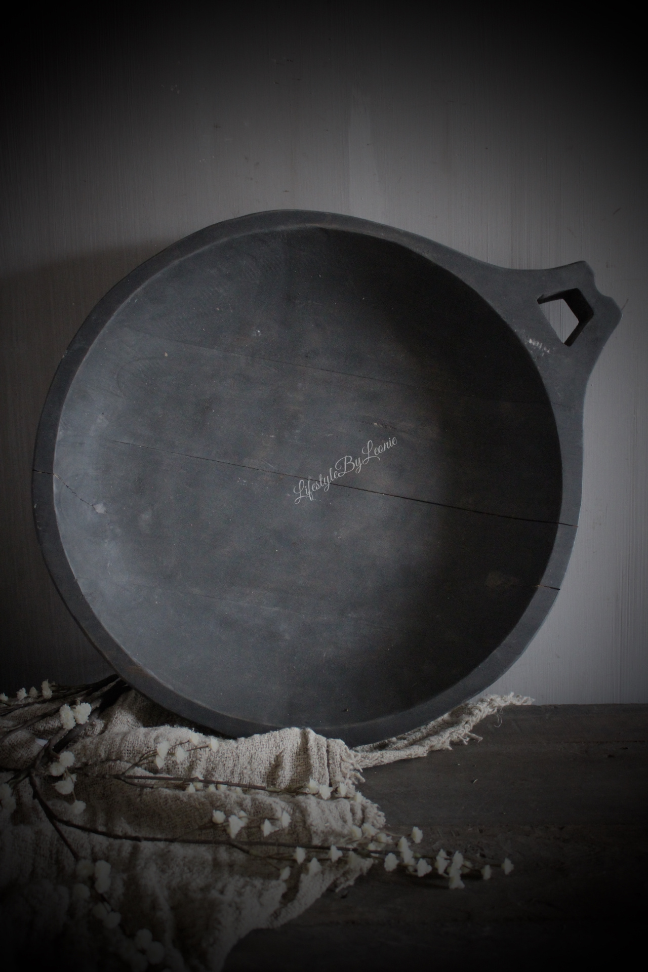 Aura Peeperkorn houten schaal met open handvat Antique grey 60x50 cm