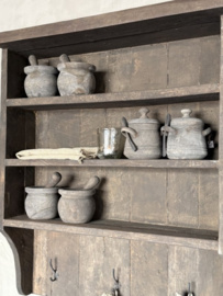 Stoer houten vijzelpotje met een bijpassende houten stamper van Aura Peeperkorn. Een prachtige accessoire in een landelijke keuken.