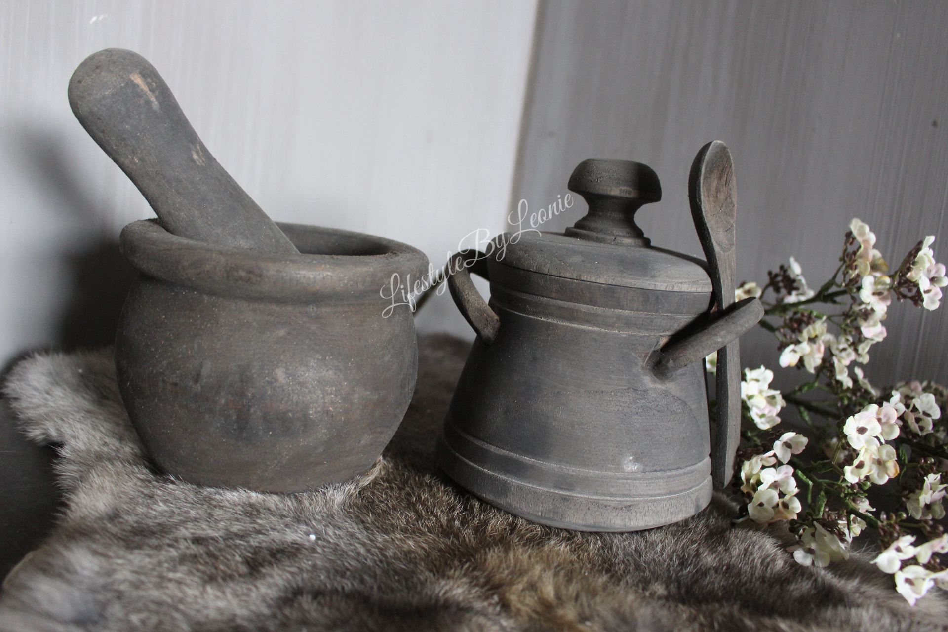 Het compacte formaat en het robuuste hout geven het vijzelpotje een authentieke en sfeervolle uitstraling.