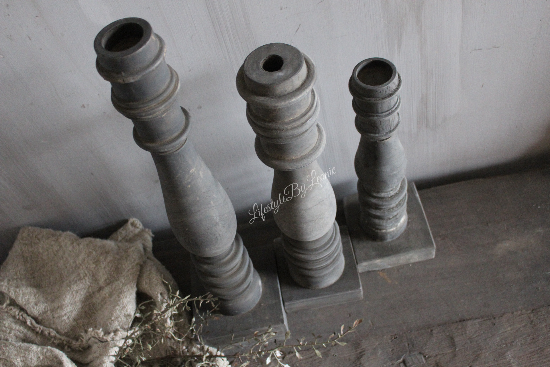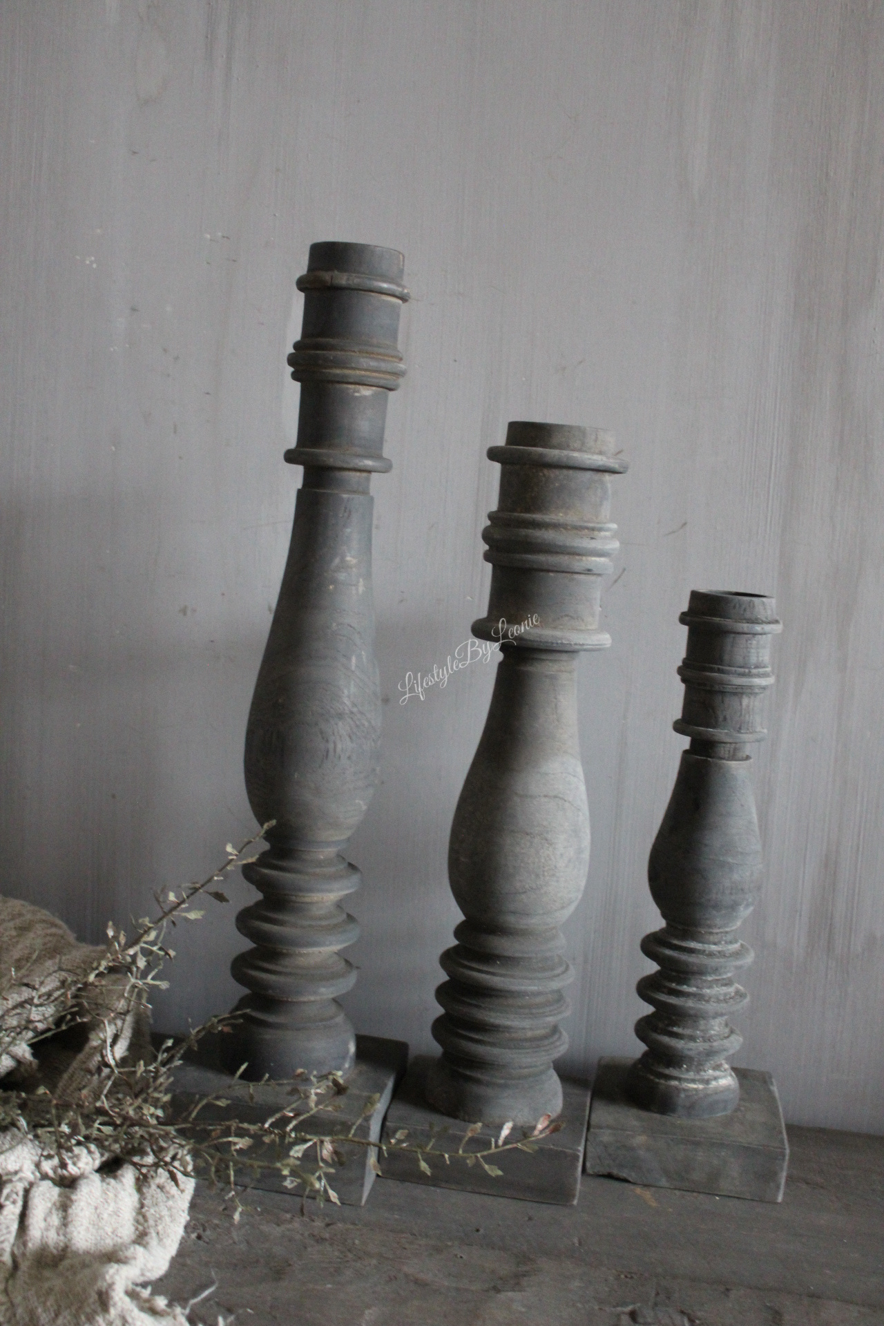 Mooie houten kandelaar Aura Peeperkorn in een zwart-antraciete kleur. De kandelaar is 50 cm hoog. Leuk om meerdere maten bij elkaar te zetten.