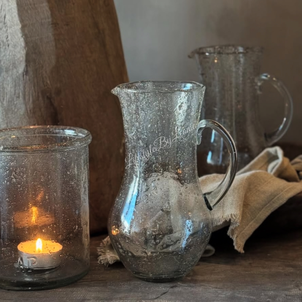 Mooie waterkan met bubbels in het glas. Deze Aura Peeperkorn kan is 24 cm hoog.