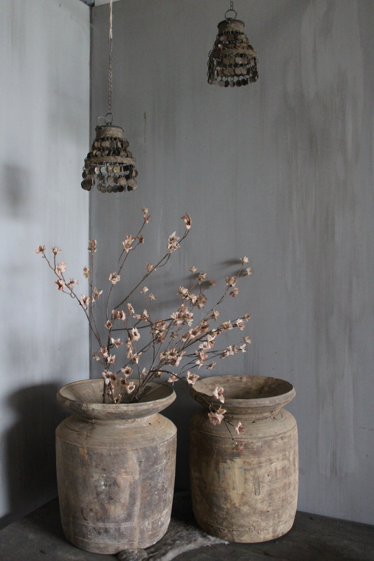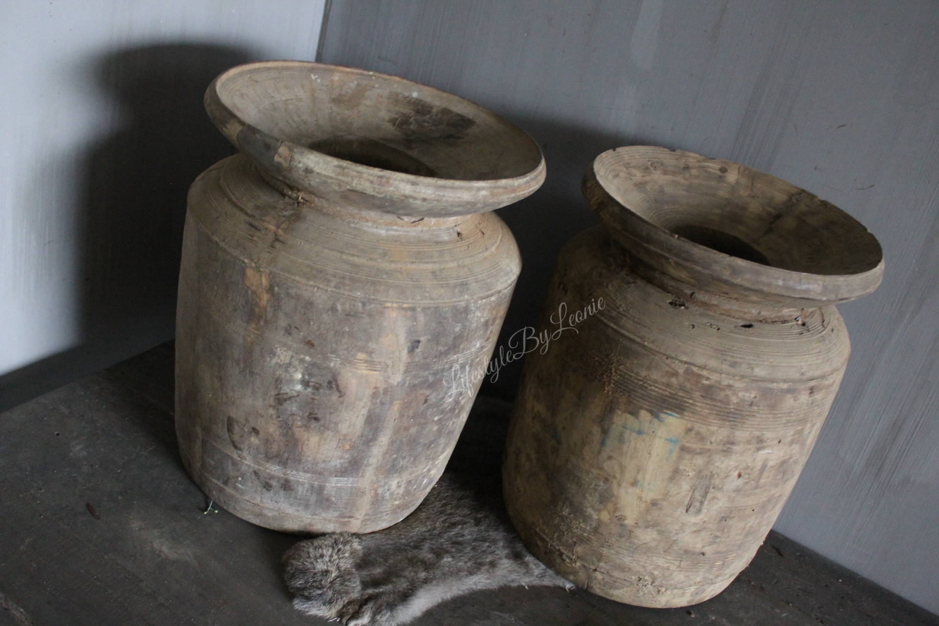 Prachtige authentieke houten Nepalese pot / kruik