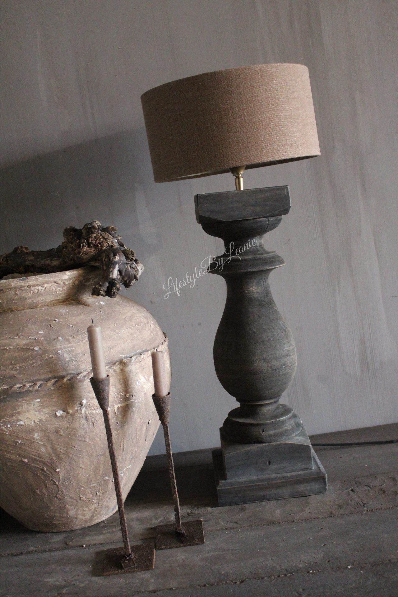 Mooie massief houten baluster lampvoet in een grey washing kleur. Deze lampvoet van LUKSA is 50 cm hoog.