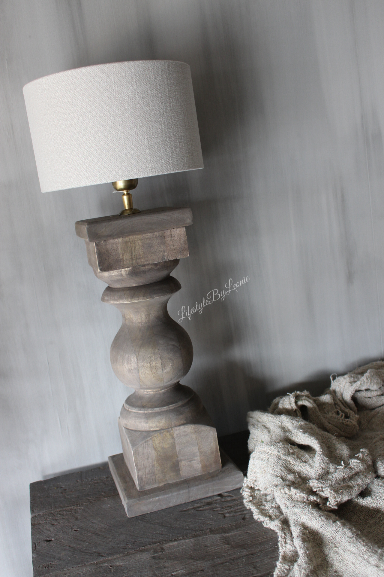 Prachtige massief houten baluster lampvoet in de kleur Old brown. De lampvoet is 56 cm hoog.