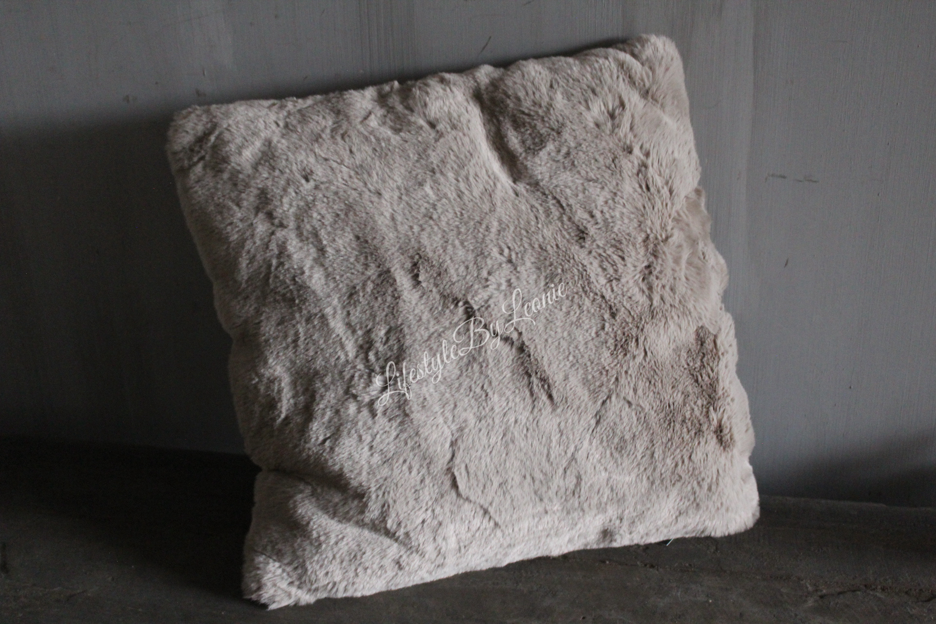 Heerlijk zacht bontkussen in een grijze kleur. Erg leuk op de bank of op een stoel. Het kussen is De plaid is 45 x 45 cm groot.