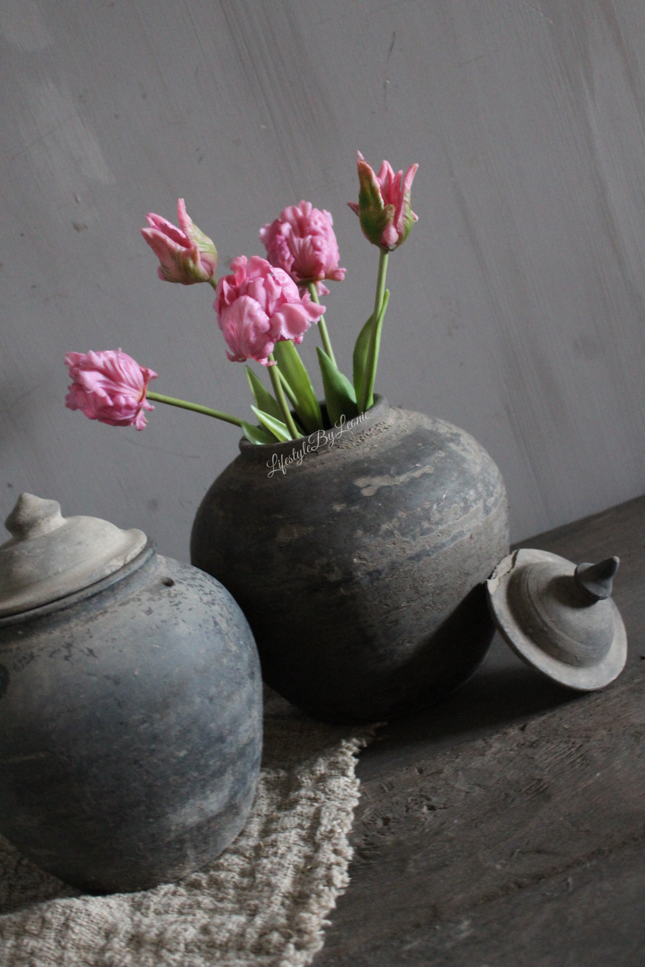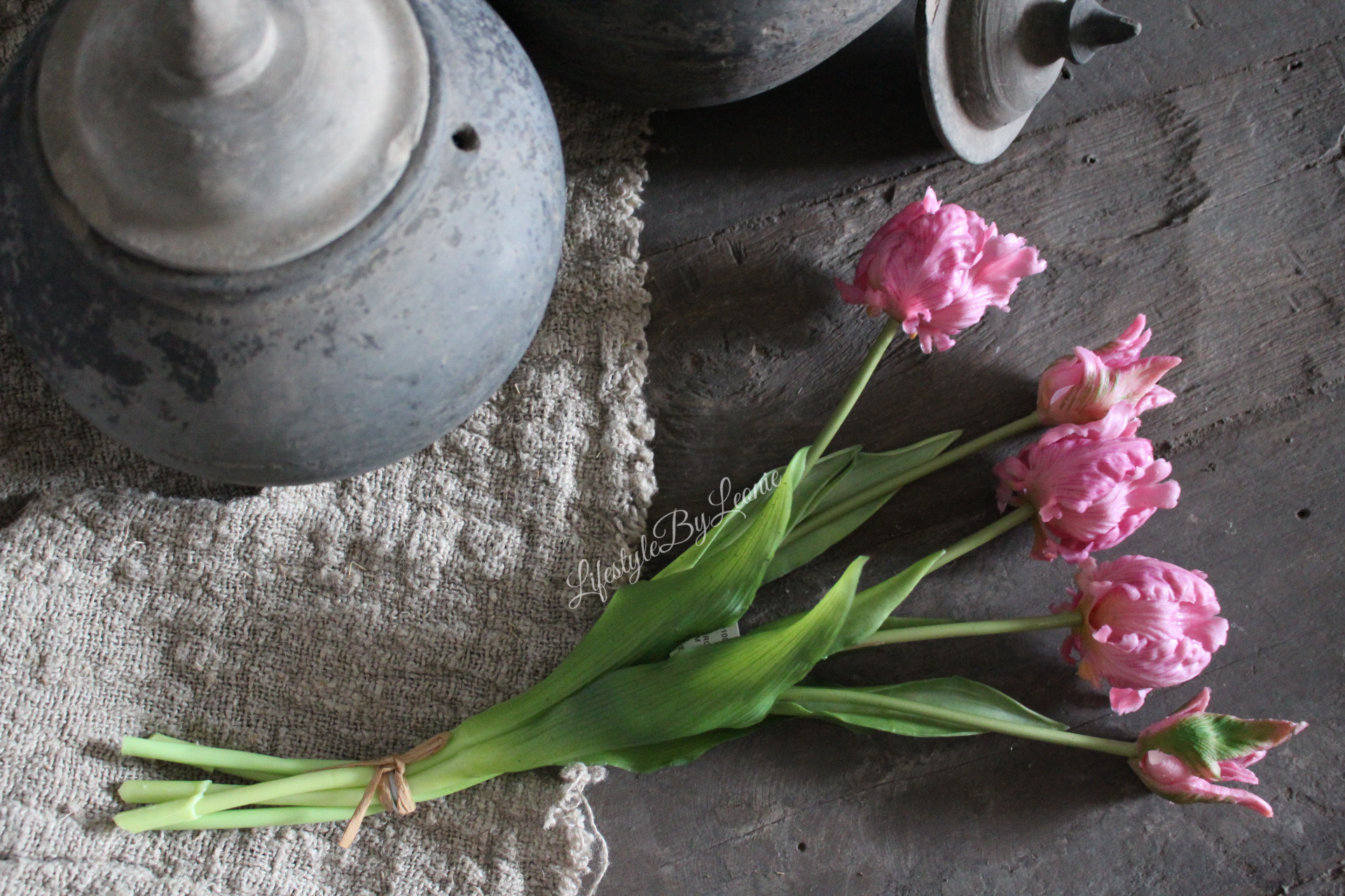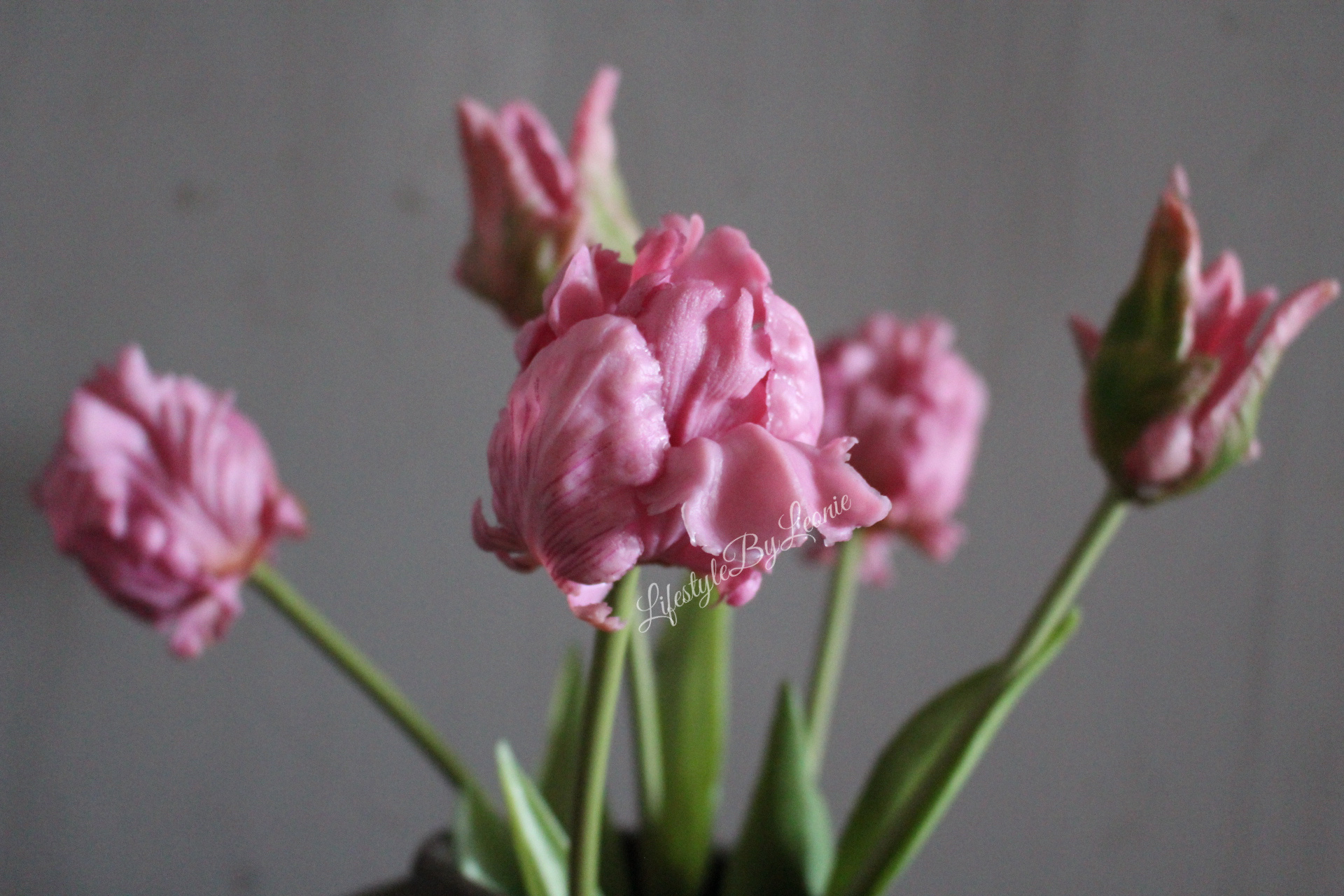 Bos met prachtige stoere parrot kunst Tulpen van real touch kwaliteit. De tulpen hebben mooie roze bloemen en zijn 41 cm hoog.