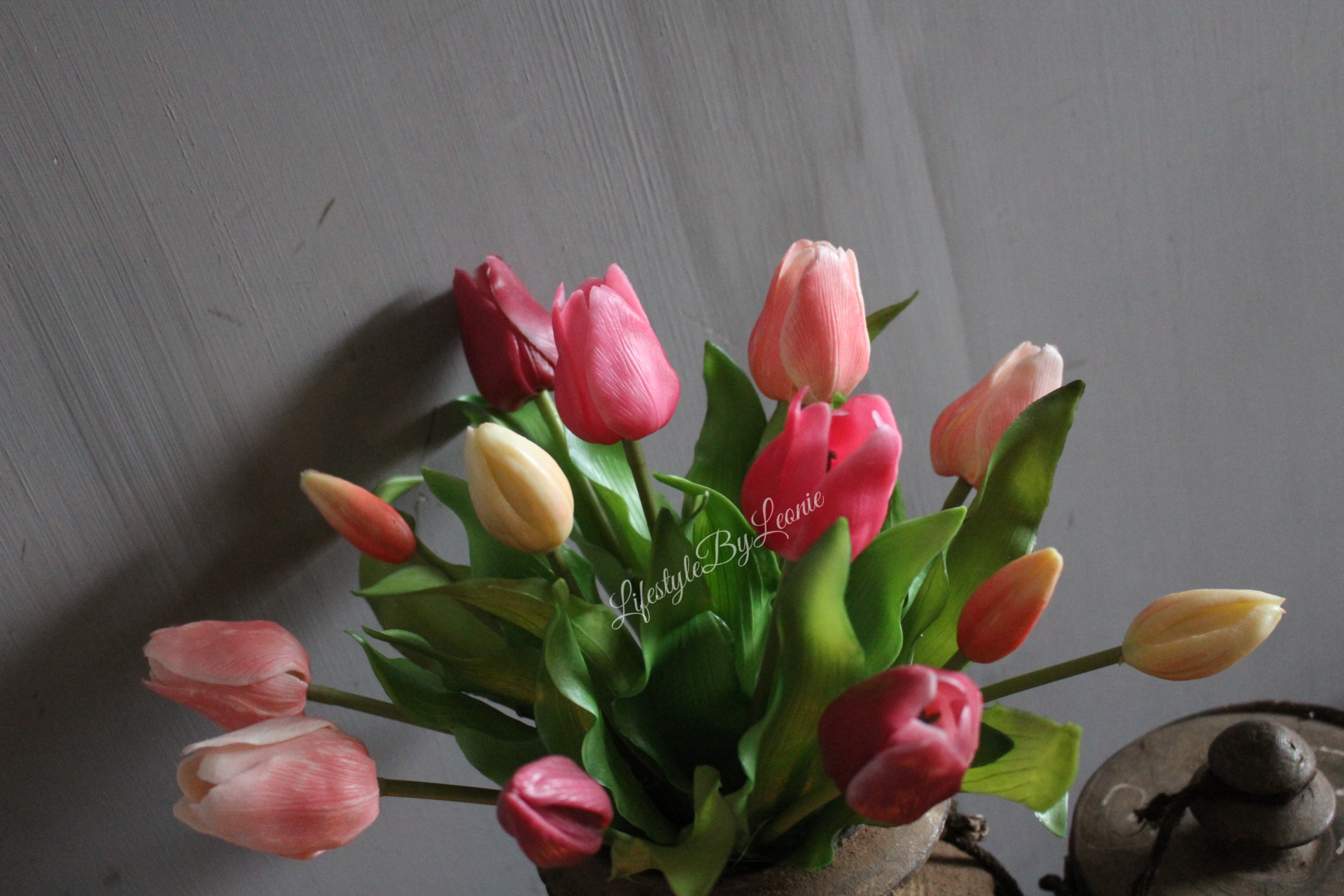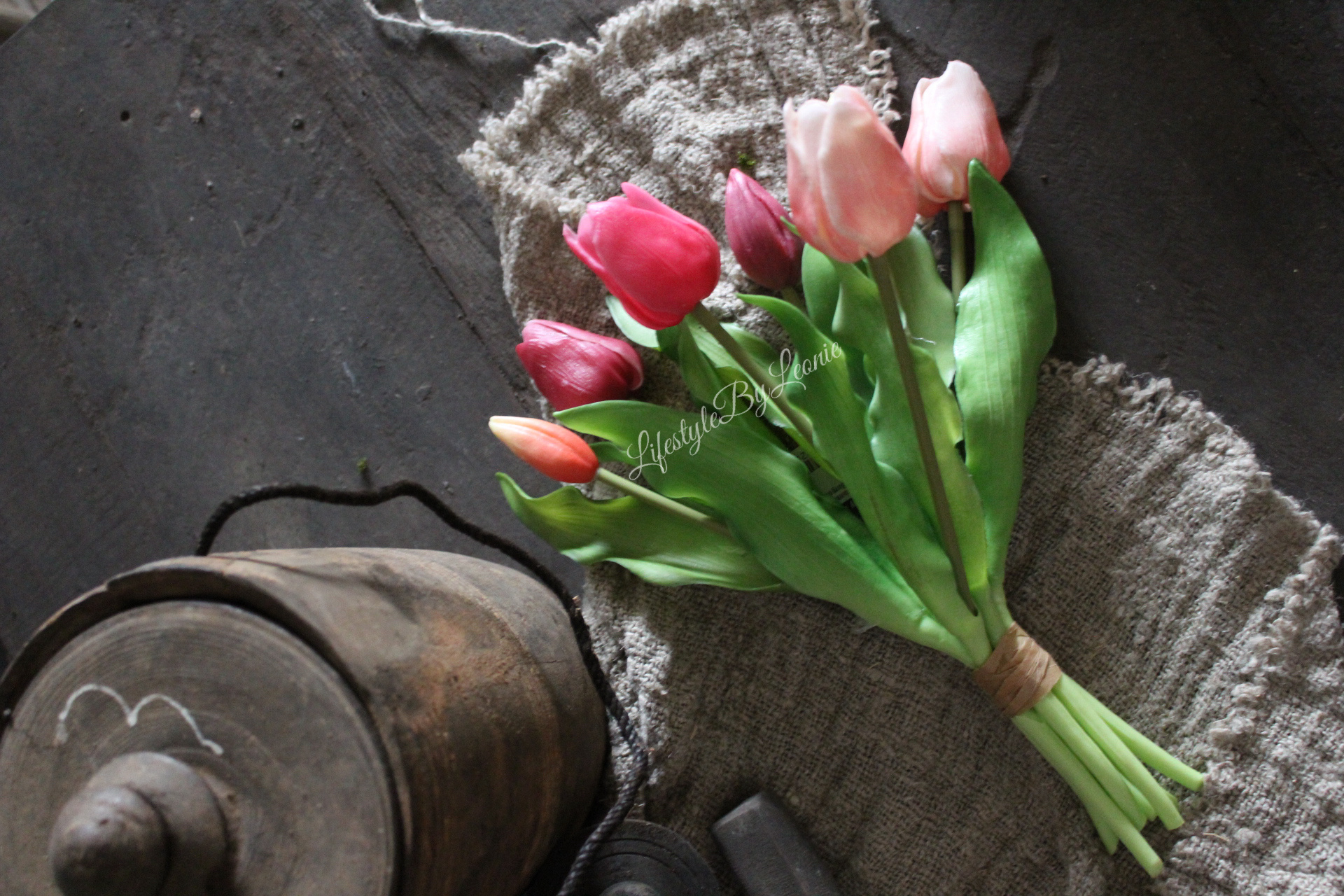 Bosje kunst tulpen real touch Burgundy / Pink 31cm