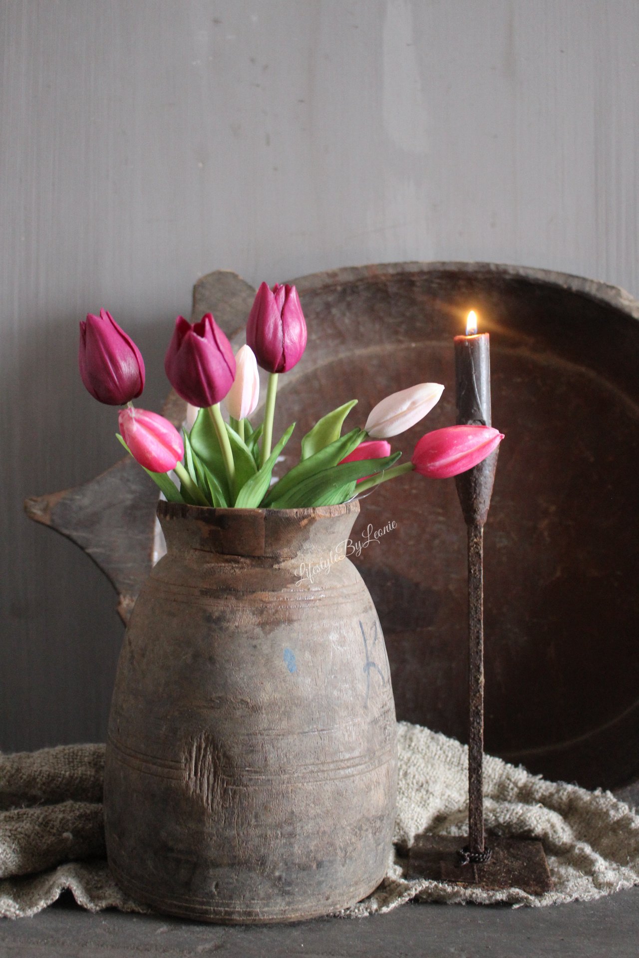 Mooie real touch tulpen in roze/burgundy/zachtroze
