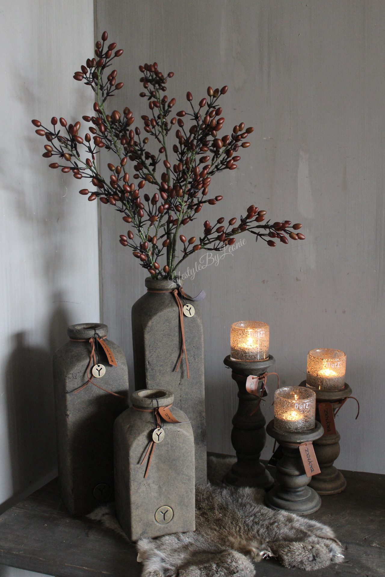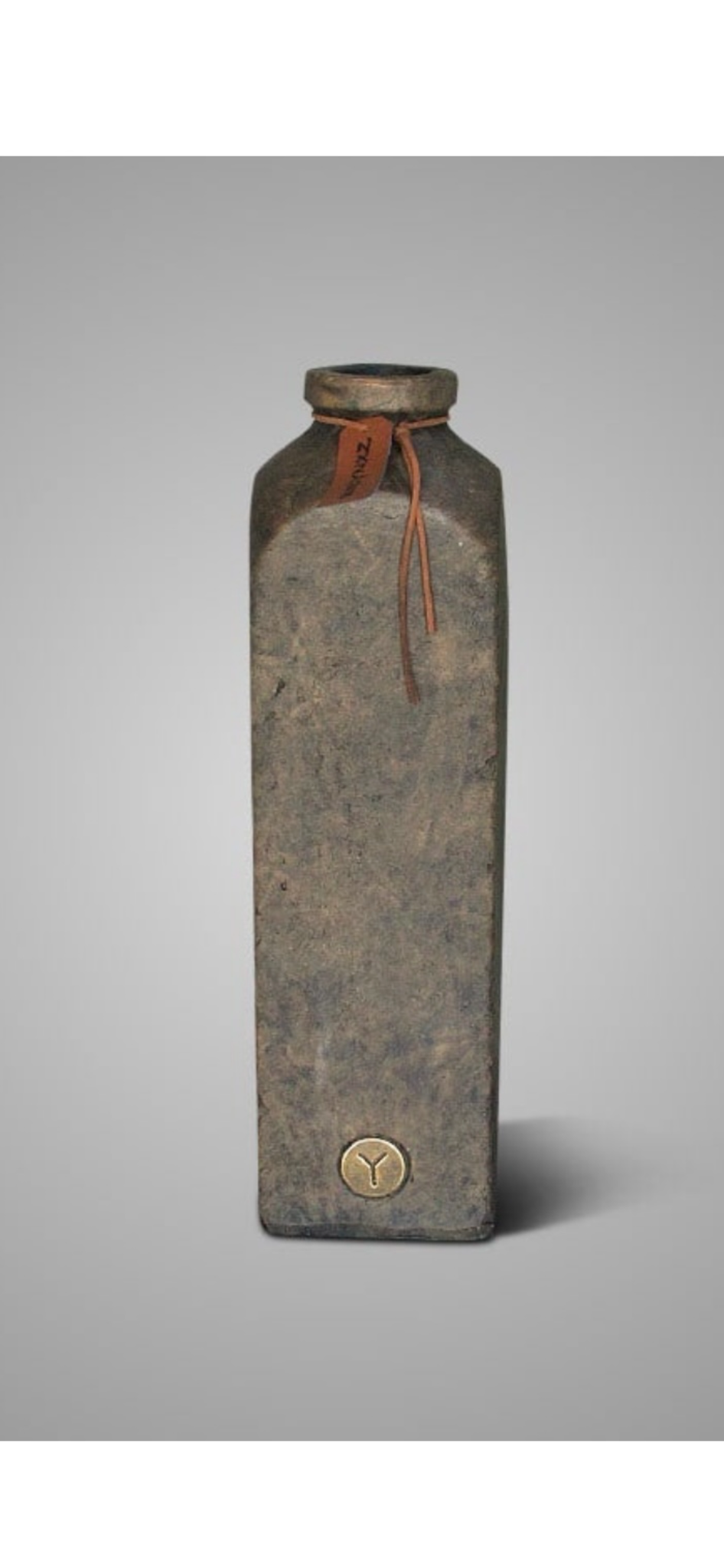 Hoge smalle vierkante fles van Brynxz. Ideaal als decoratie voor een smalle vensterbank. De fles is 40 cm hoog.
