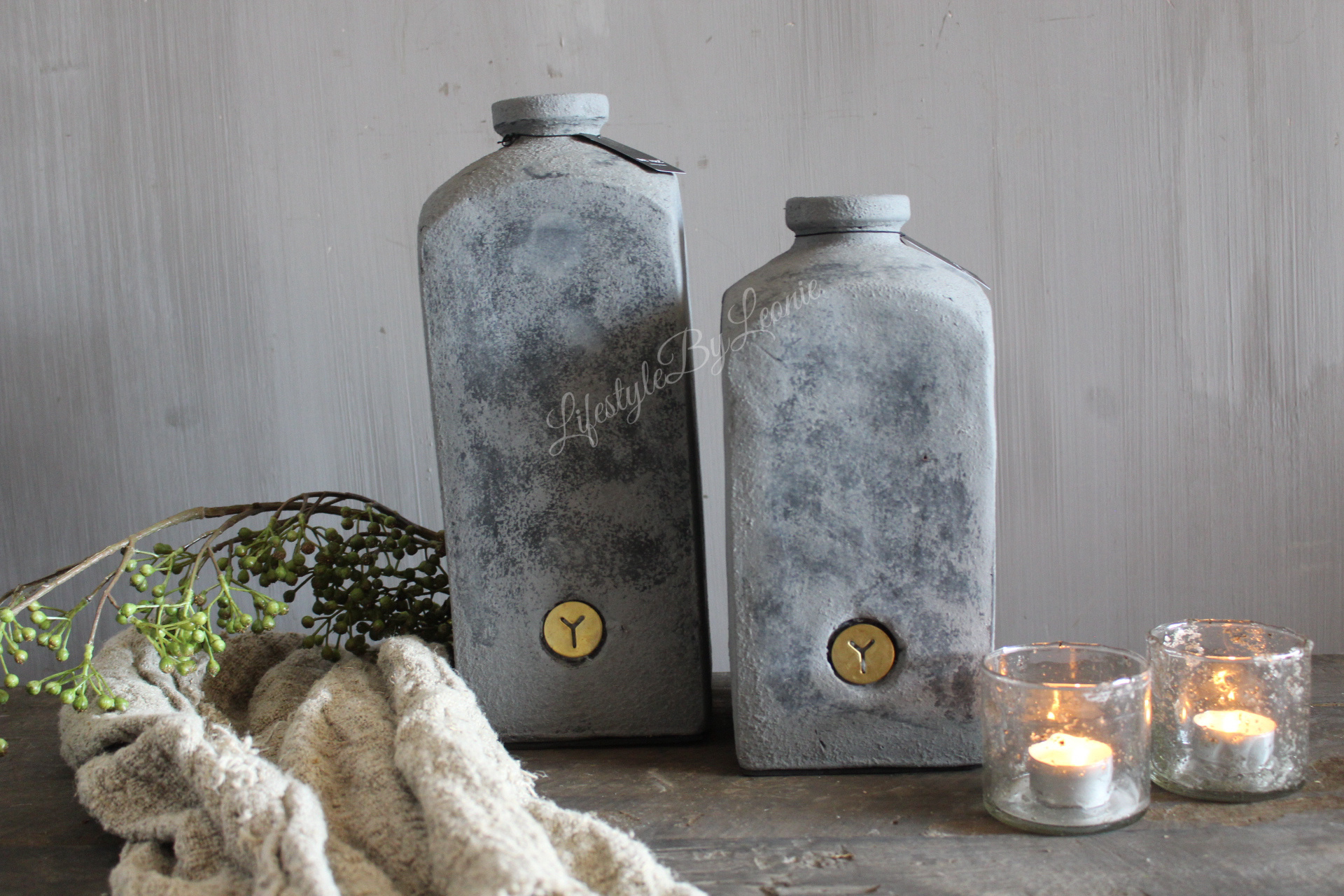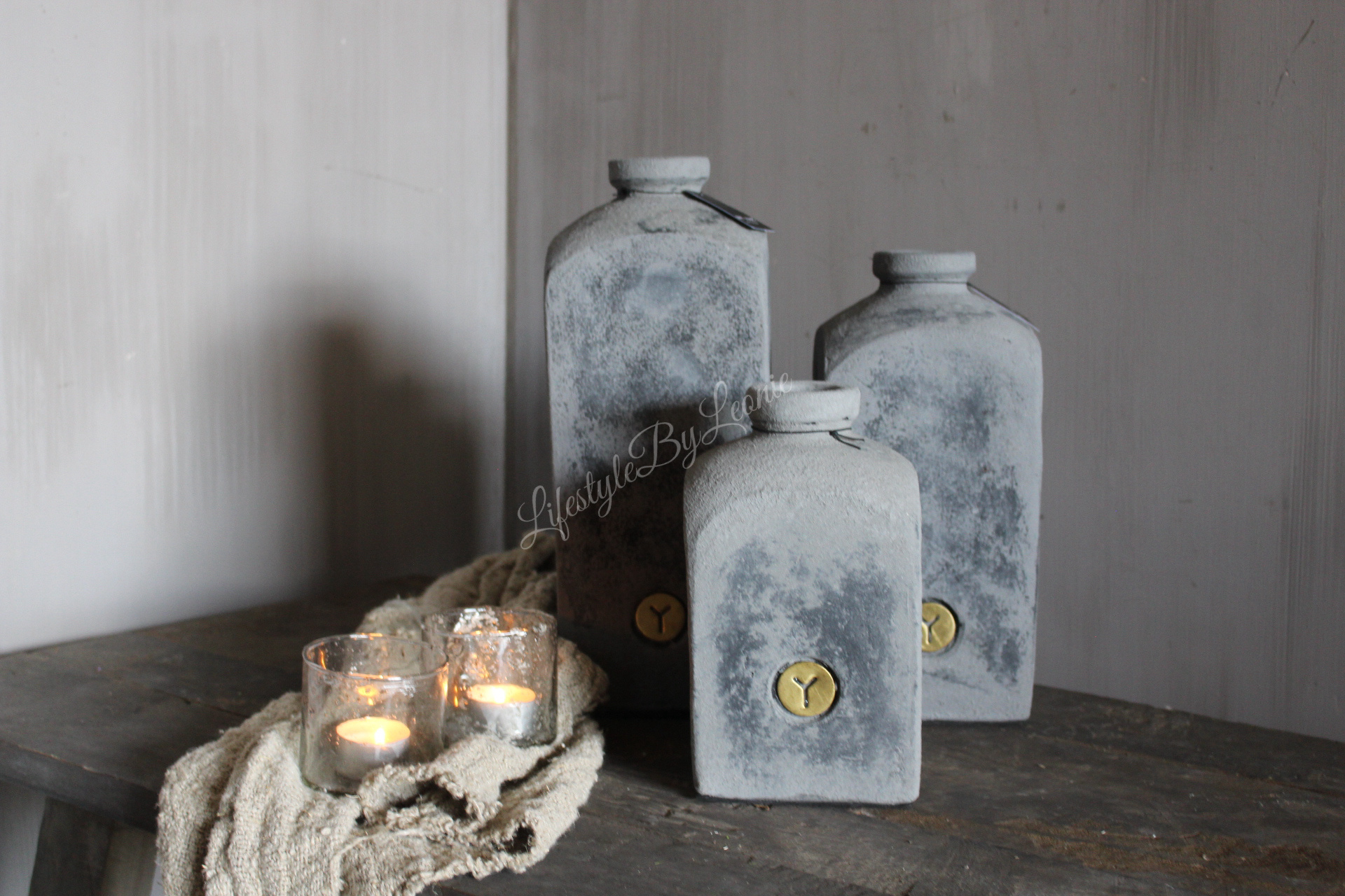 Mooie vierkante fles van Brynxz in de kleur Stone black. De fles is 34 cm hoog.