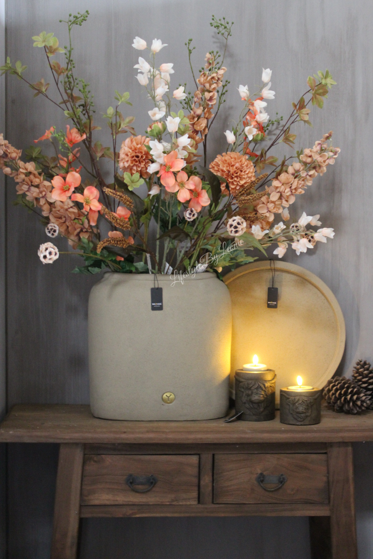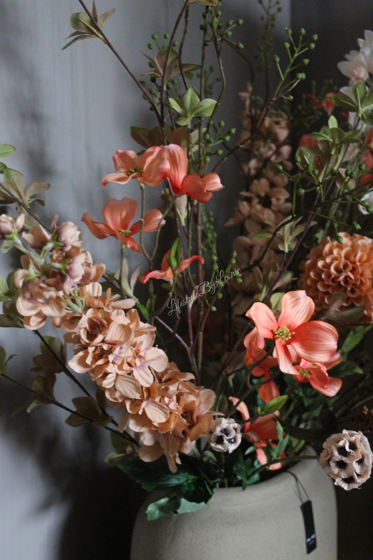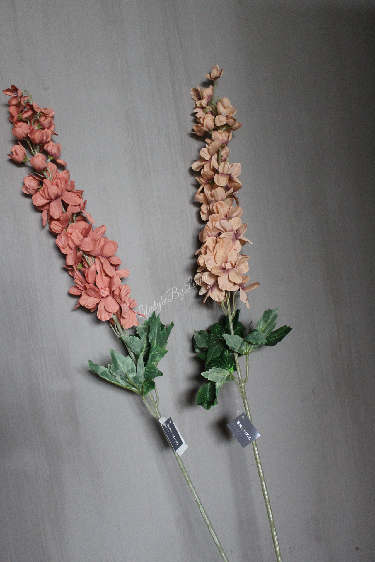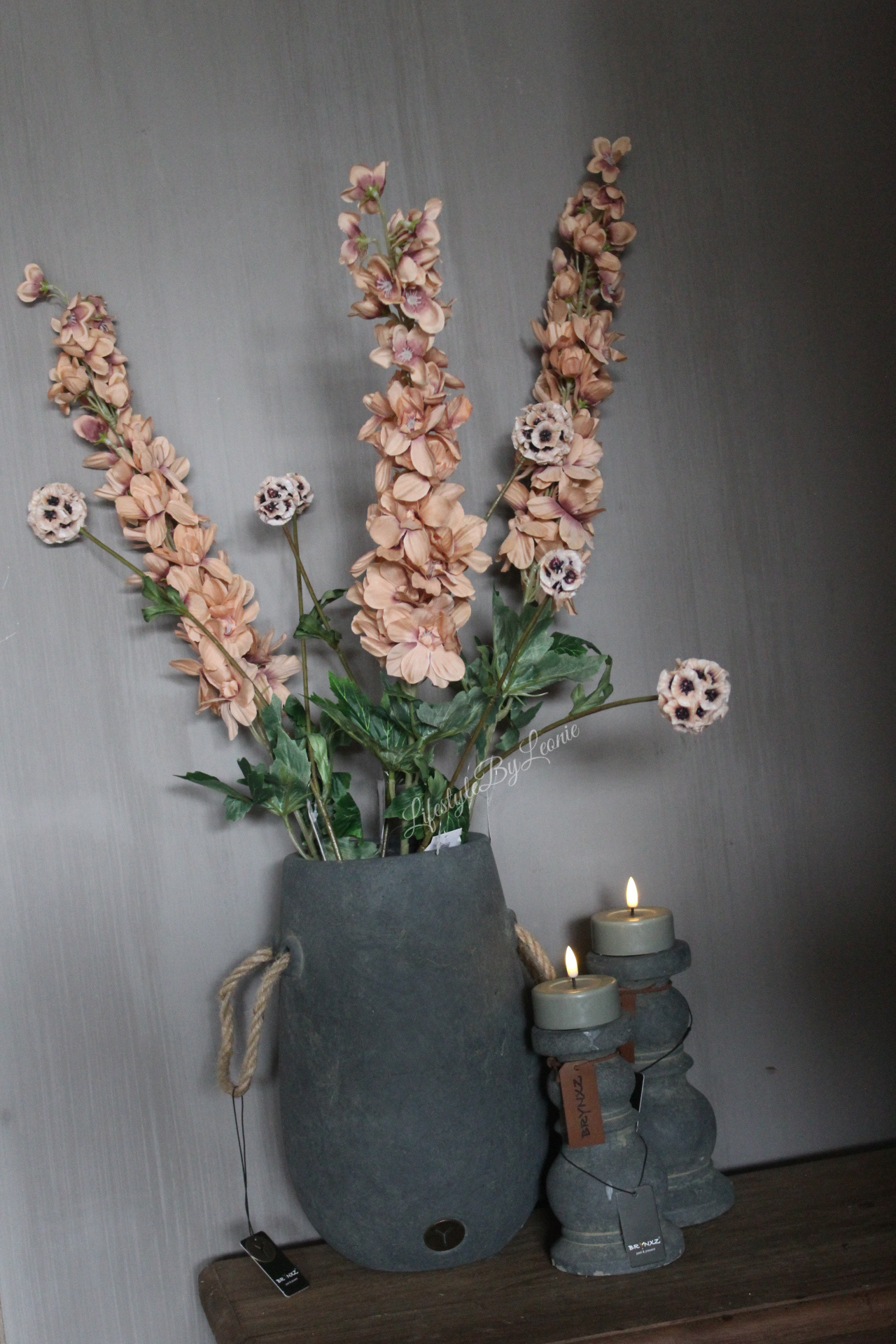 Mooie zijden lange Delphinium kunsttak met bloemetjes in een zachte nude kleur. De tak is 90 cm lang. Ook leuk in combinatie met de andere Brynxz takken.