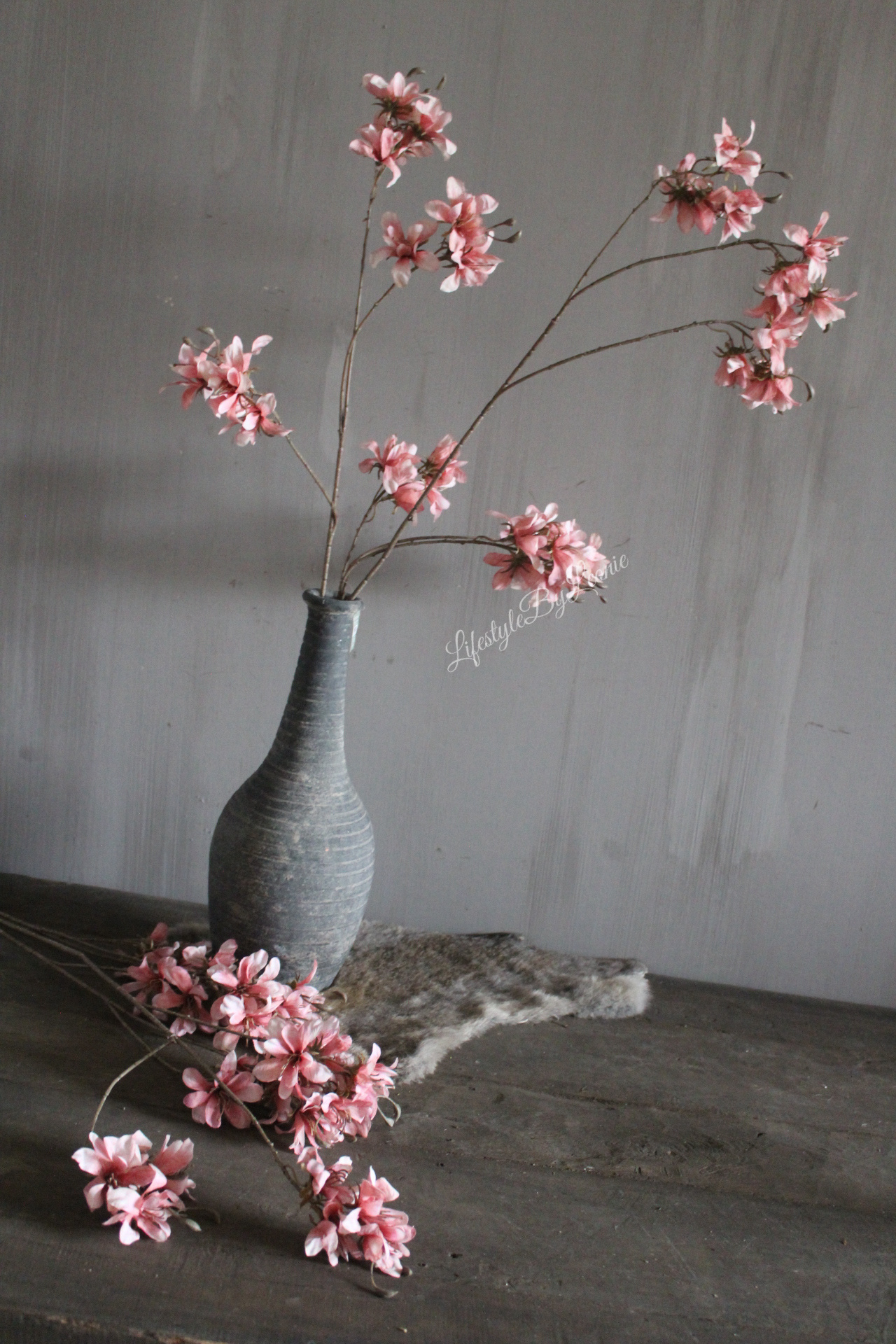 Grote Prunus kunsttak van Brynxz met bloemetjes in de kleur aubergine. Deze kunsttak is 120 cm lang.