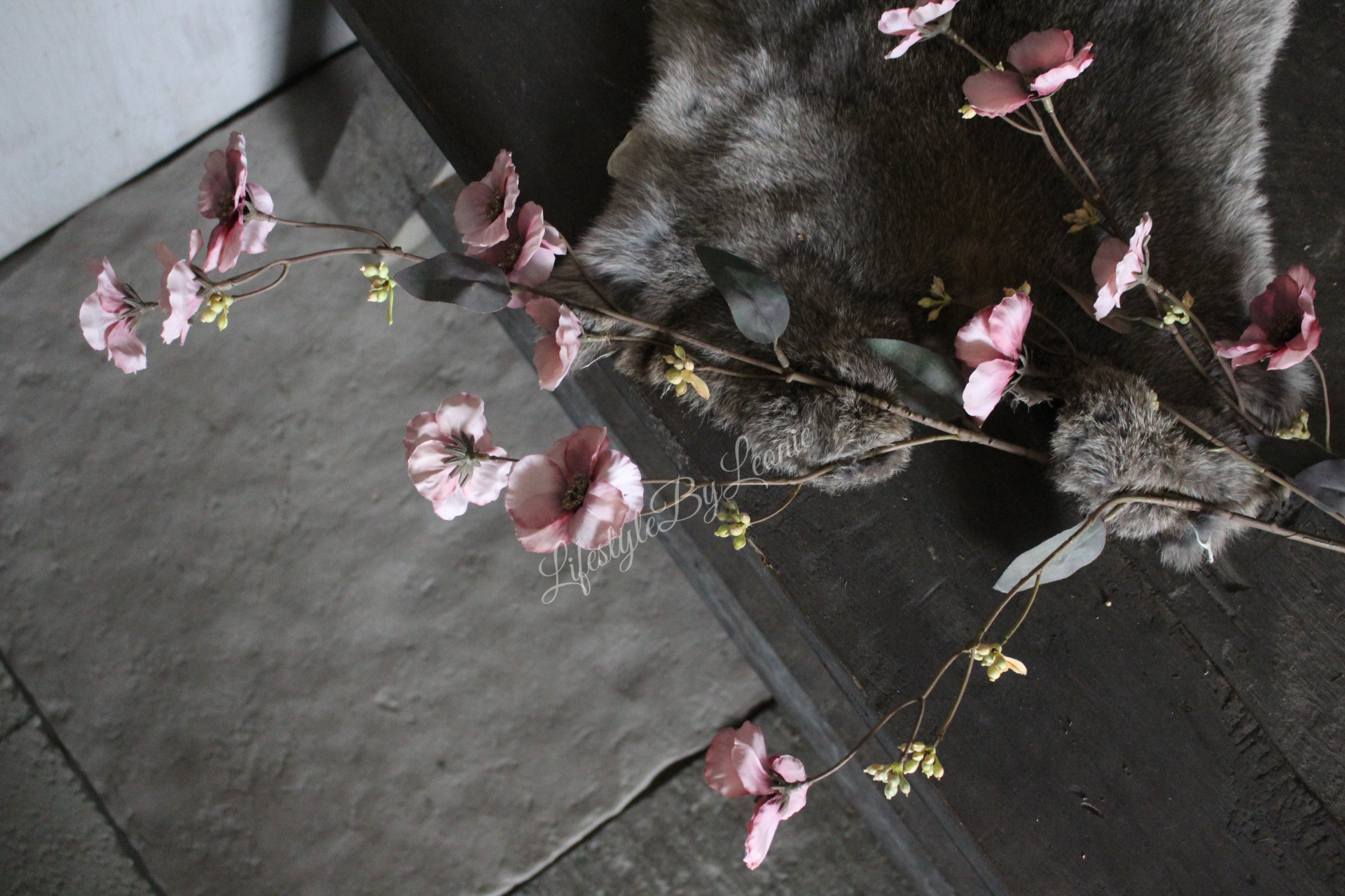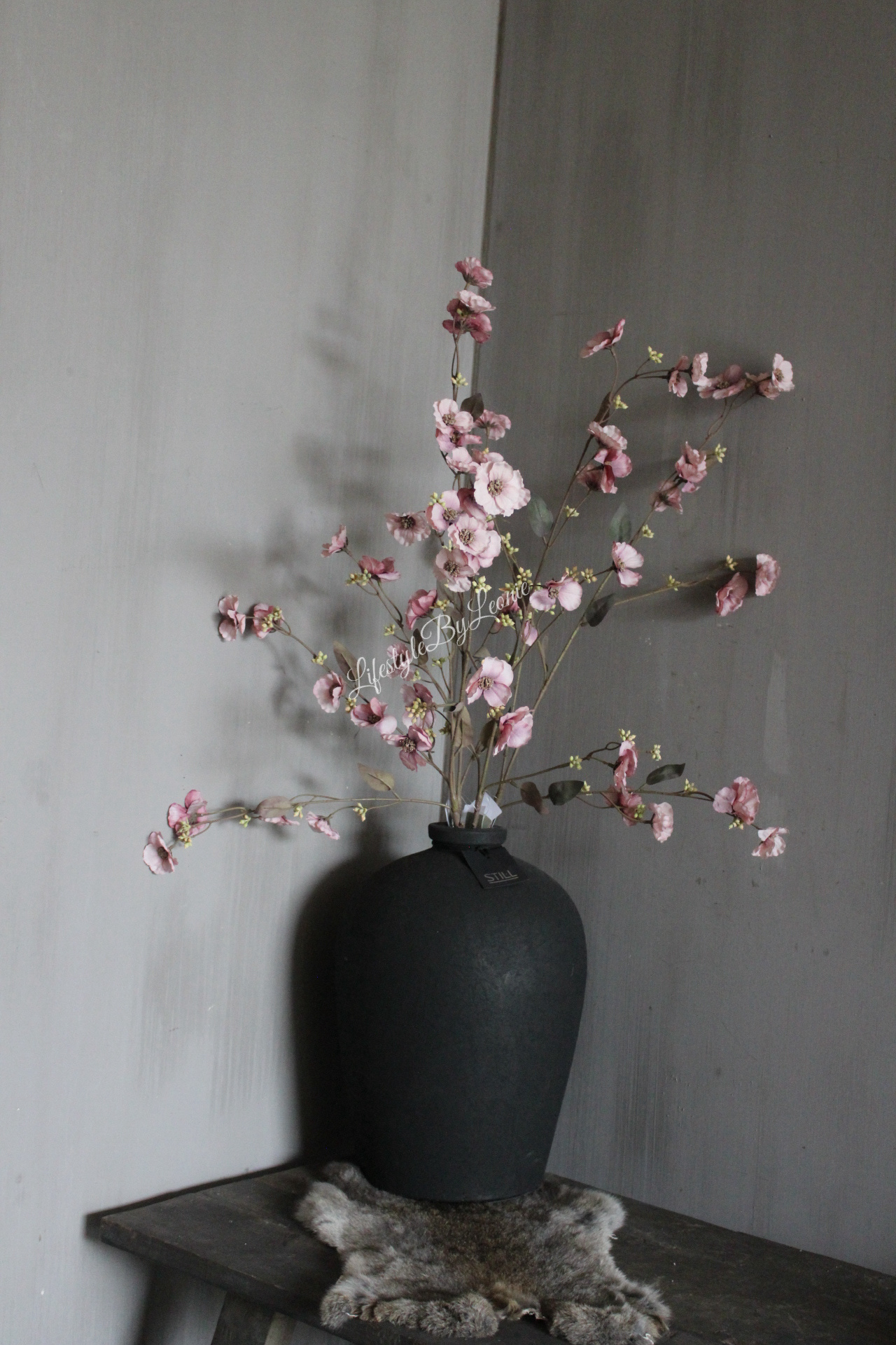 Een hele mooie lange zijden Hibiscus kunsttak met bloemen in een lichtroze kleur. De tak is 100 cm lang.