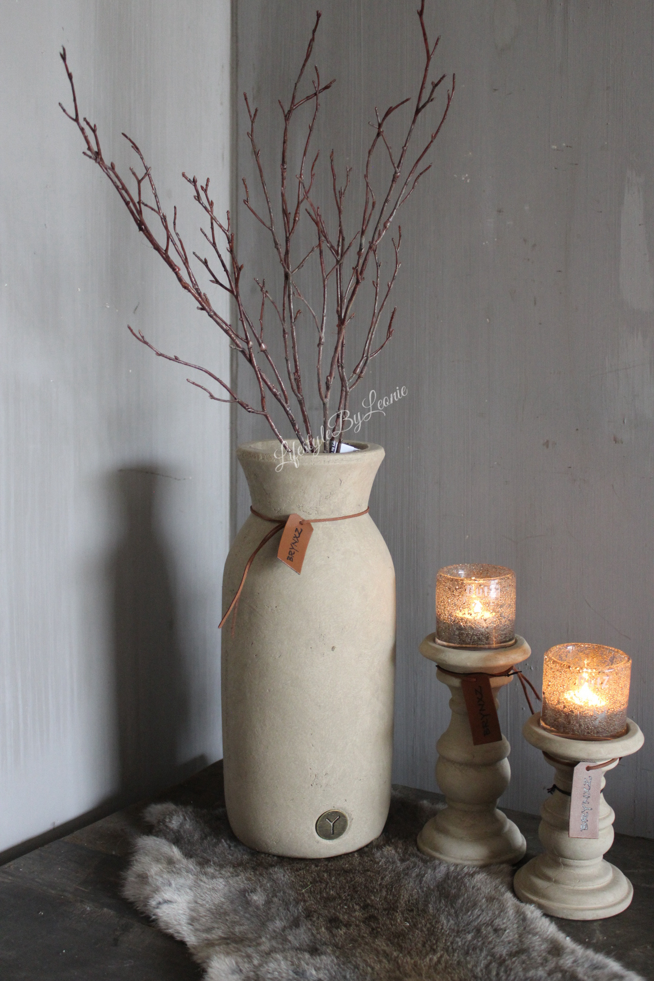 Brynxz hoge fles met touw Taupe 37 cm