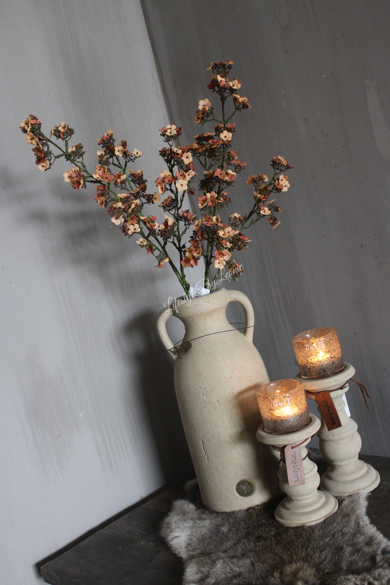 Brynxz hoge stenen kruik met oren Taupe 35 cm