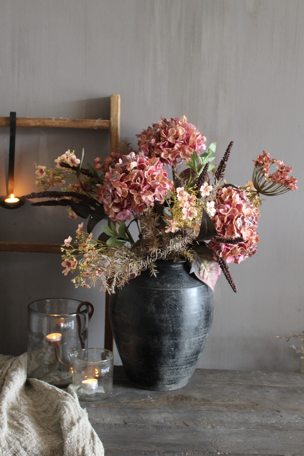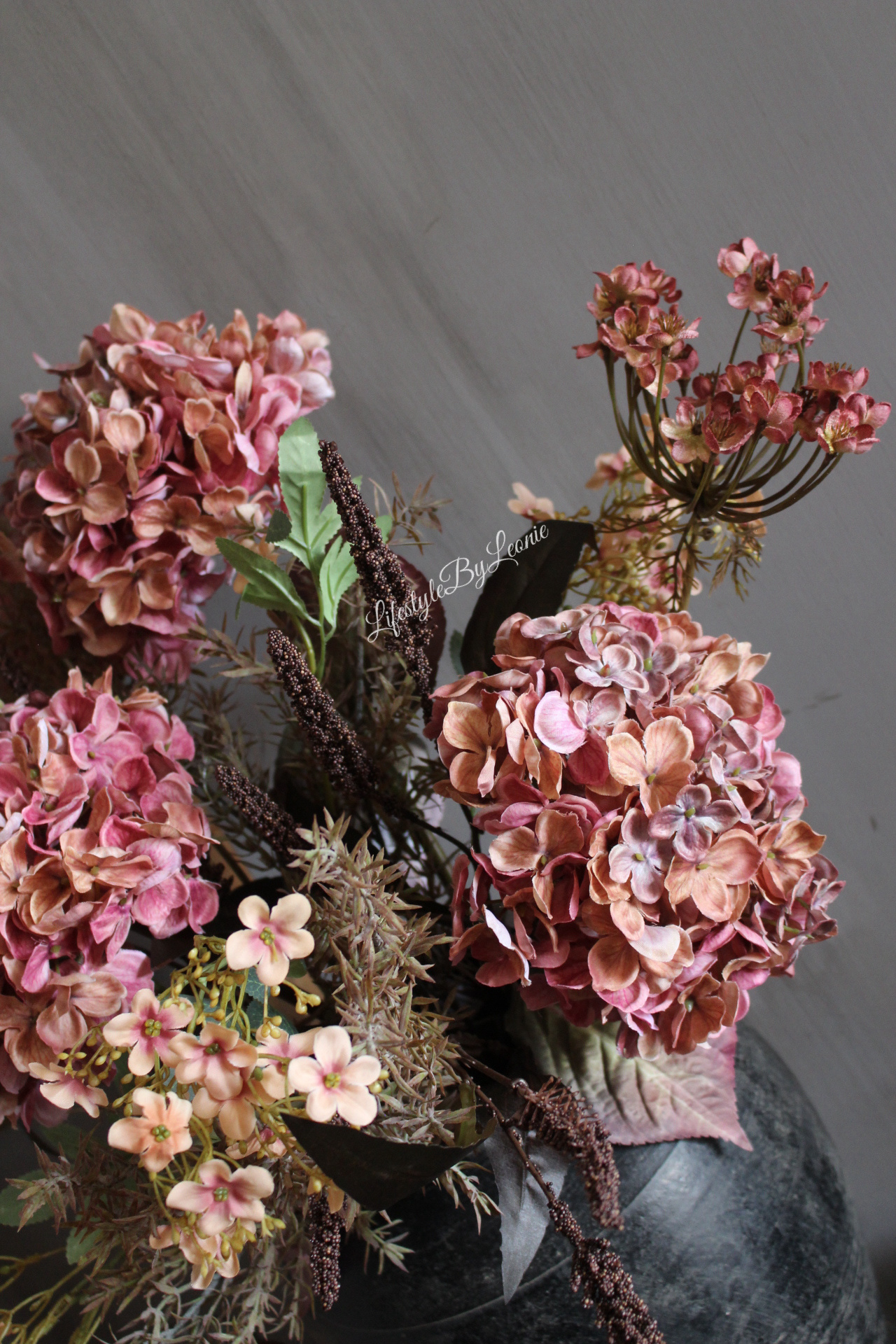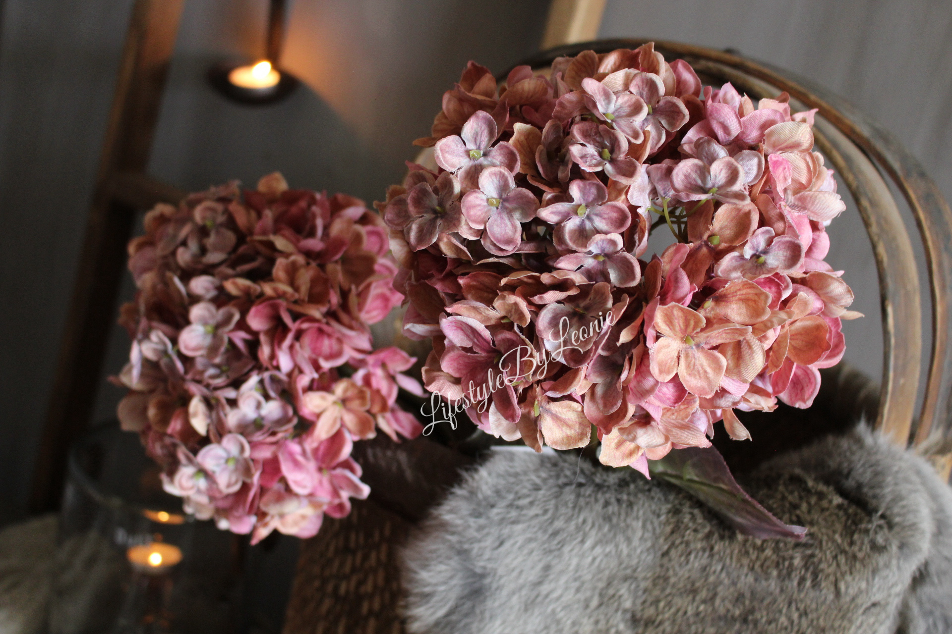 Kunst Hortensia met een mooie herfsttint. Prachtig in een boeket of alleen in een kruik.