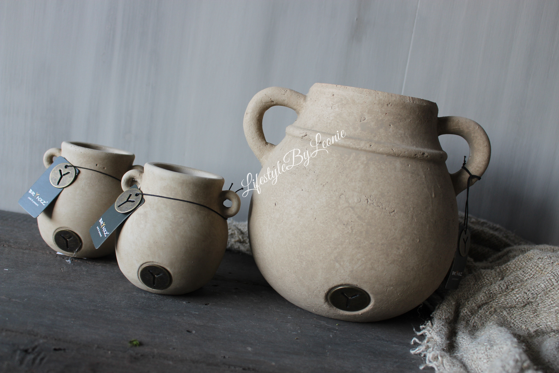 Brynxz jug pot met 2 oren Taupe 21x18cm