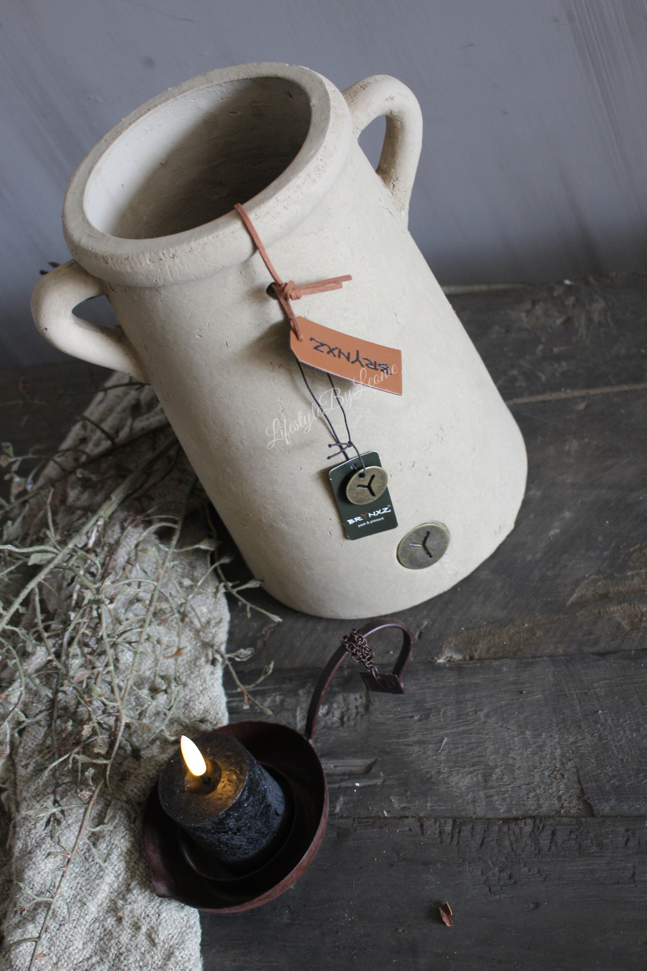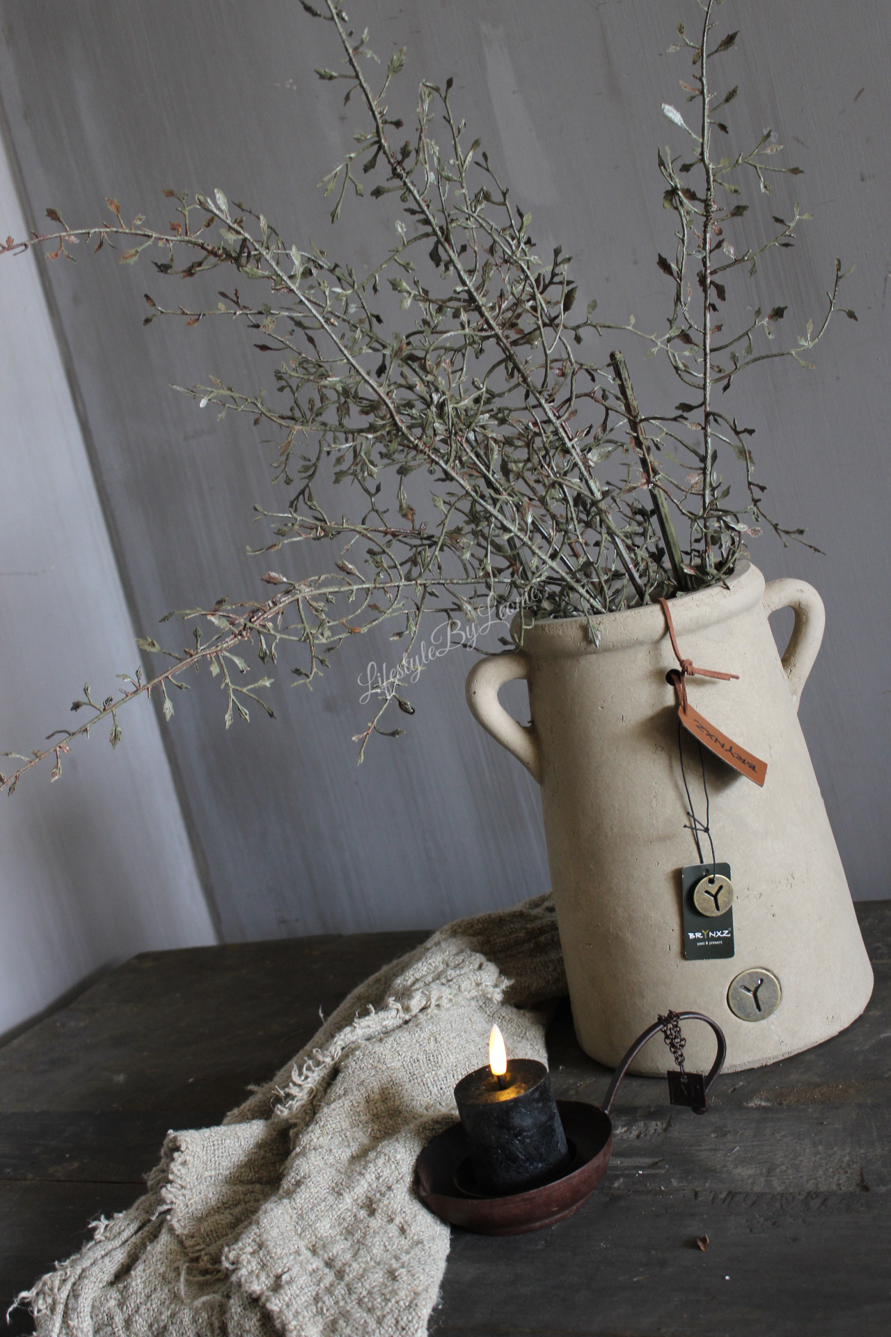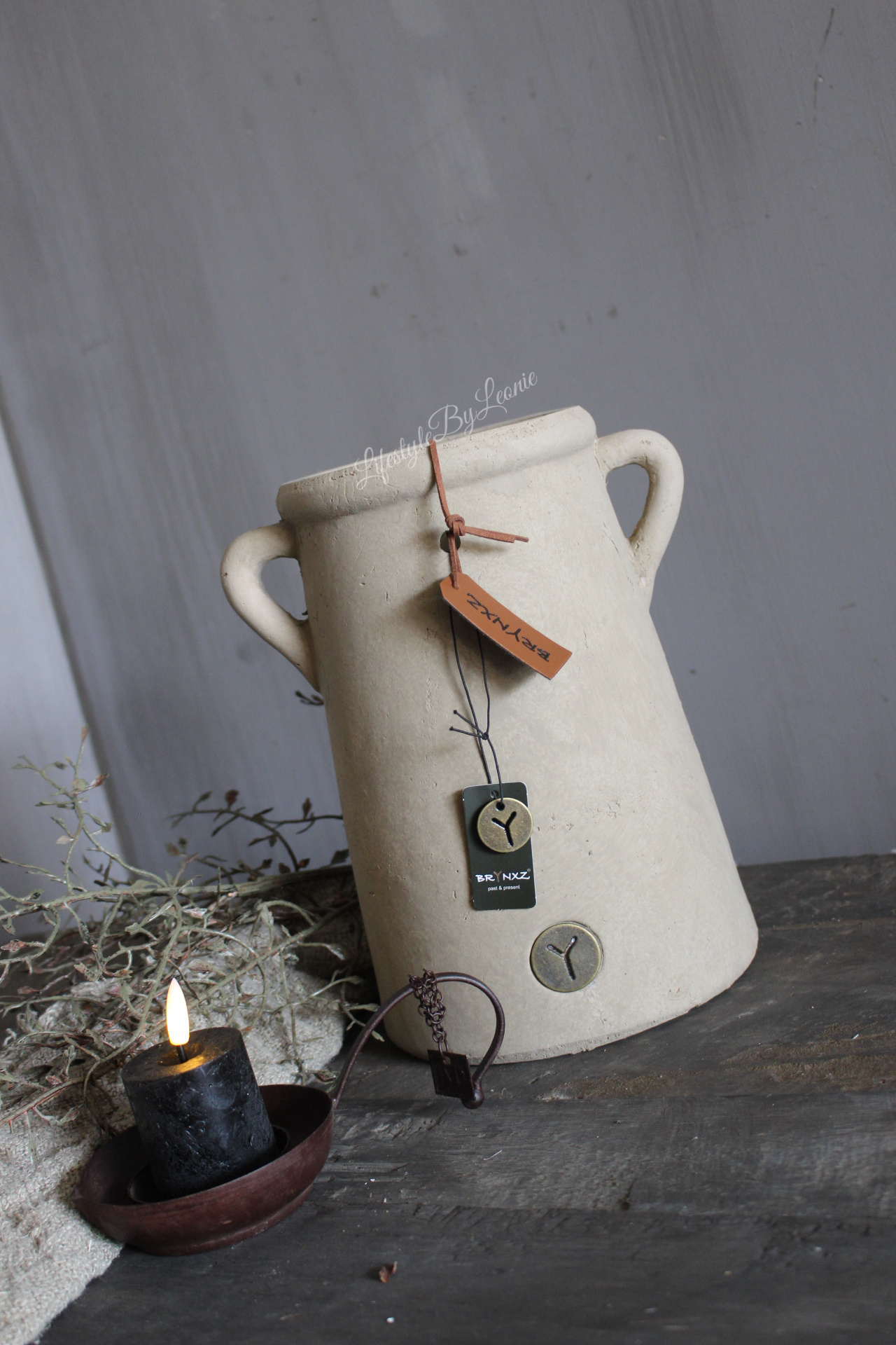 Prachtige vaas met oortjes van Brynxz in de nieuwe taupe kleur. De vaas is 27 cm hoog.