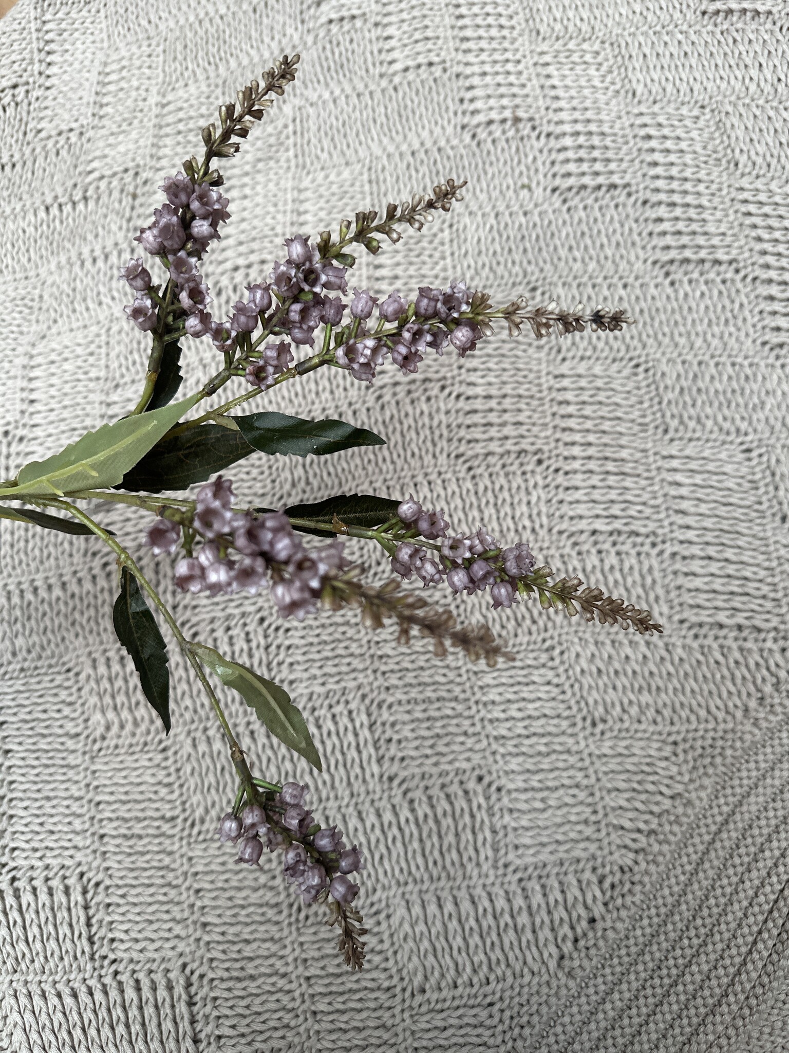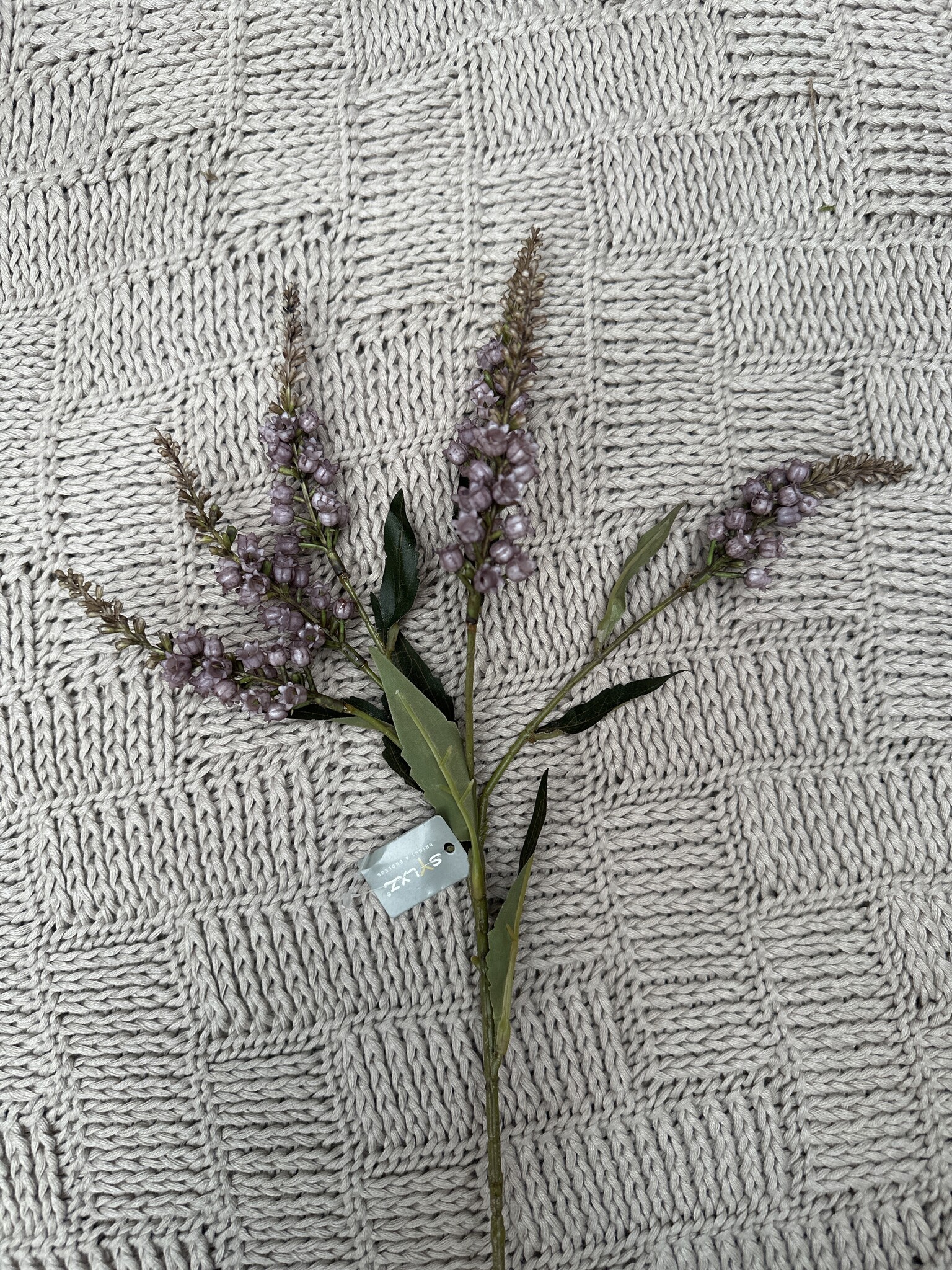 Lelietje van dalen kunstbloem van Brynxz. Deze mooie kunstbloem heeft paarse bloemen en is 50 cm lang.