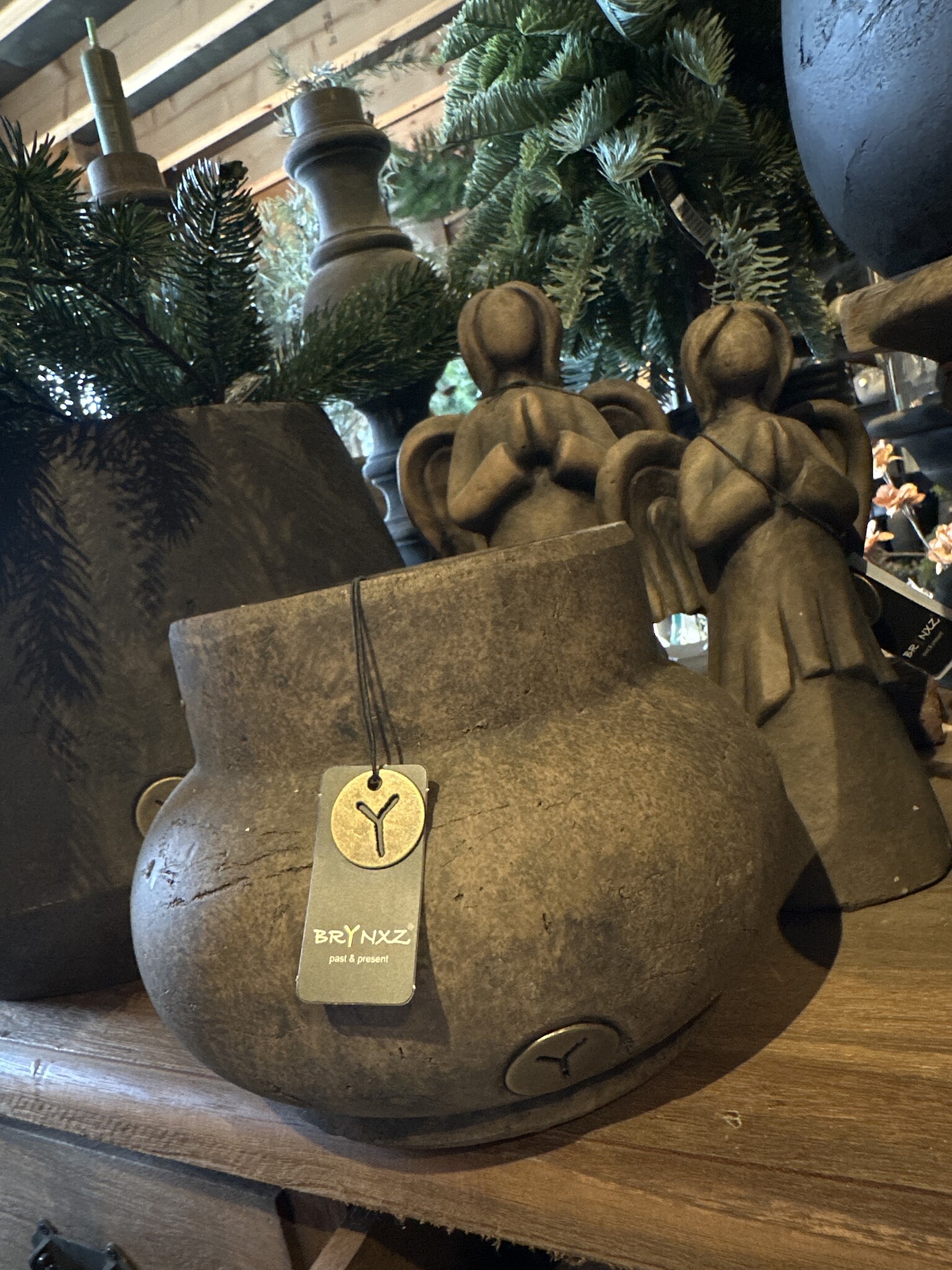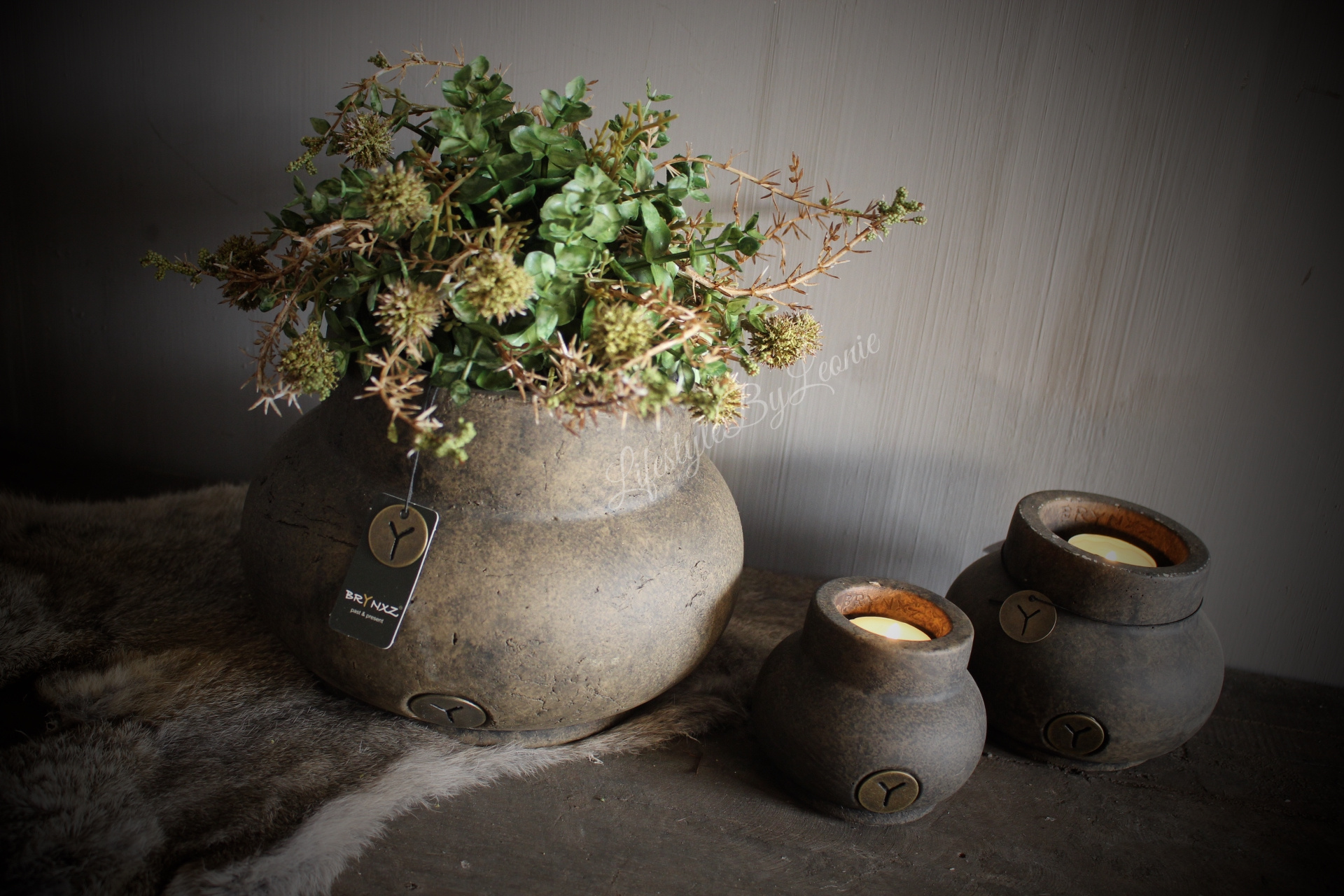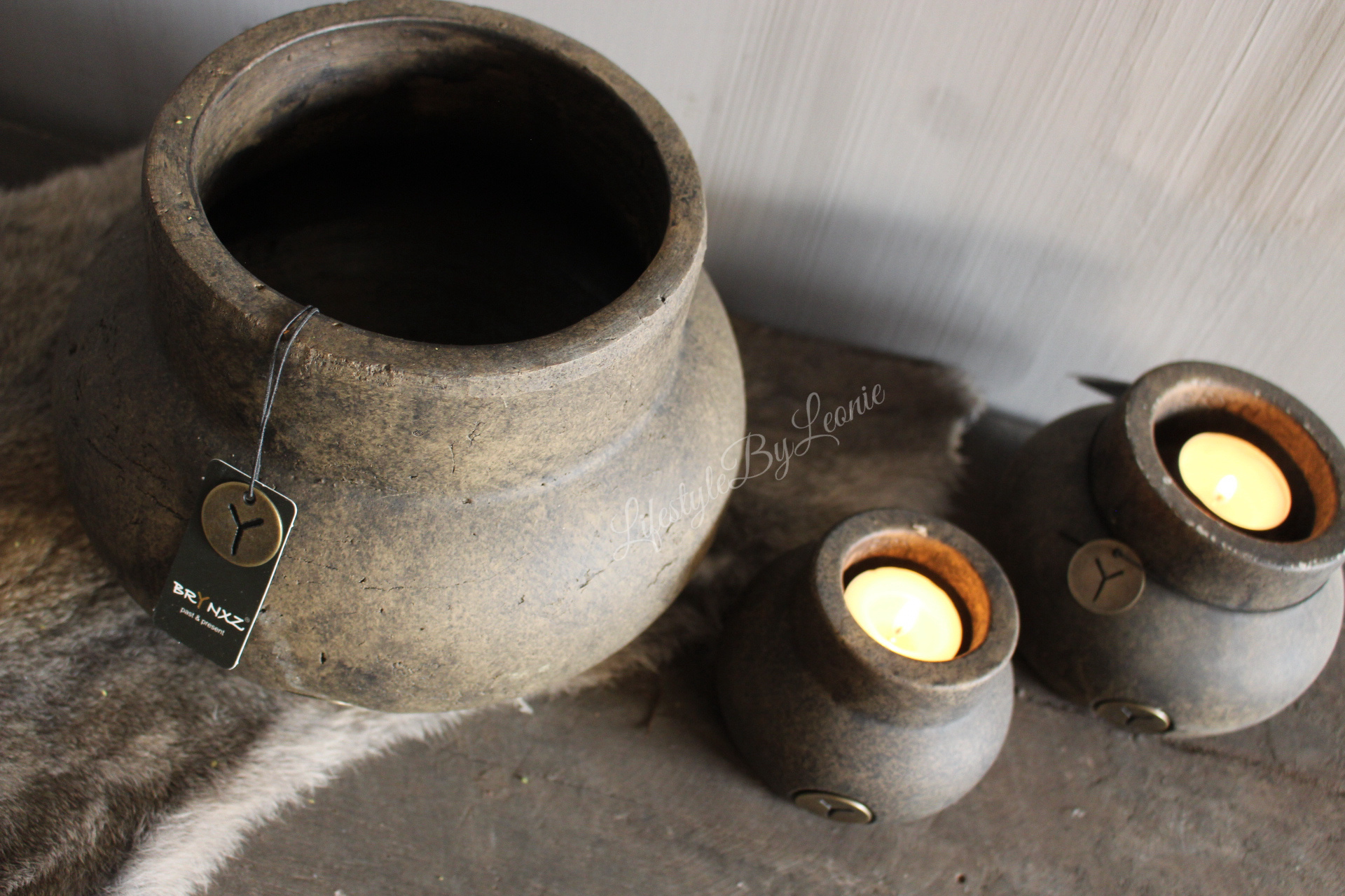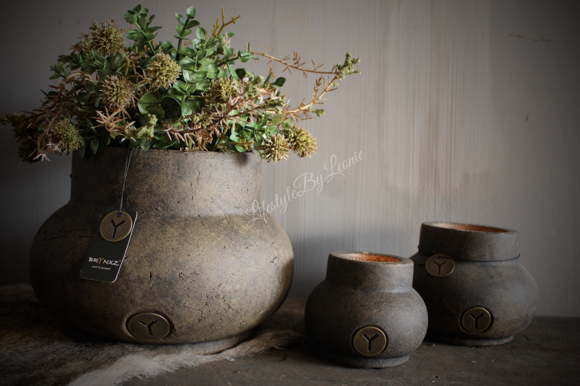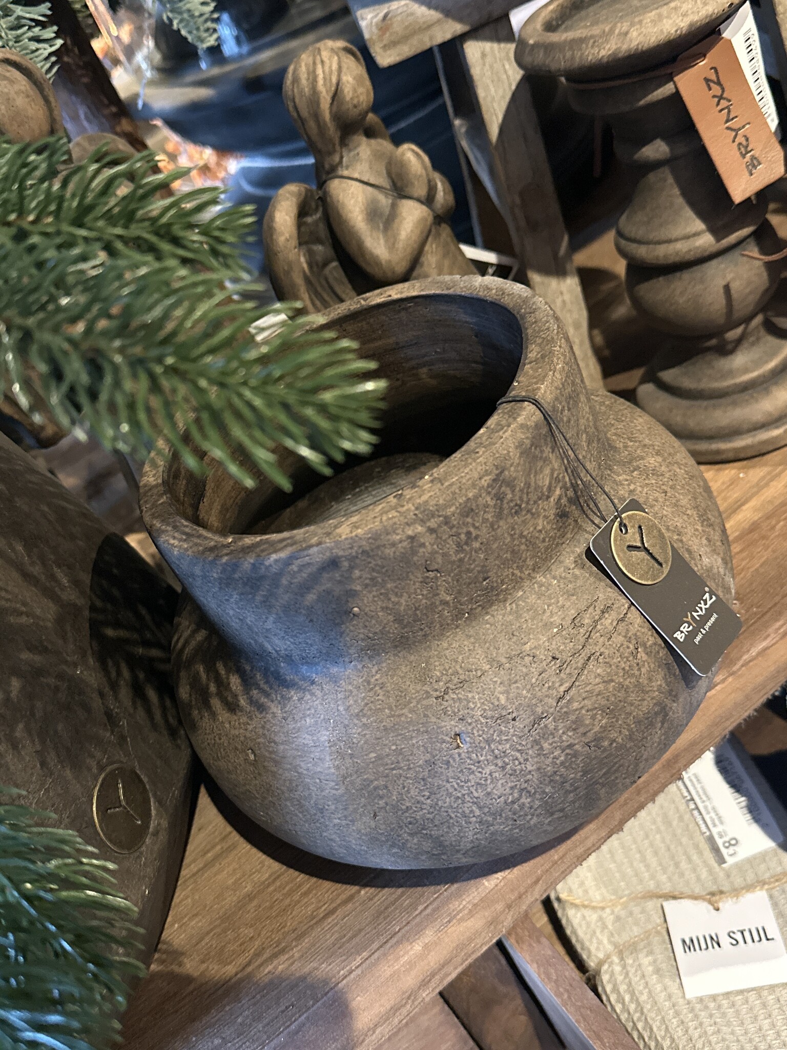 Bruine ronde bolvormige vaas van Brynxz. De vaas is 16 cm hoog.