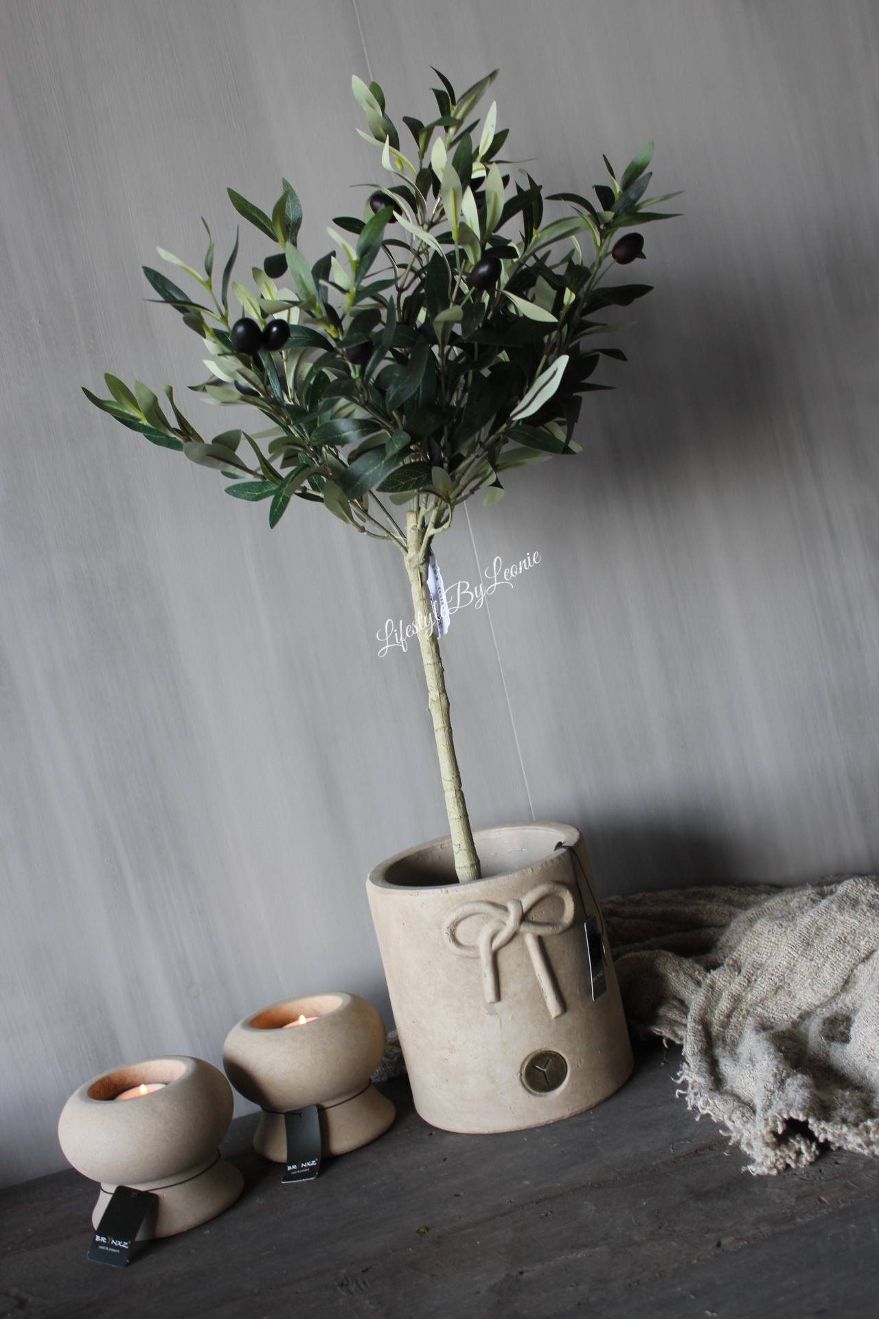 Brynxz planter with a bow Taupe 18cm