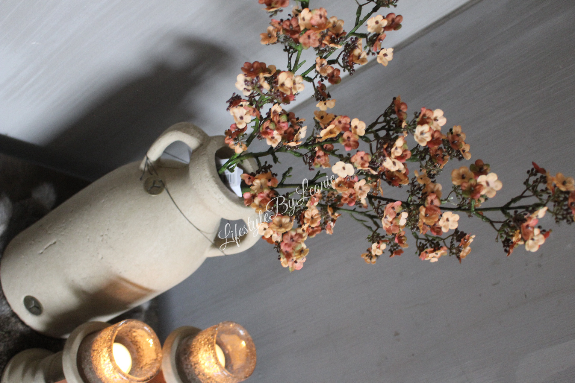 Mooie Brynxz Potentilla kunstbloem met leuke kleine bloemetjes in de kleur abrikoos. De tak is 102 cm lang.