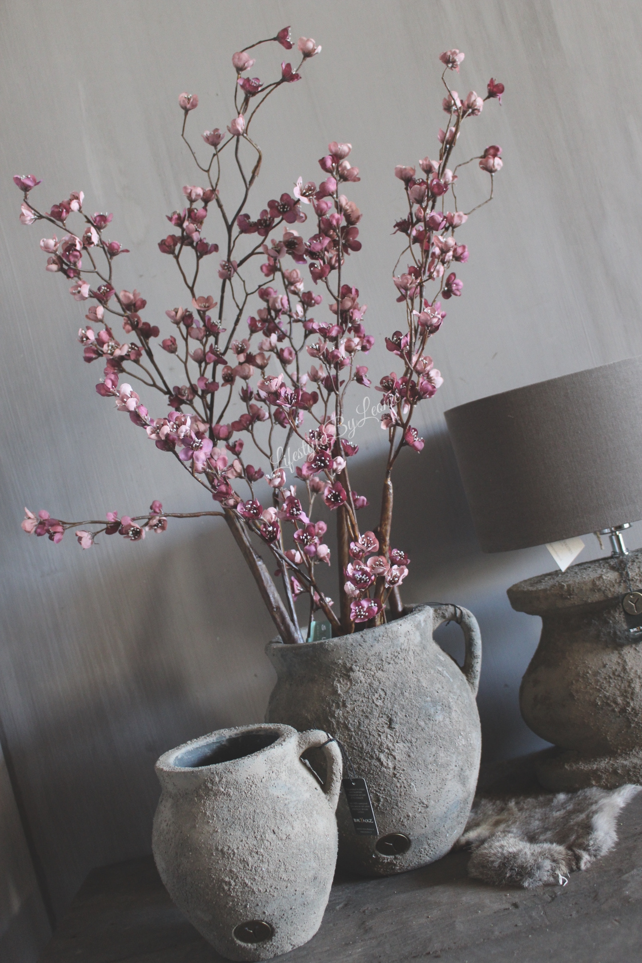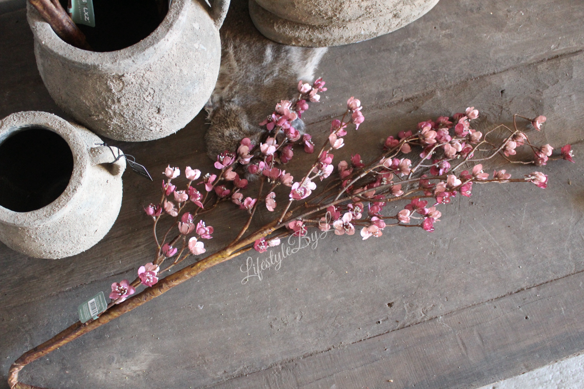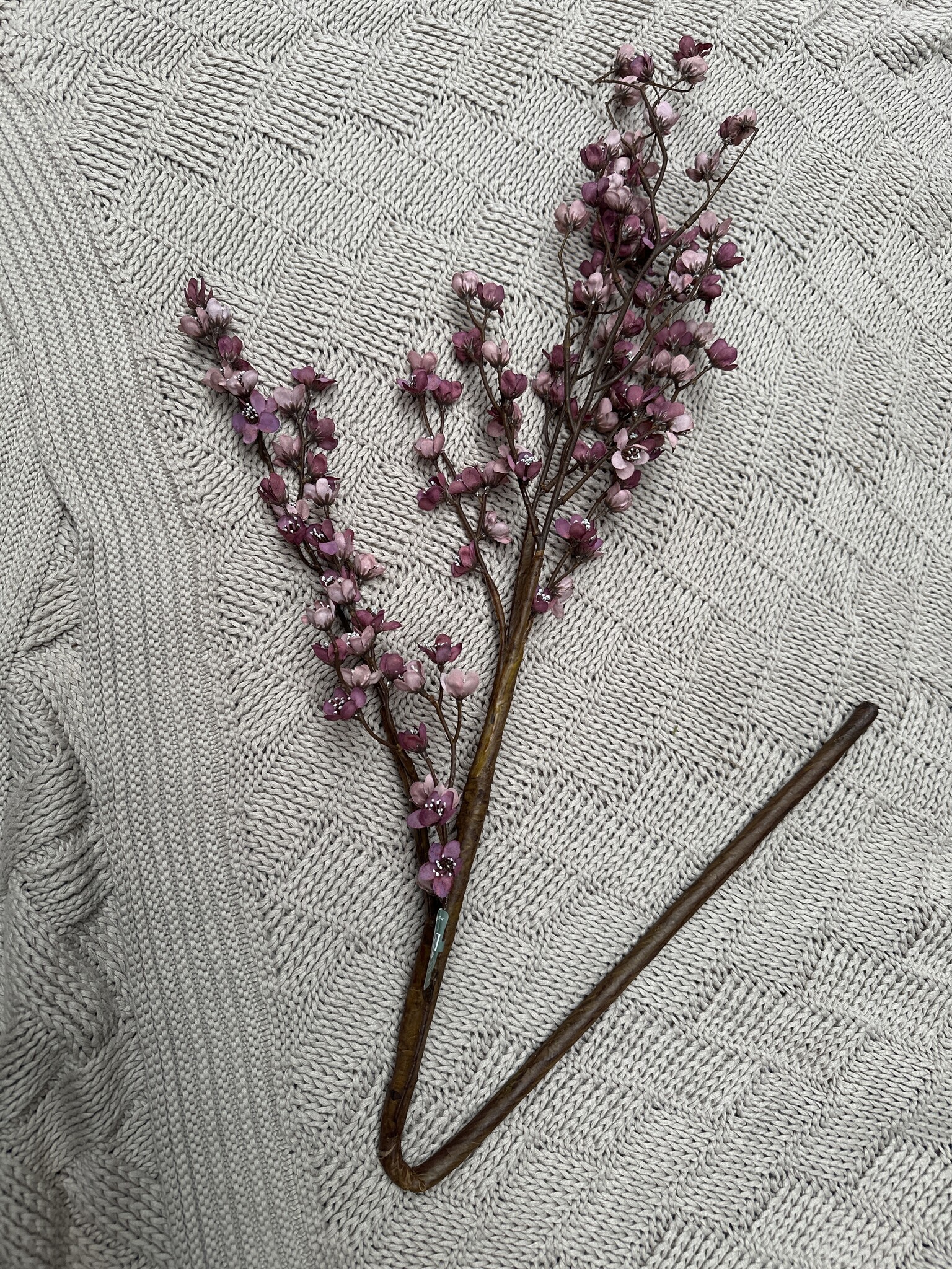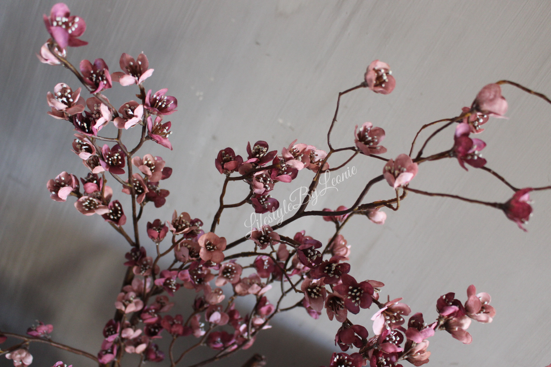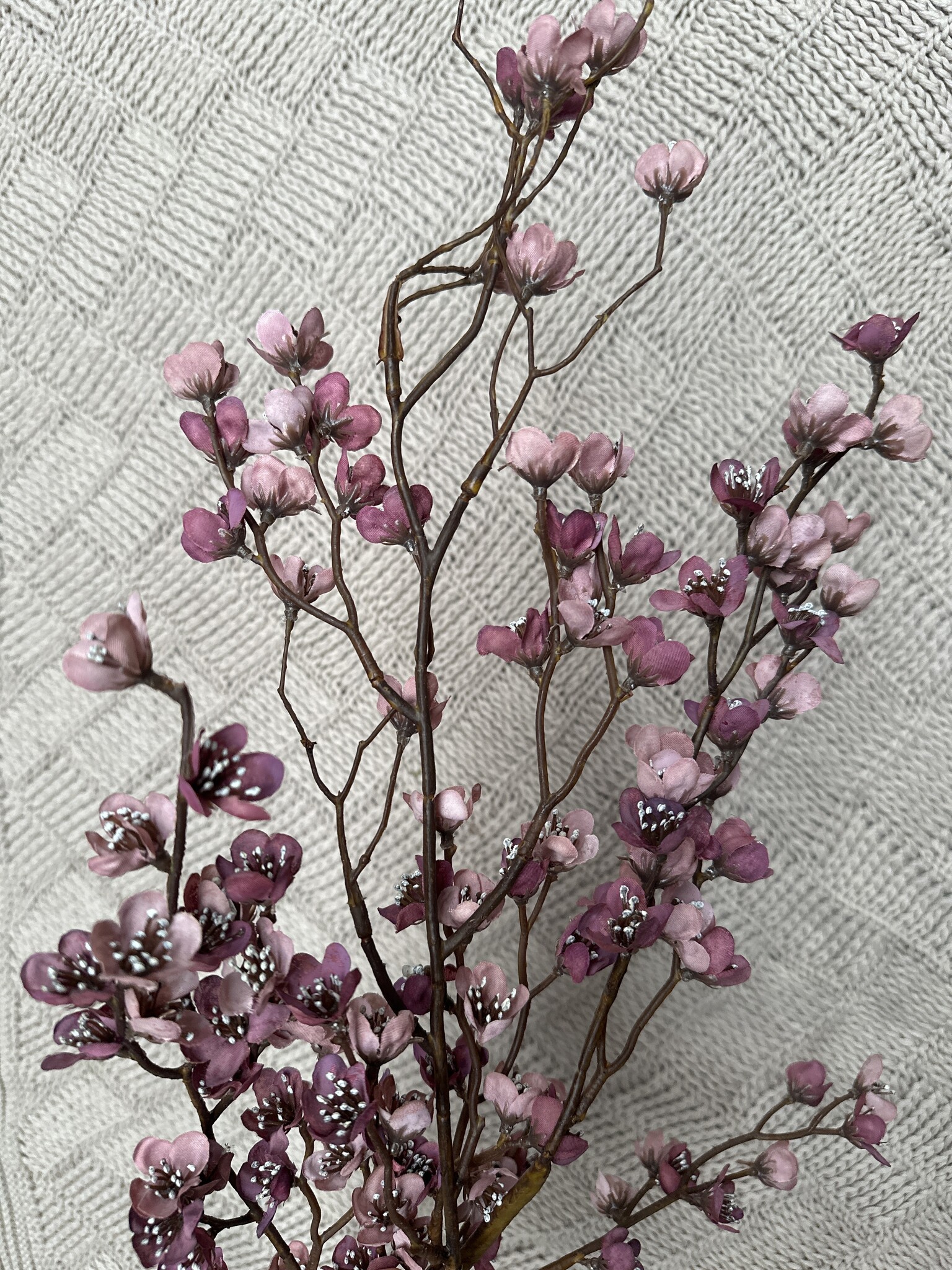 Grote Prunus kunsttak van Brynxz met bloesem in een oudroze/paarse kleur. Deze kunsttak is 130 cm lang.