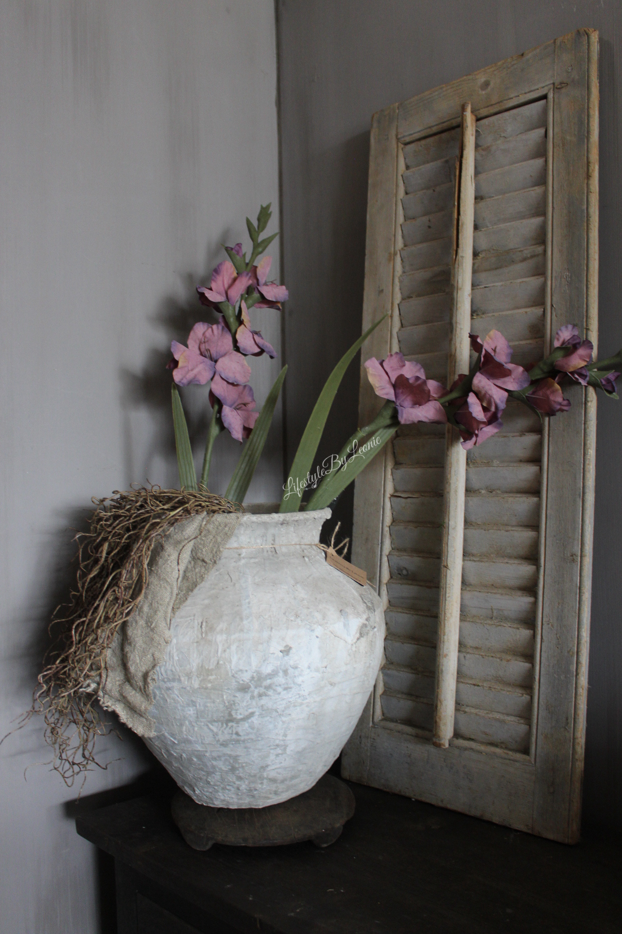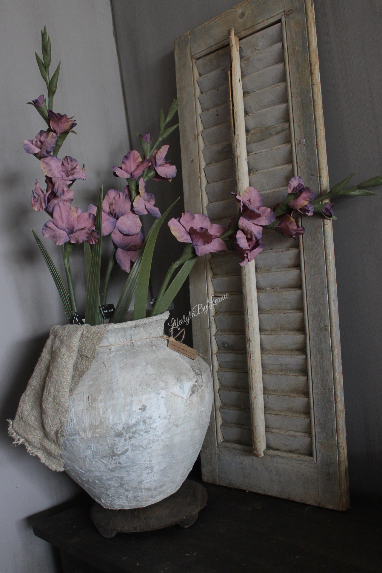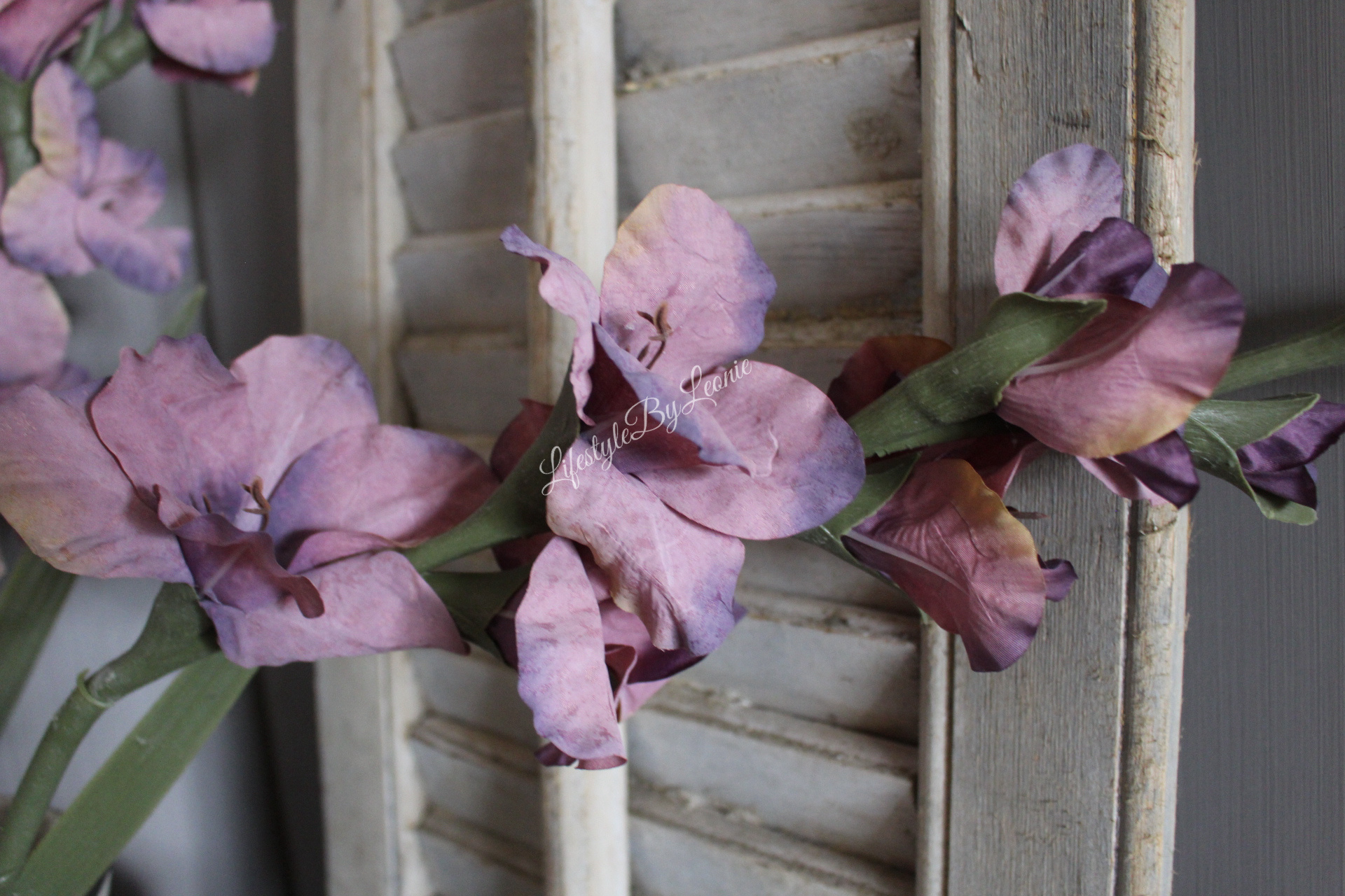Mooie real touch kunst Gladiool met bloemen in een warme paarse tint. De tak is 95 cm lang.