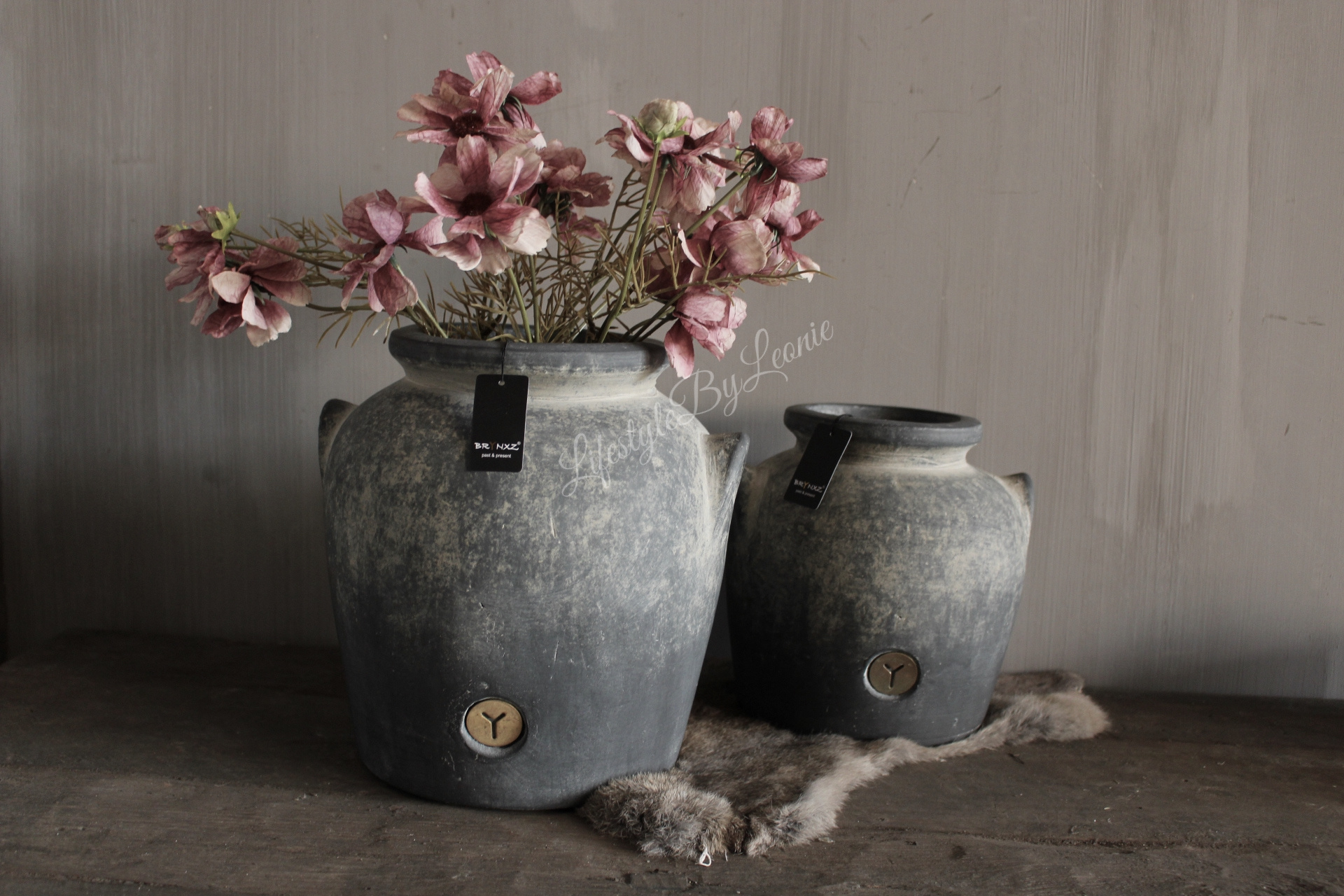 Mooie grote bolvormige pot van Brynxz in de kleur ancient clay. De pot heeft twee oren en is 23 x 25 cm groot.