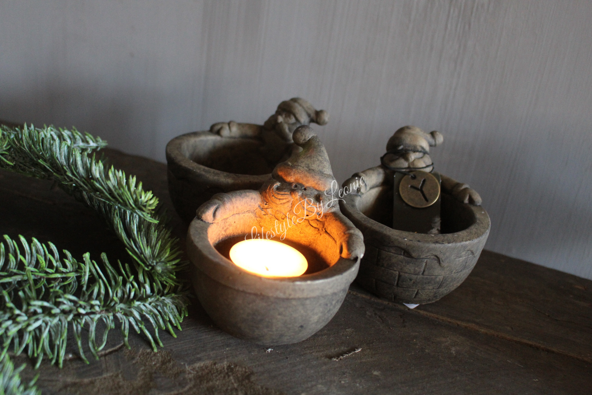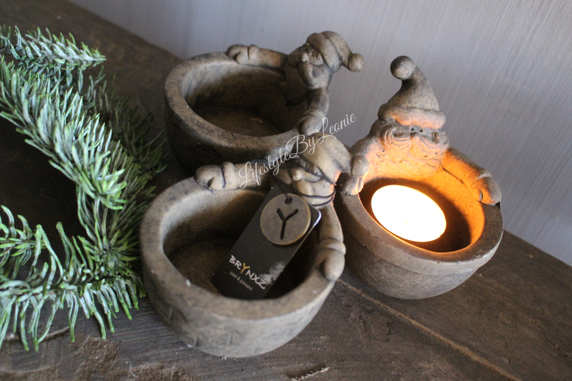 Mooi bakje van Brynxz voor een waxinelichtje met een vrolijke kerstman er op.