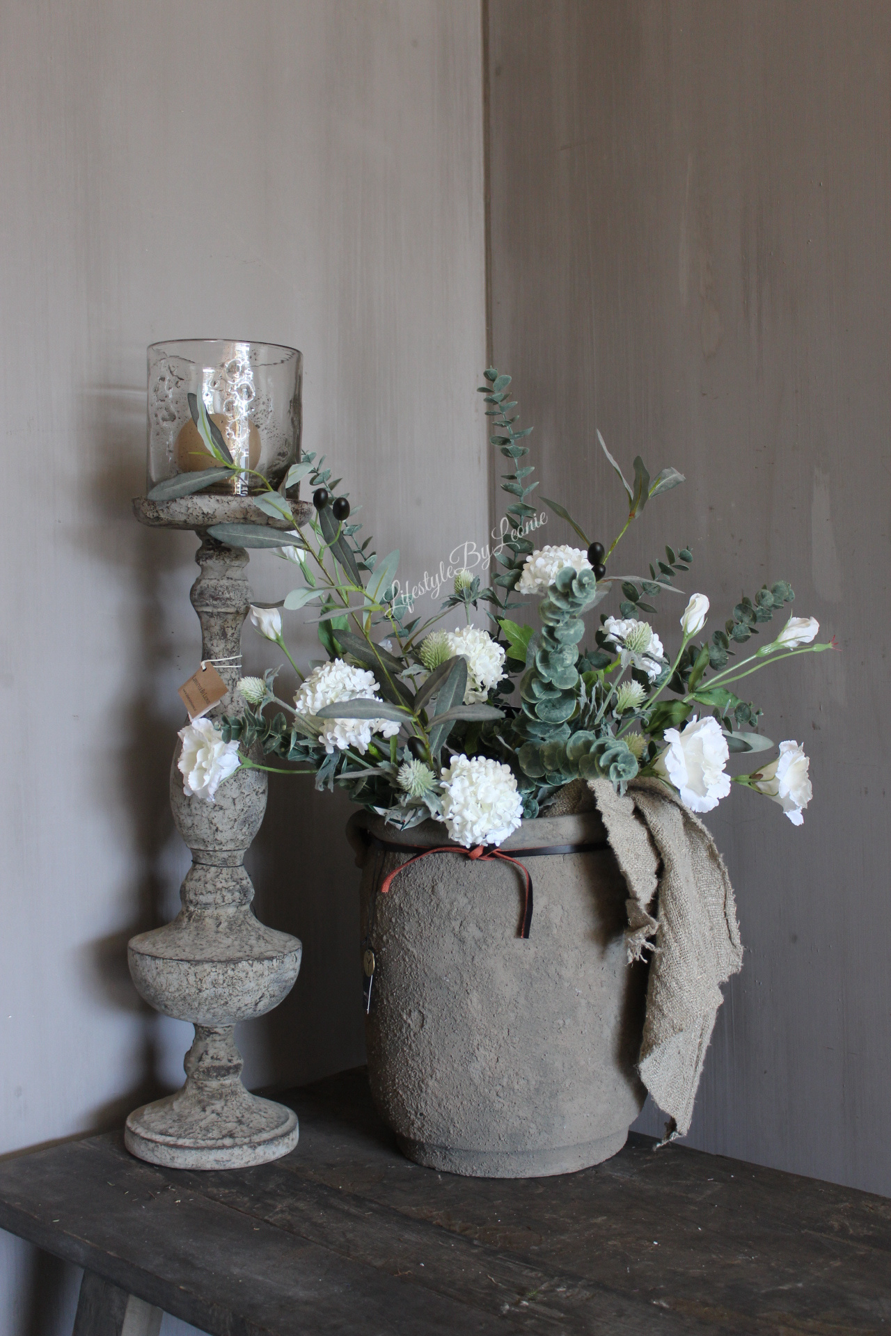 Mooie smalle hoge pot van Brynxz in de nieuwe kleur Rustic. Deze pot heeft twee oren en is afgewerkt met een stoer stukje touw. De pot is 32 x 30 cm groot.