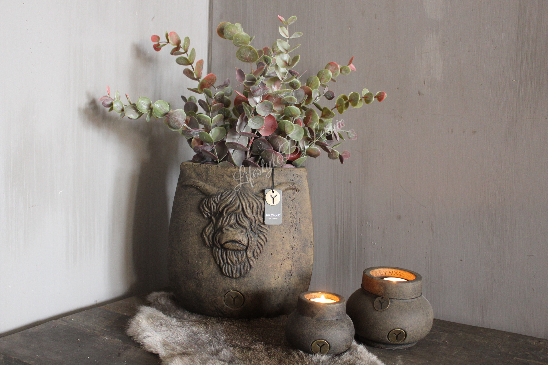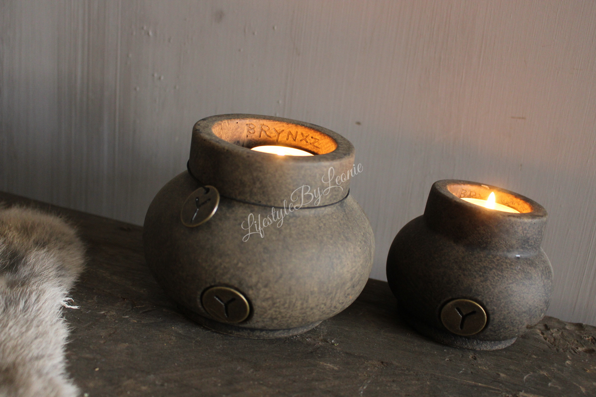 Mooie stenen waxinelichthouder van Brynxz in de brown kleur. Deze waxinelichthouder is 10 cm groot.