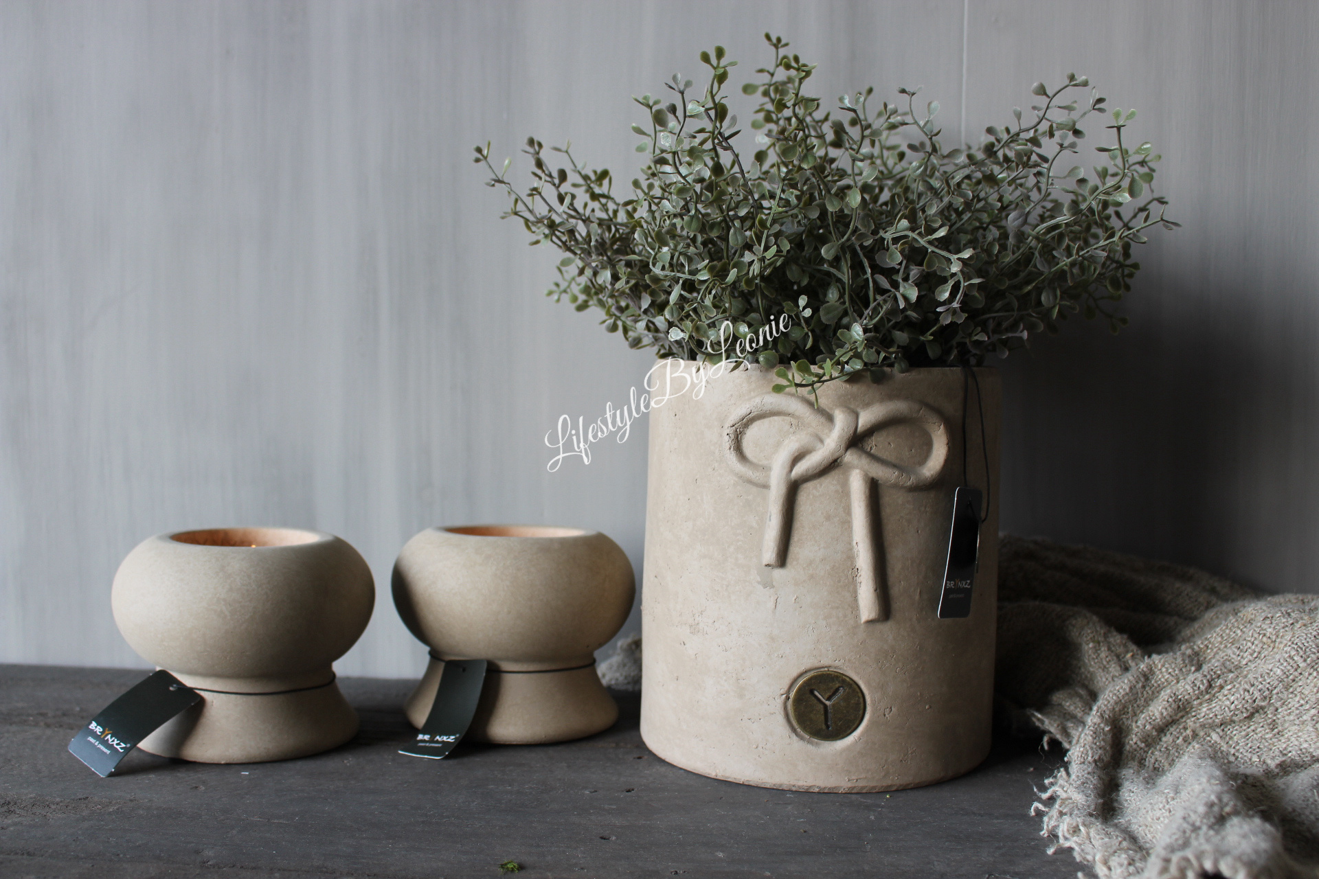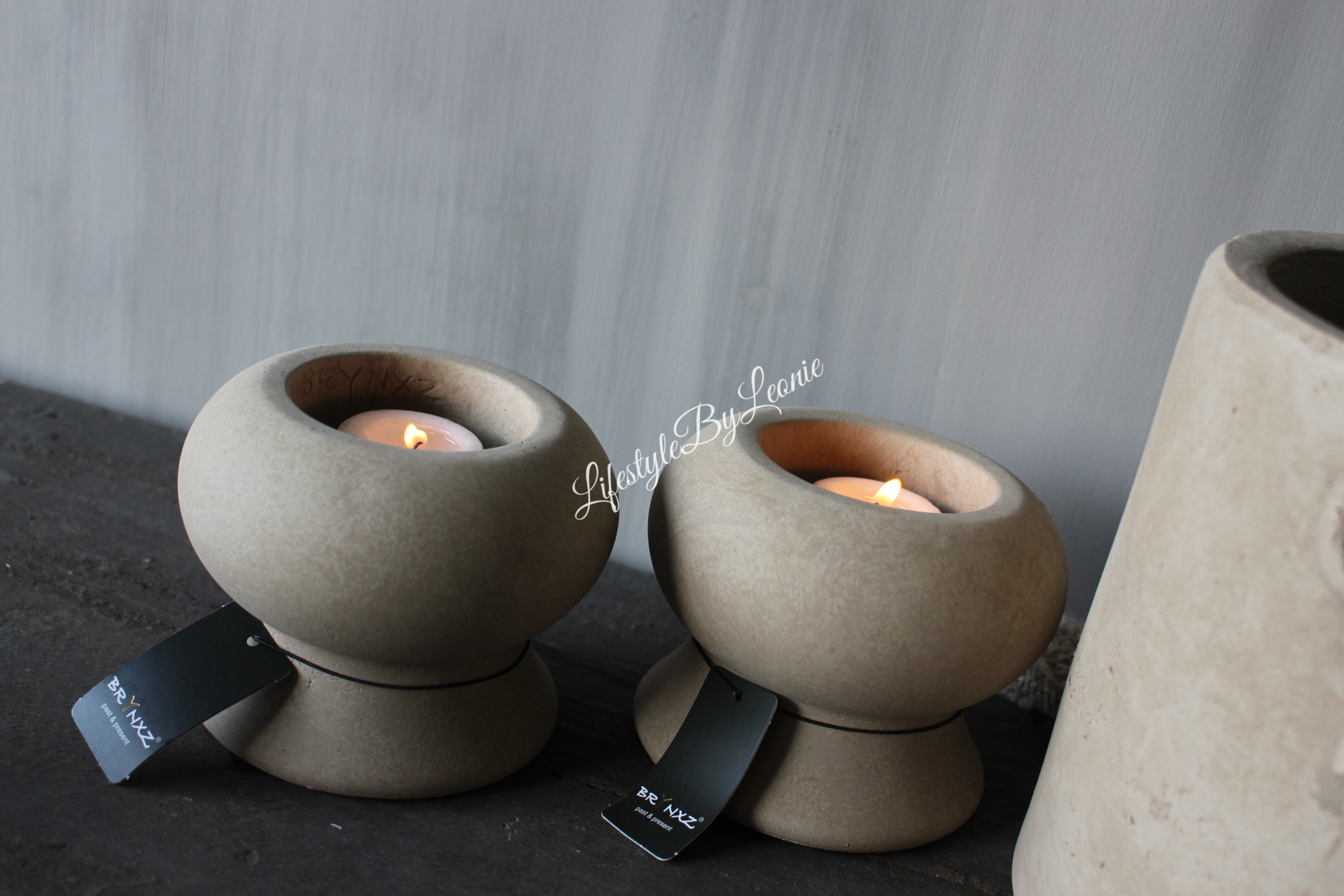 Mooie stevige waxinelichthouder van Brynxz in de kleur taupe. De waxinelichthouder is 12 cm groot.