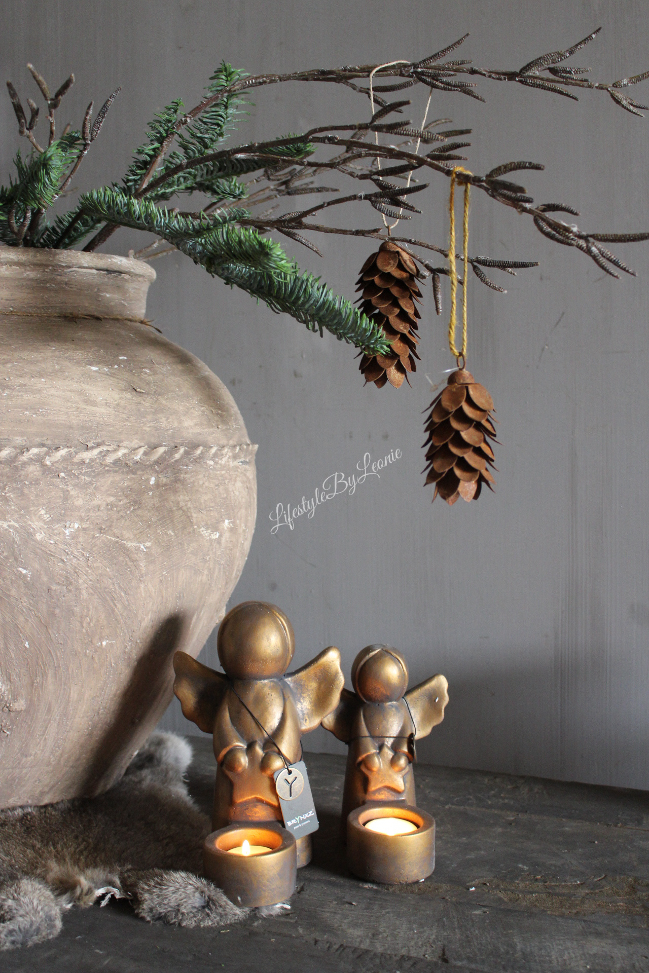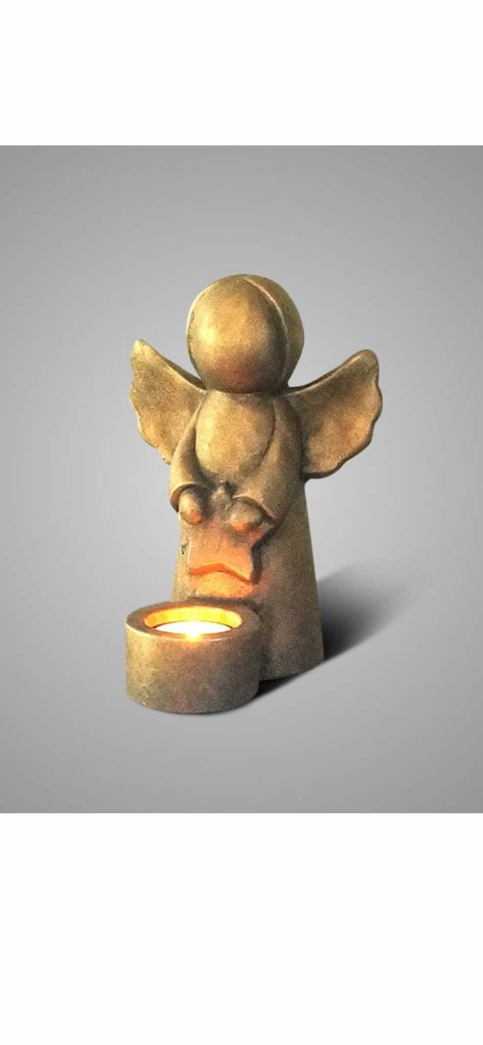 Prachtige goudkleurige waxinelichthouder met engel. Deze waxinelichthouder van Brynxz is 20 cm hoog.