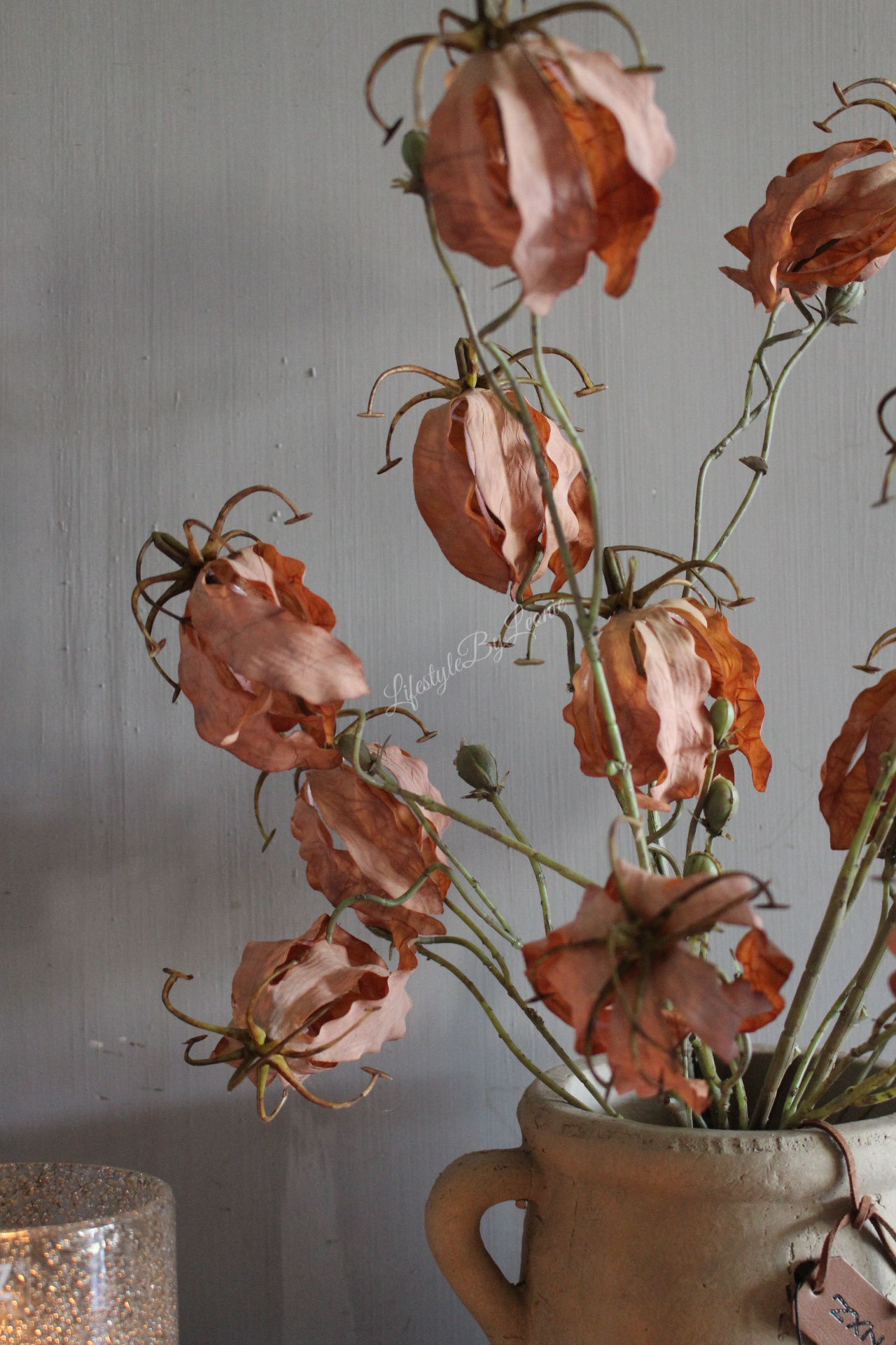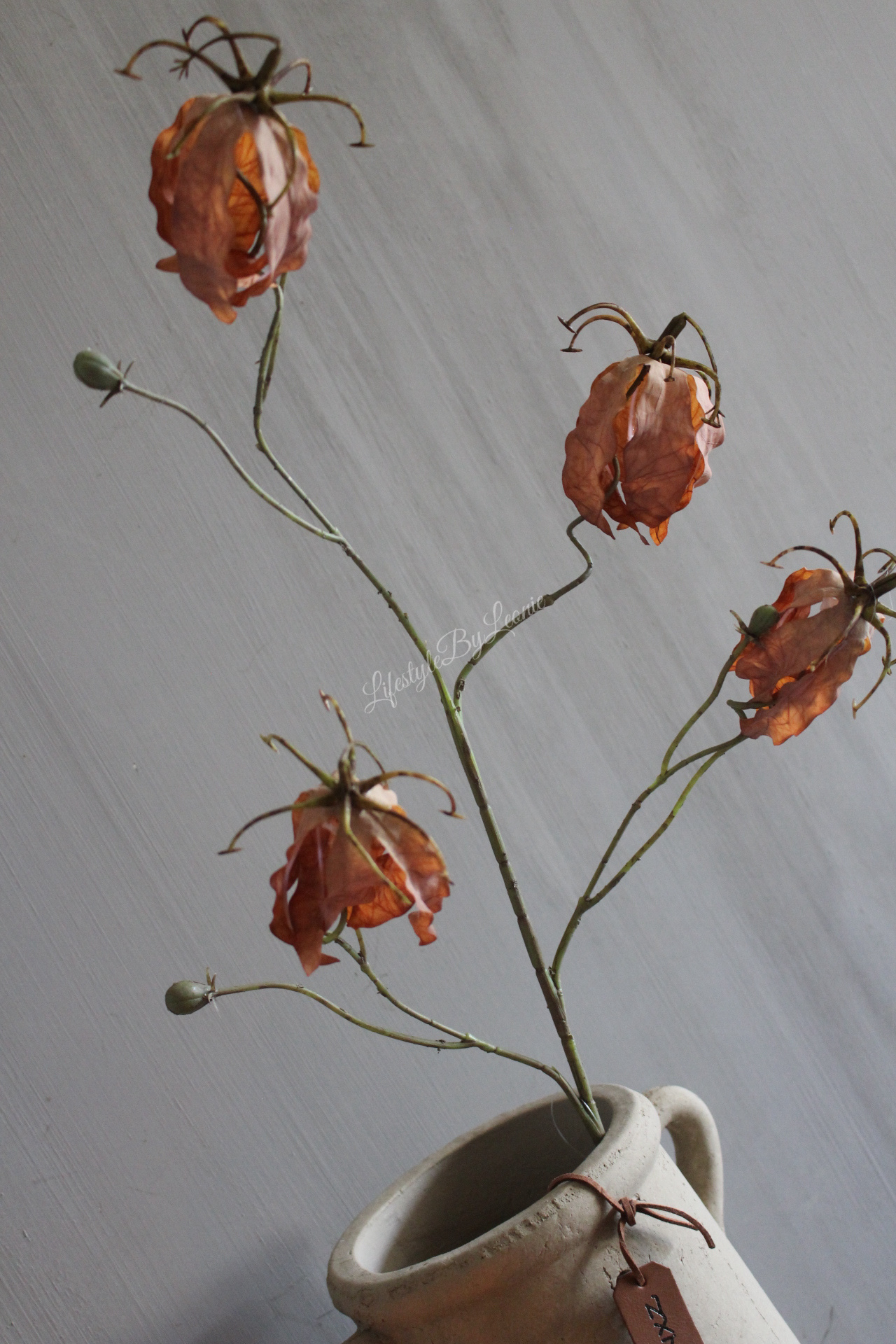 Mooie volle zijden Gloriosa kunsttak in een prachtige warme herfsttint. Deze tak van Brynxz is 80 cm lang.
