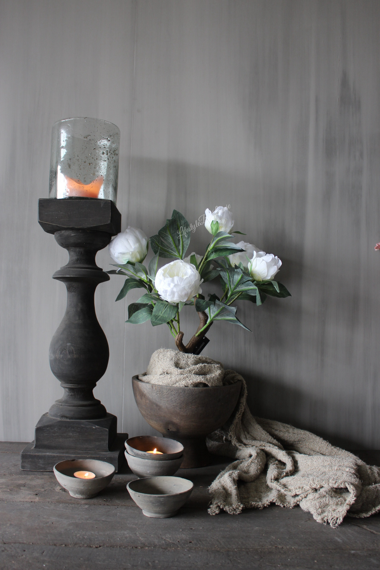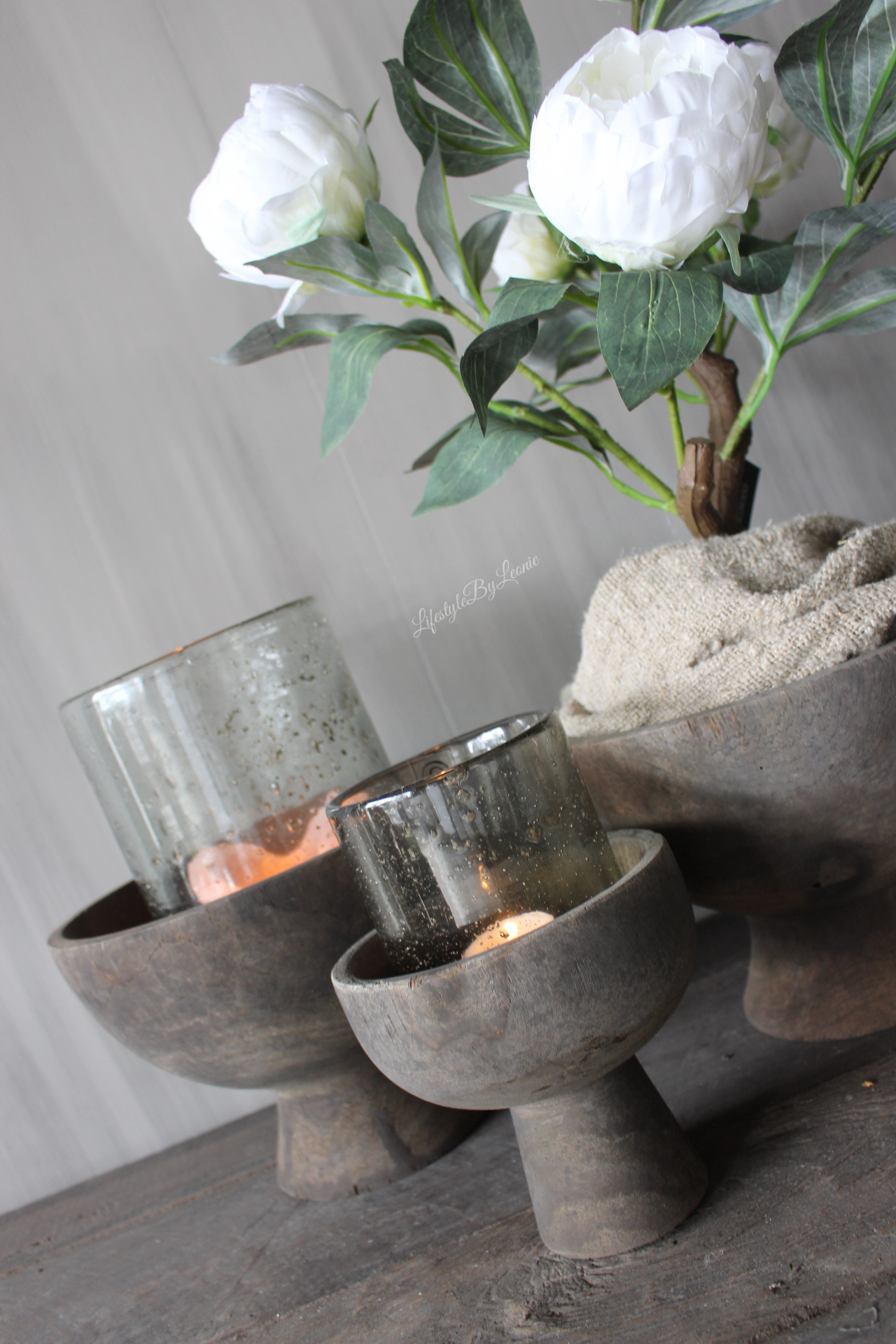 N.b. het betreft de kleinste maat windlicht op de foto's.
