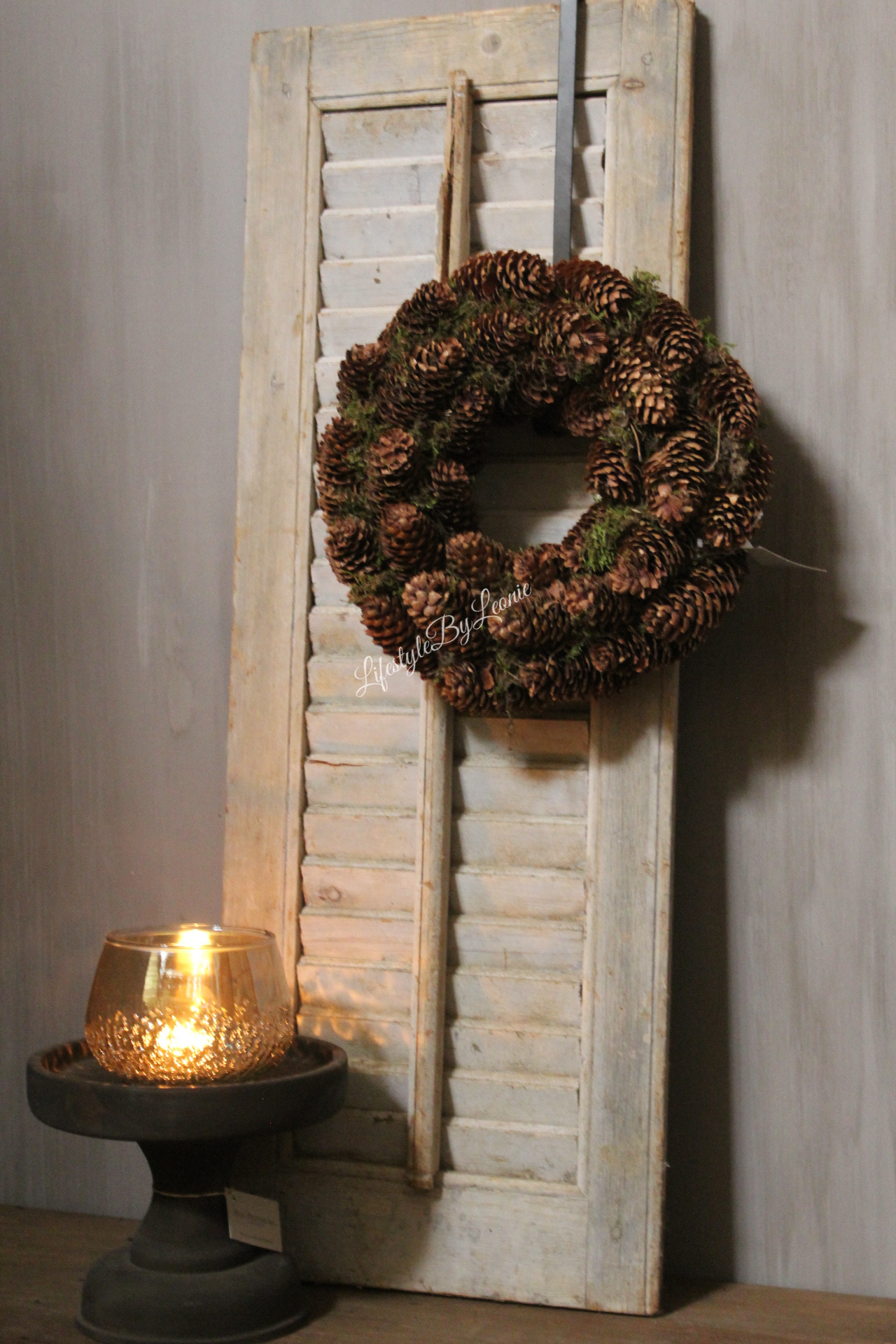 Mooie dikke moskrans met dennenappels. De krans heeft een doorsnede van 35 cm.