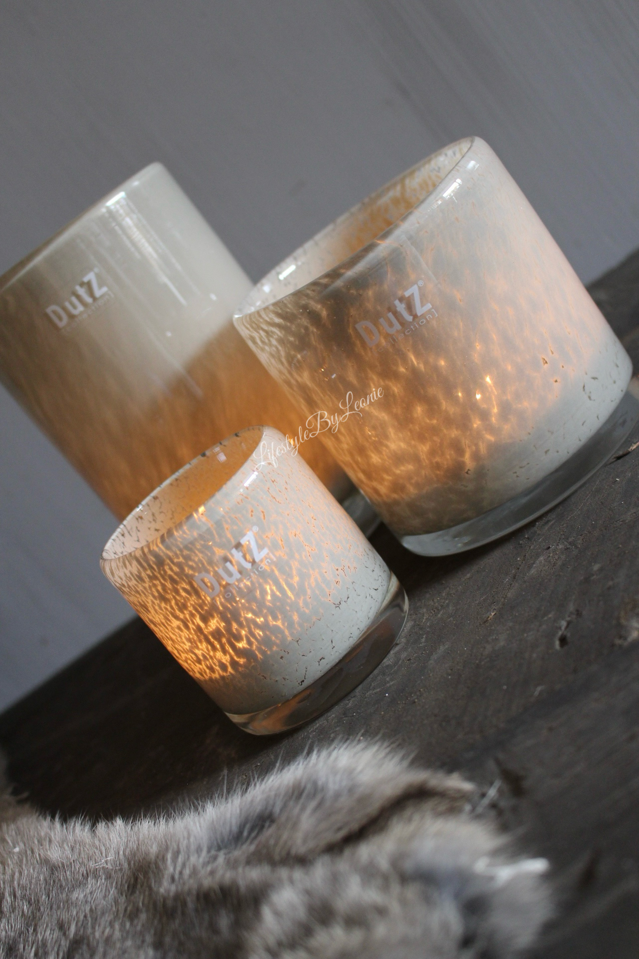 DUTZ glazen waxinelichthouder met lichte bubbels in het glas. Dit mondgeblazen windlicht is 7 cm hoog.