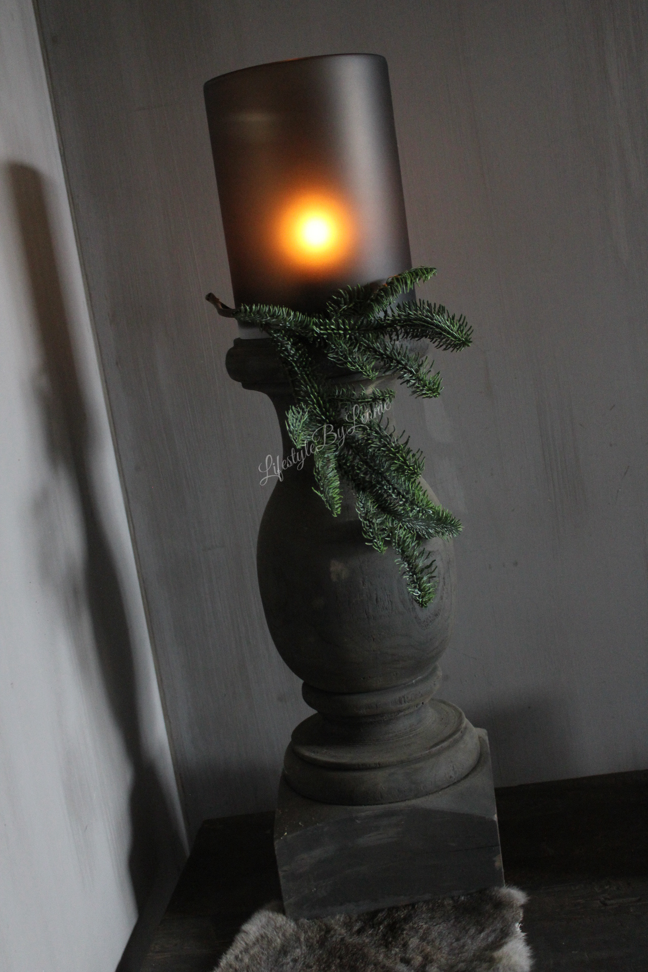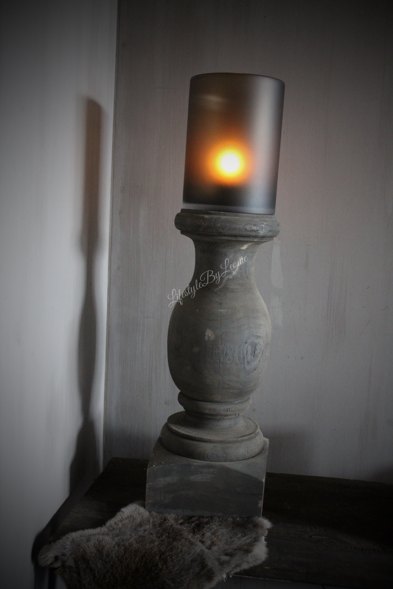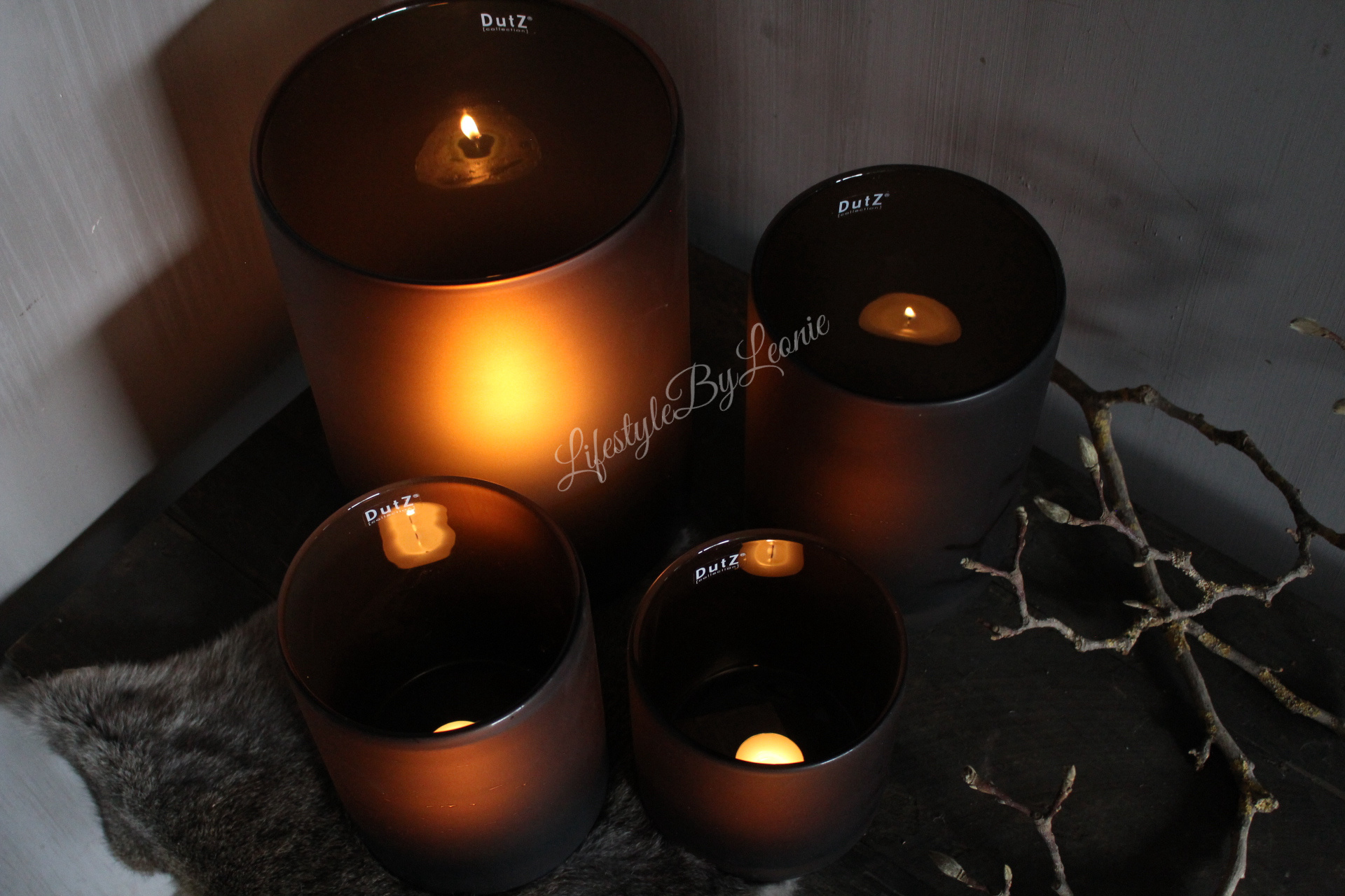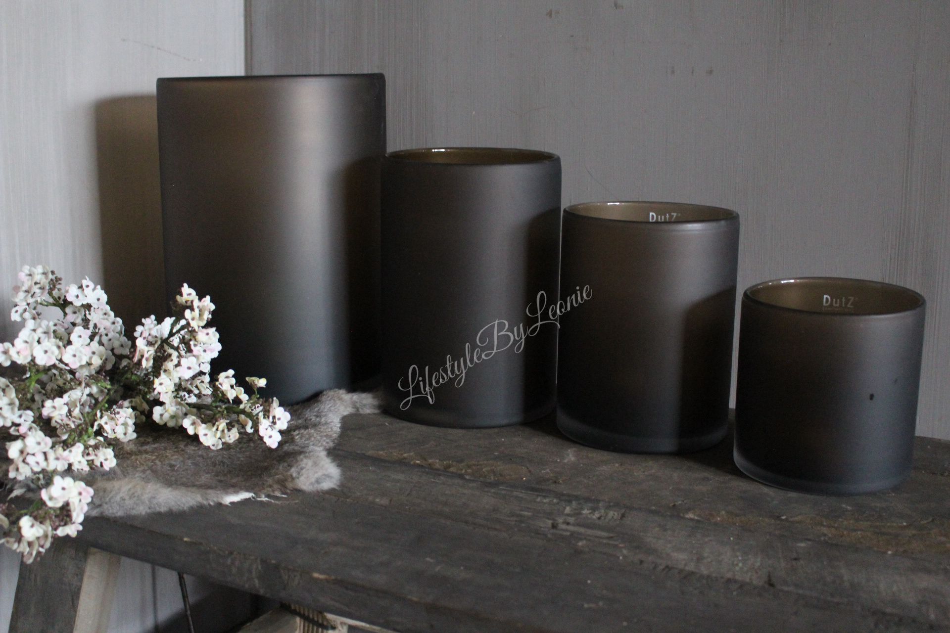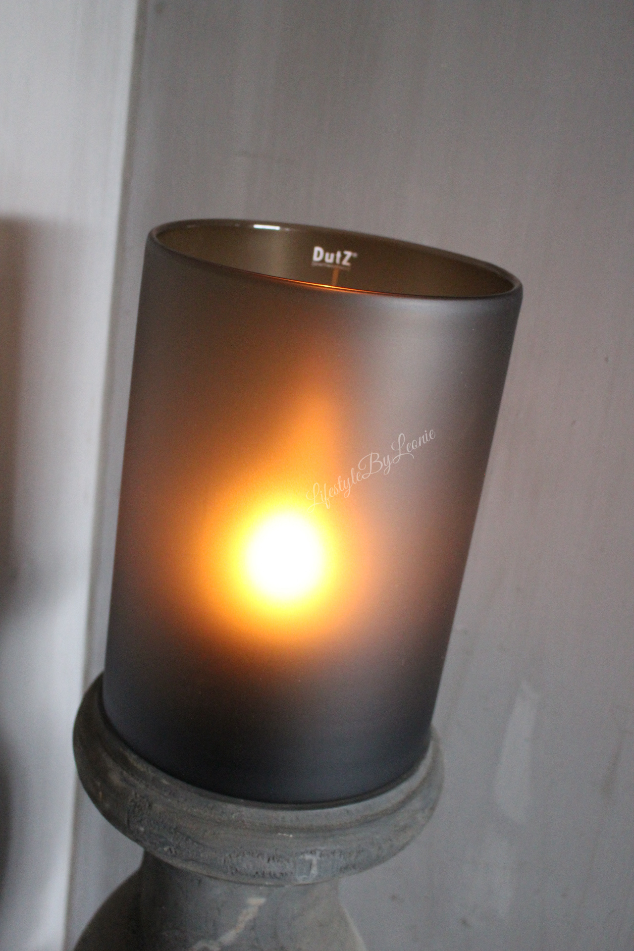 Supermooi mondgeblazen glazen windlicht van DUTZ in een mat bruine kleur. Het windlicht is 30 cm hoog en geeft mooi warm licht.
