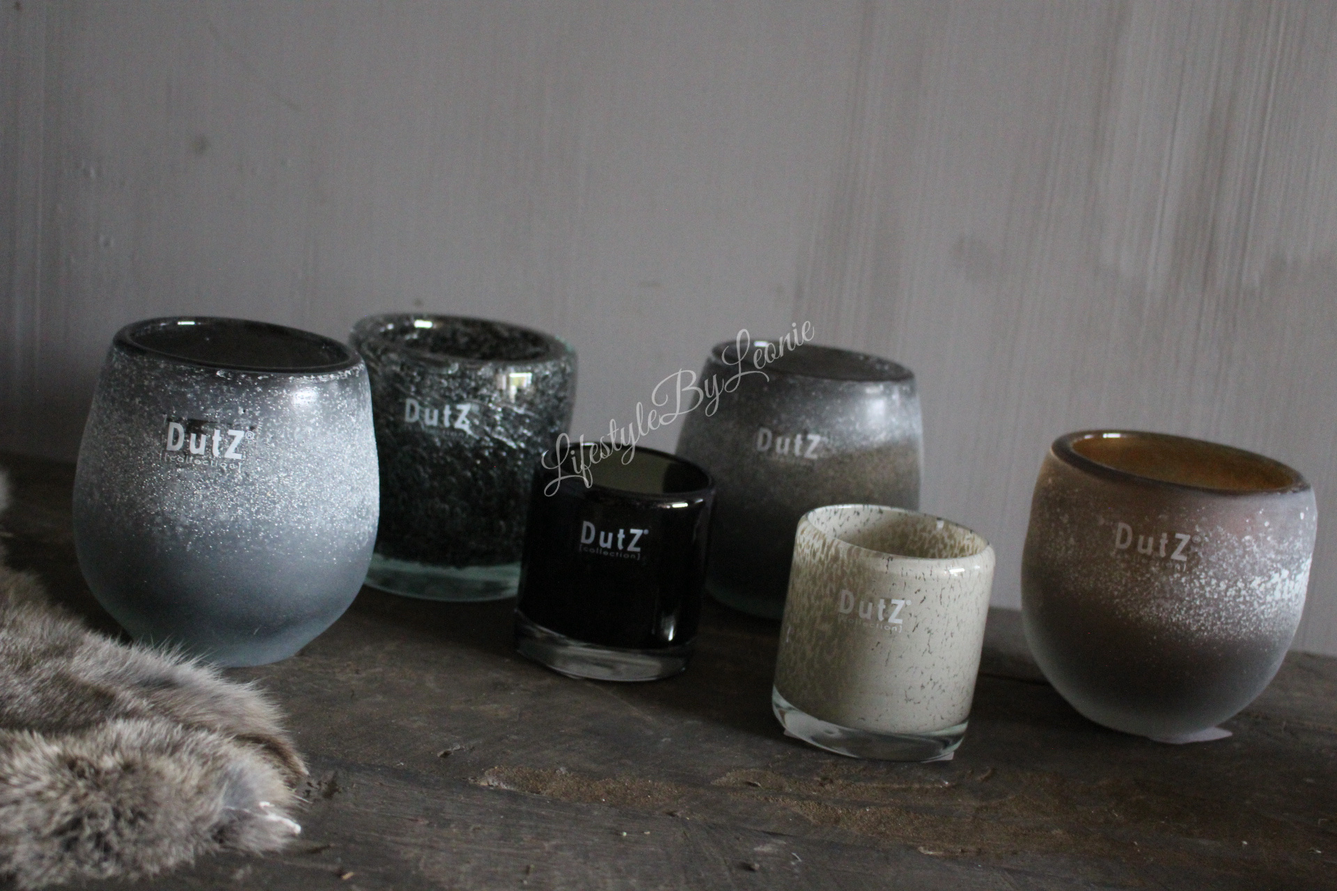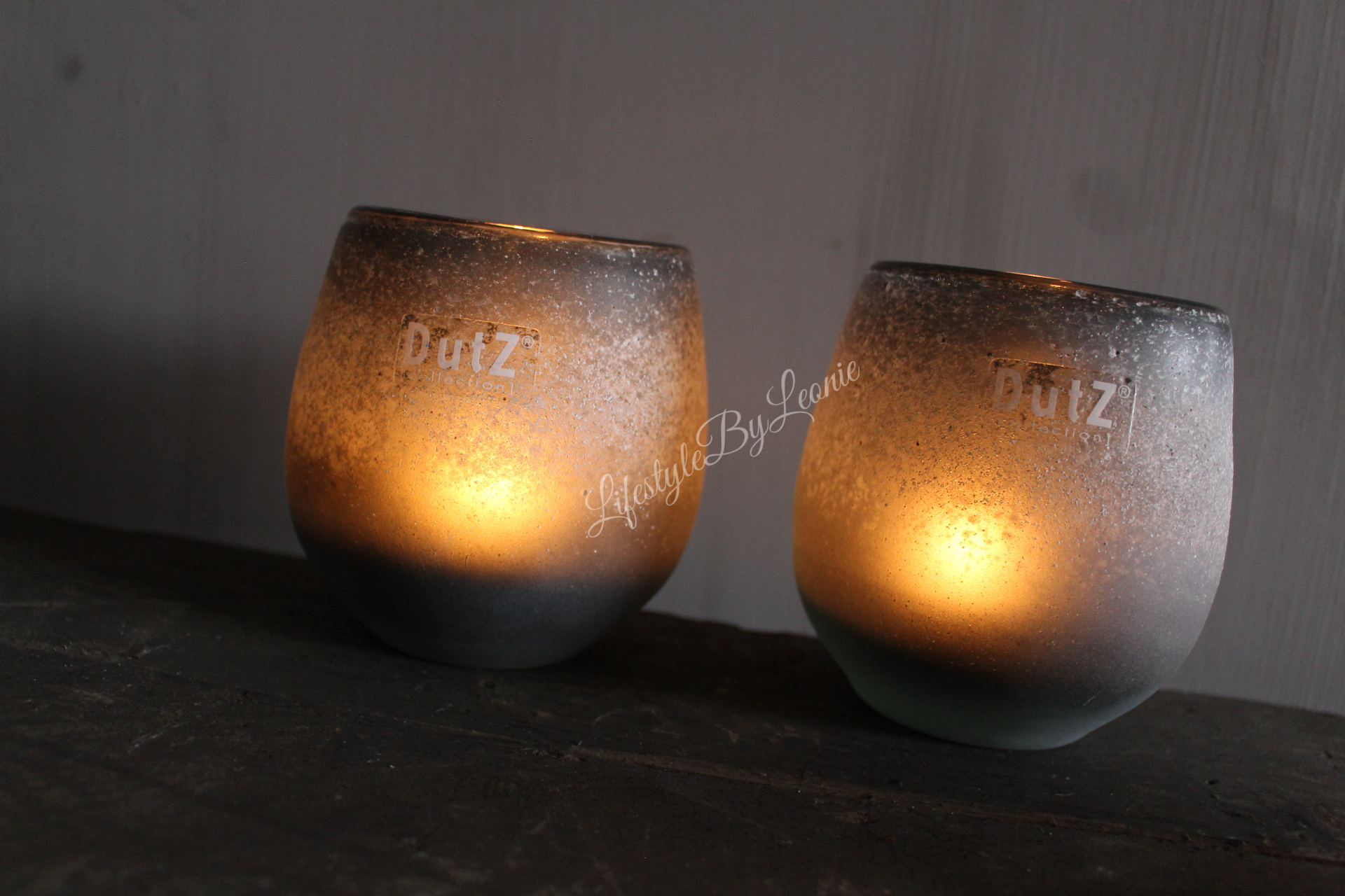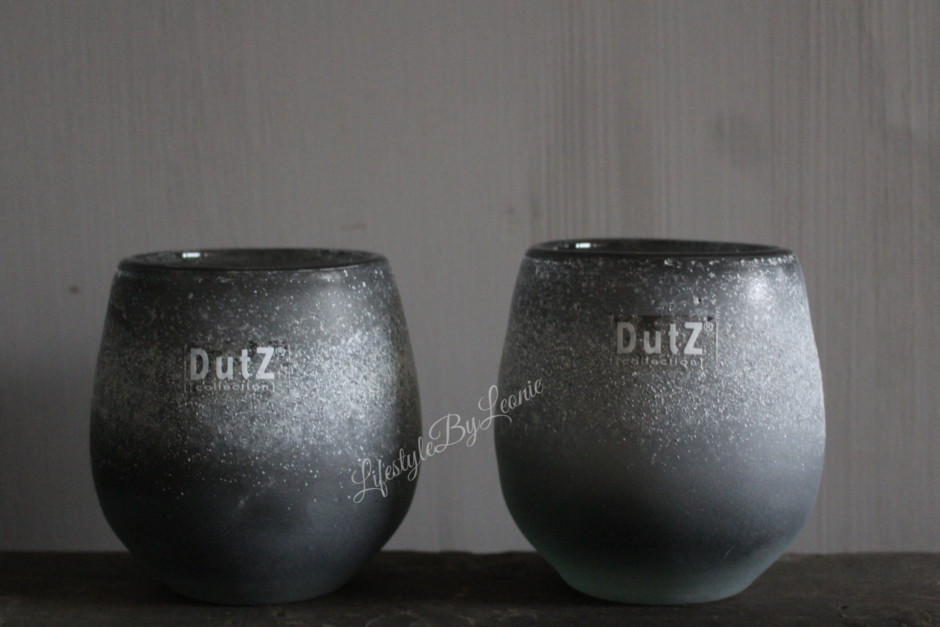 DUTZ mondgeblazen windlicht van dik glas met een mooie matte grijze finish die prachtig doorschijnt. Dit windlicht is 10 cm hoog.