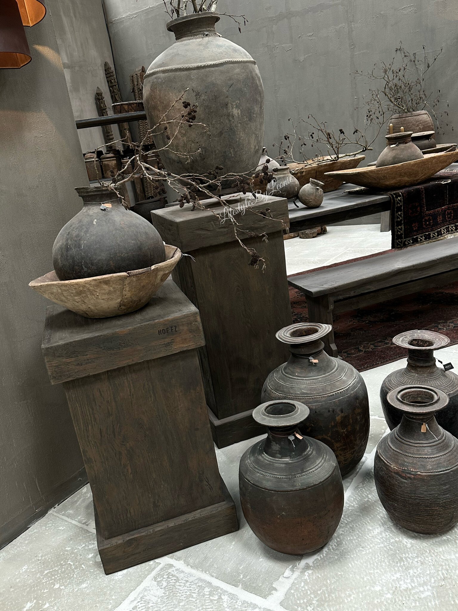 Hoffz Interior stenen ronde kruik op standaard 33x30cm