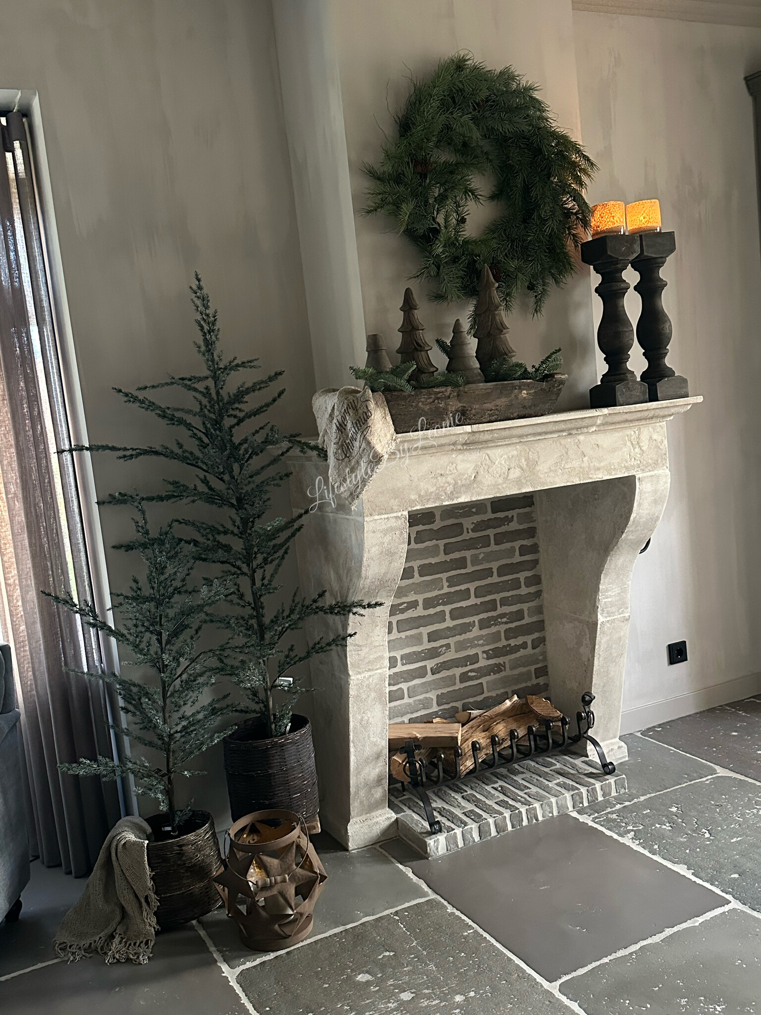 Mooie massief houten vierkante baluster kandelaar in een grey wash kleur. Deze kandelaar van LUKSA is 50 cm hoog.