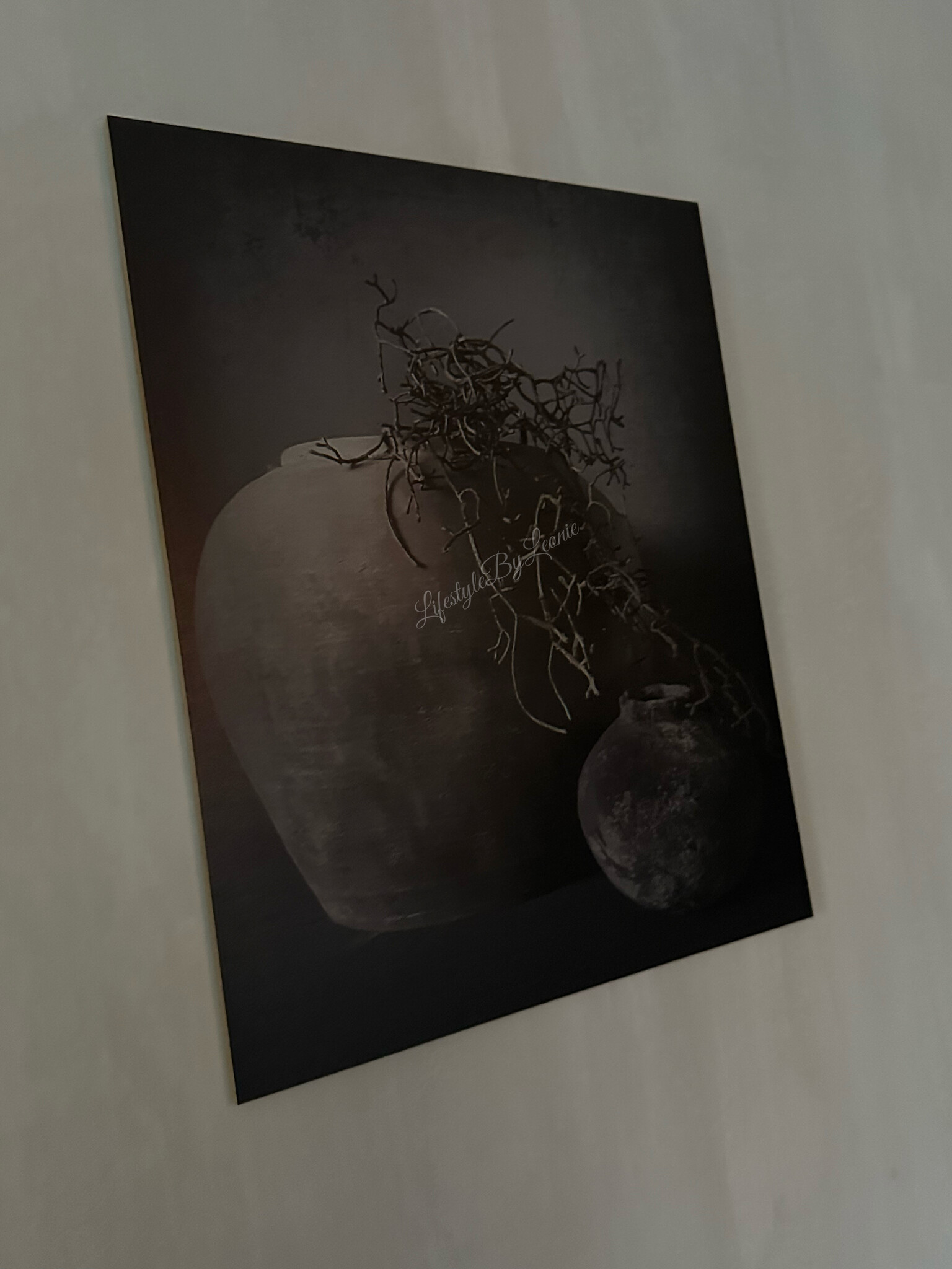 Houten decobord / paneel Sobere kruik + tak 55 x 45 cm