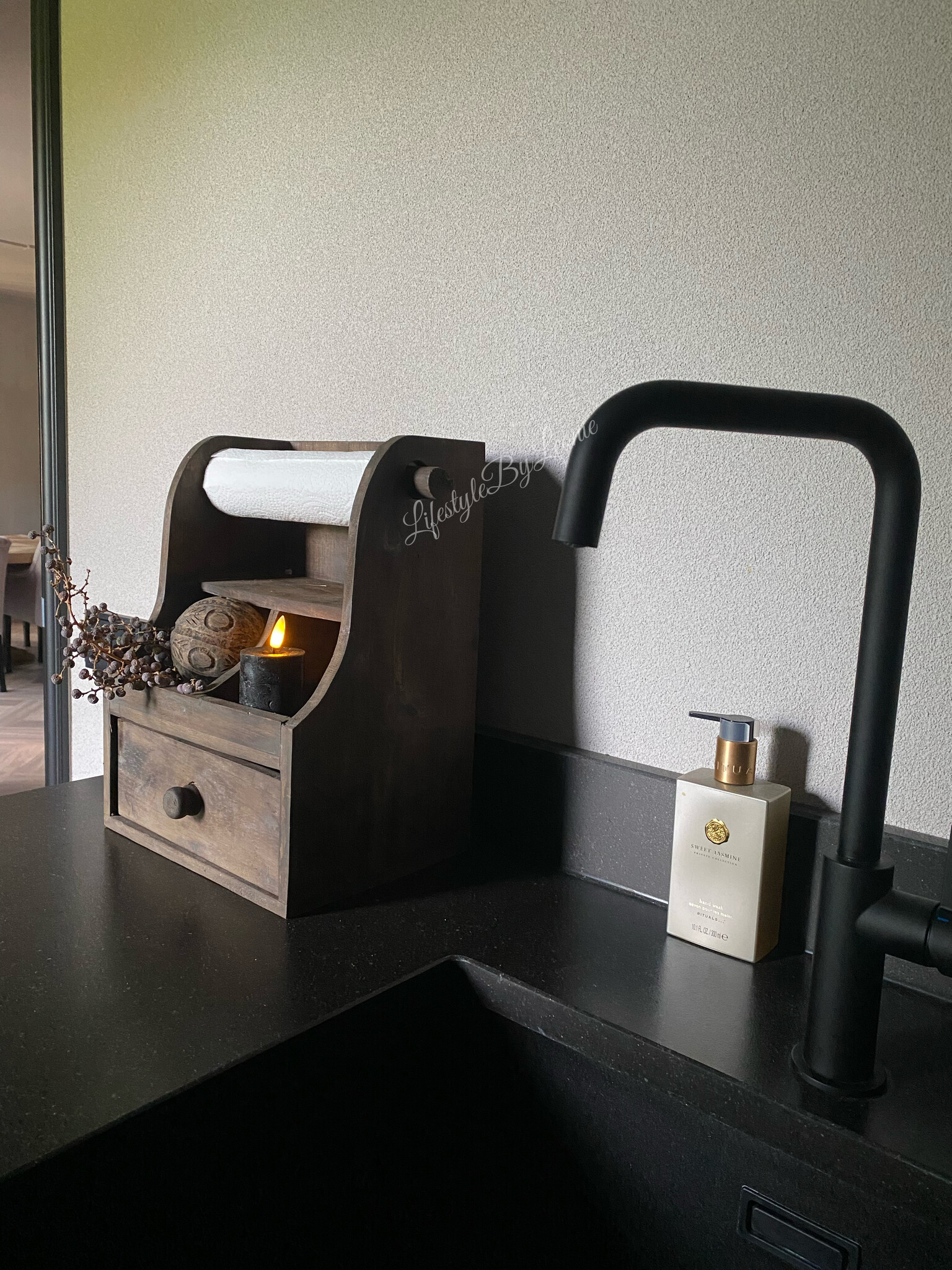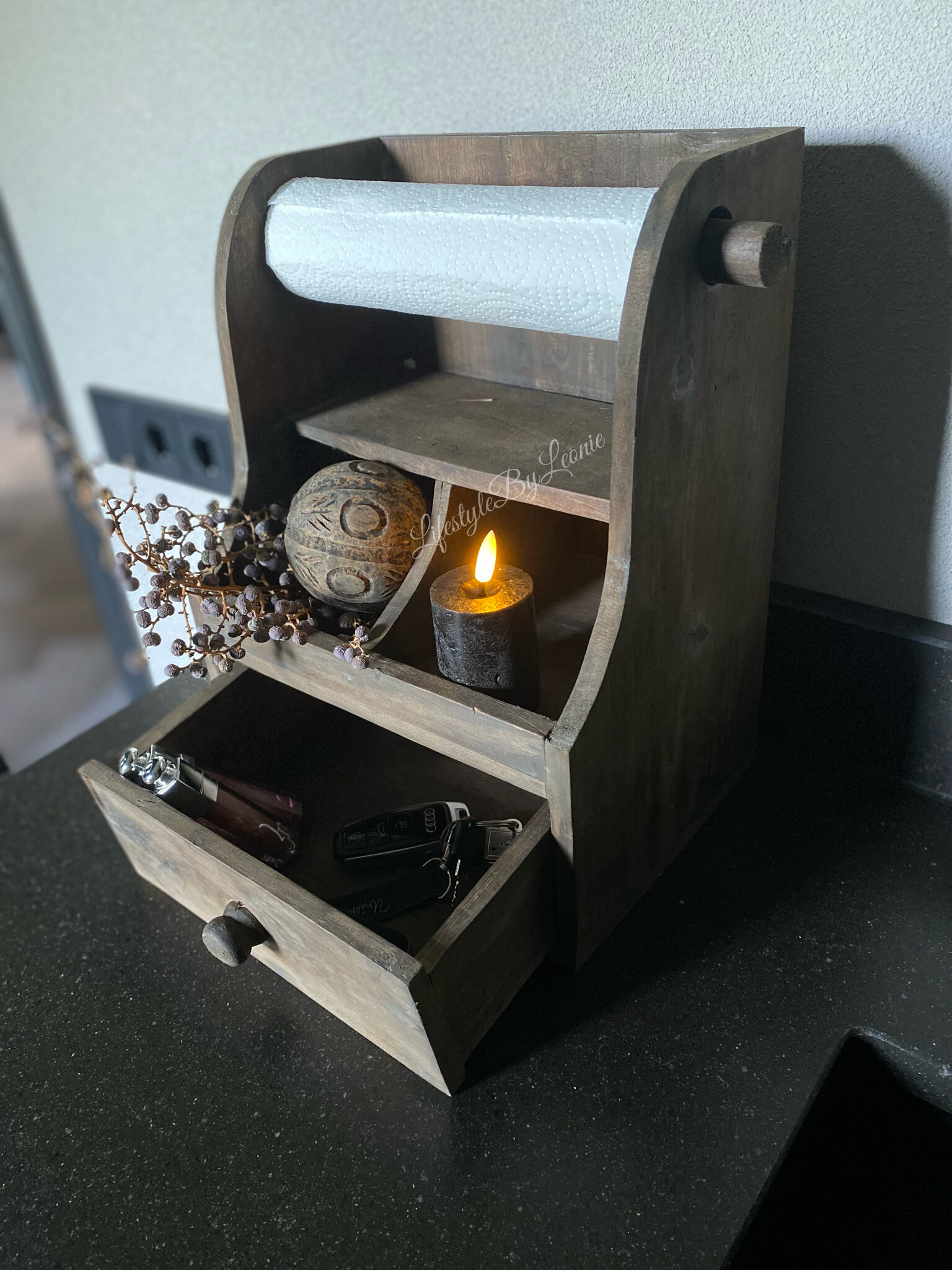Houten gruttersbak / keukenrolhouder Brown wash 35 x 26 cm