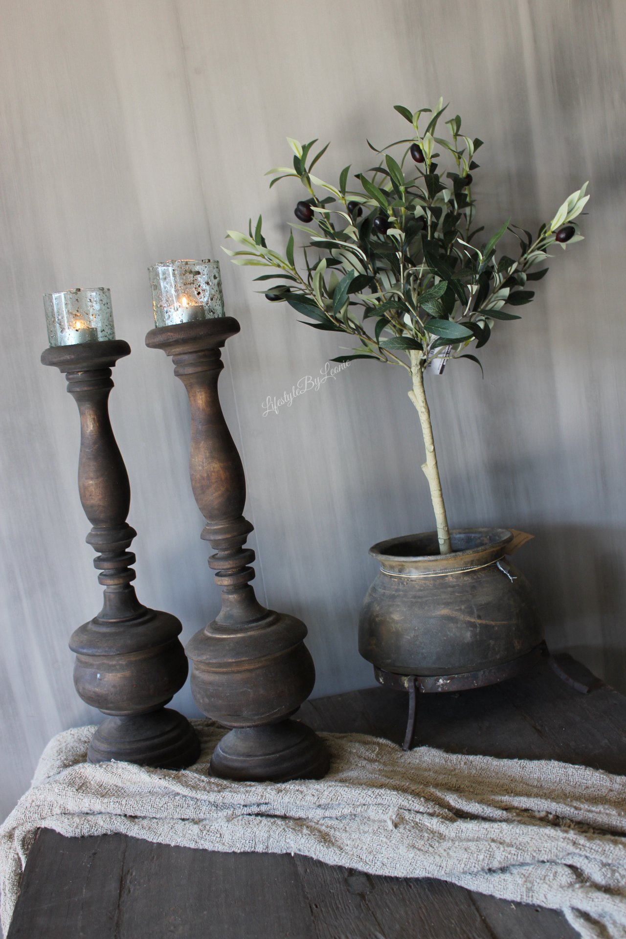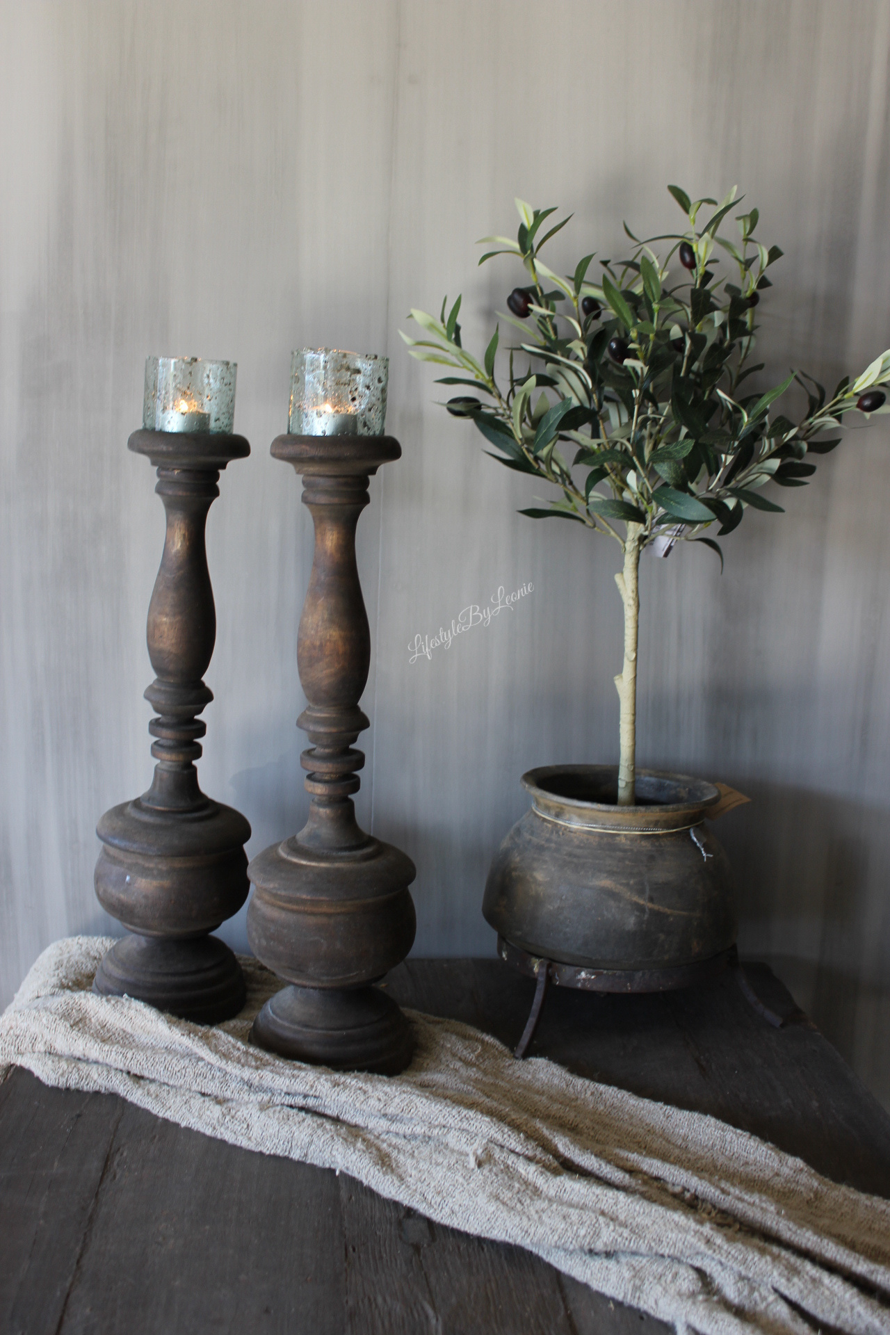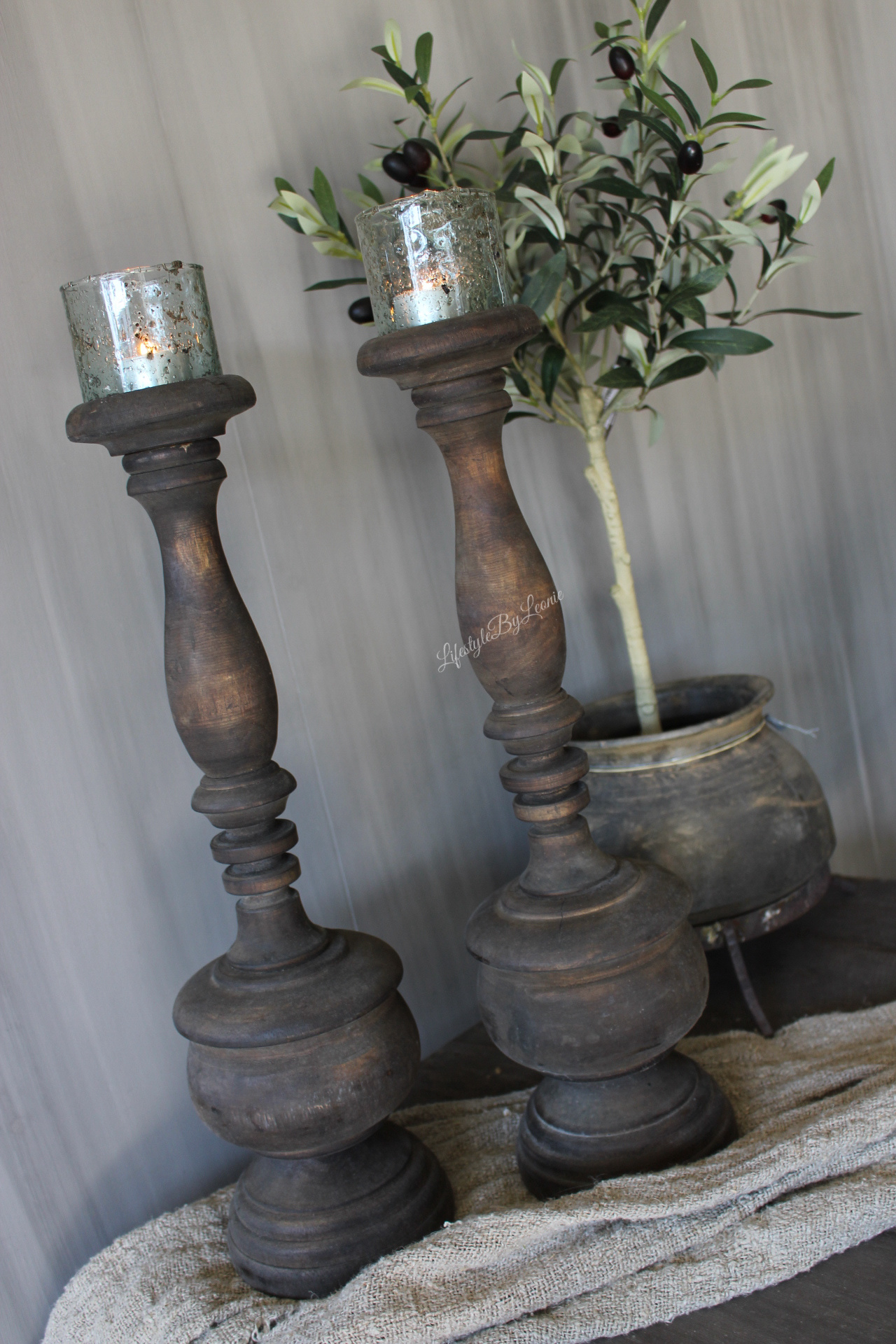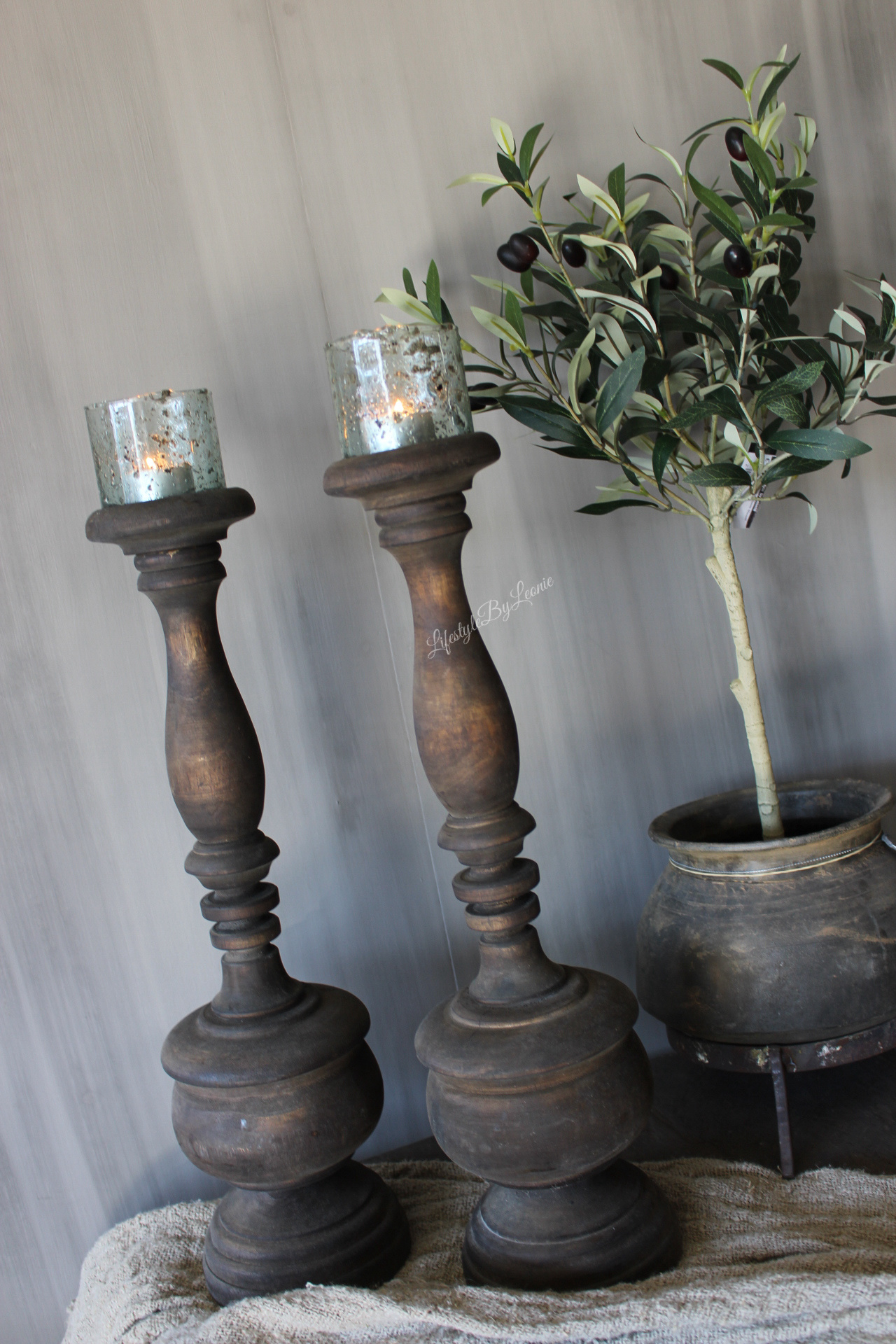 Stoere hoge baluster kandelaar voor een stompkaars of windlicht