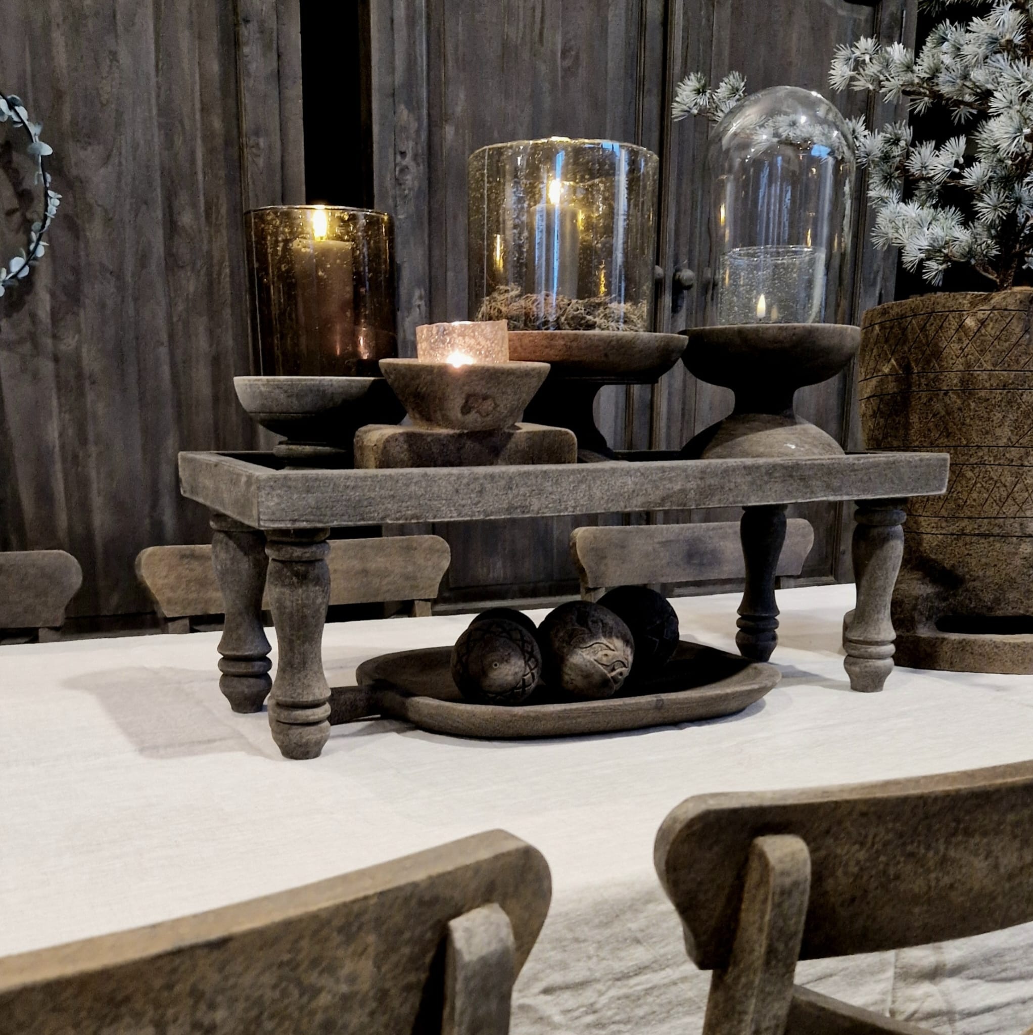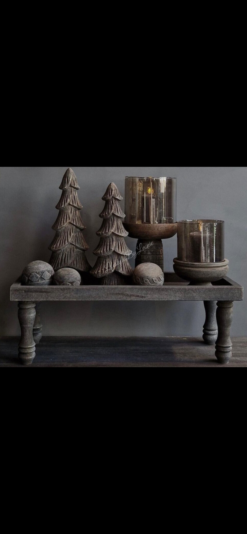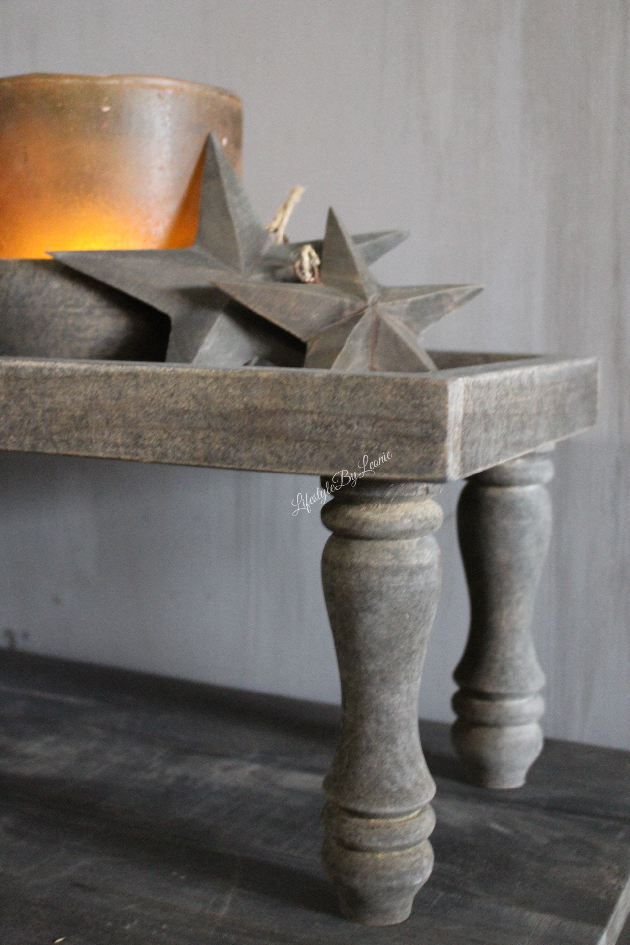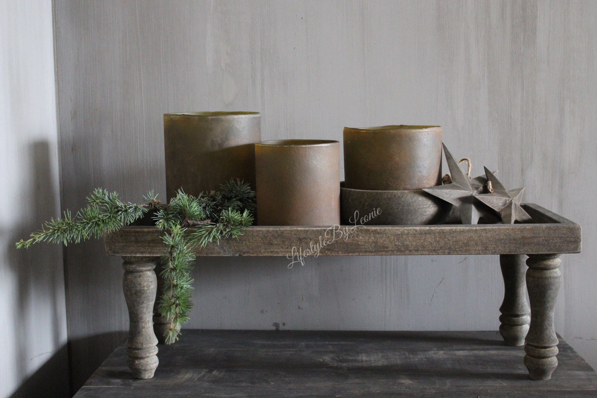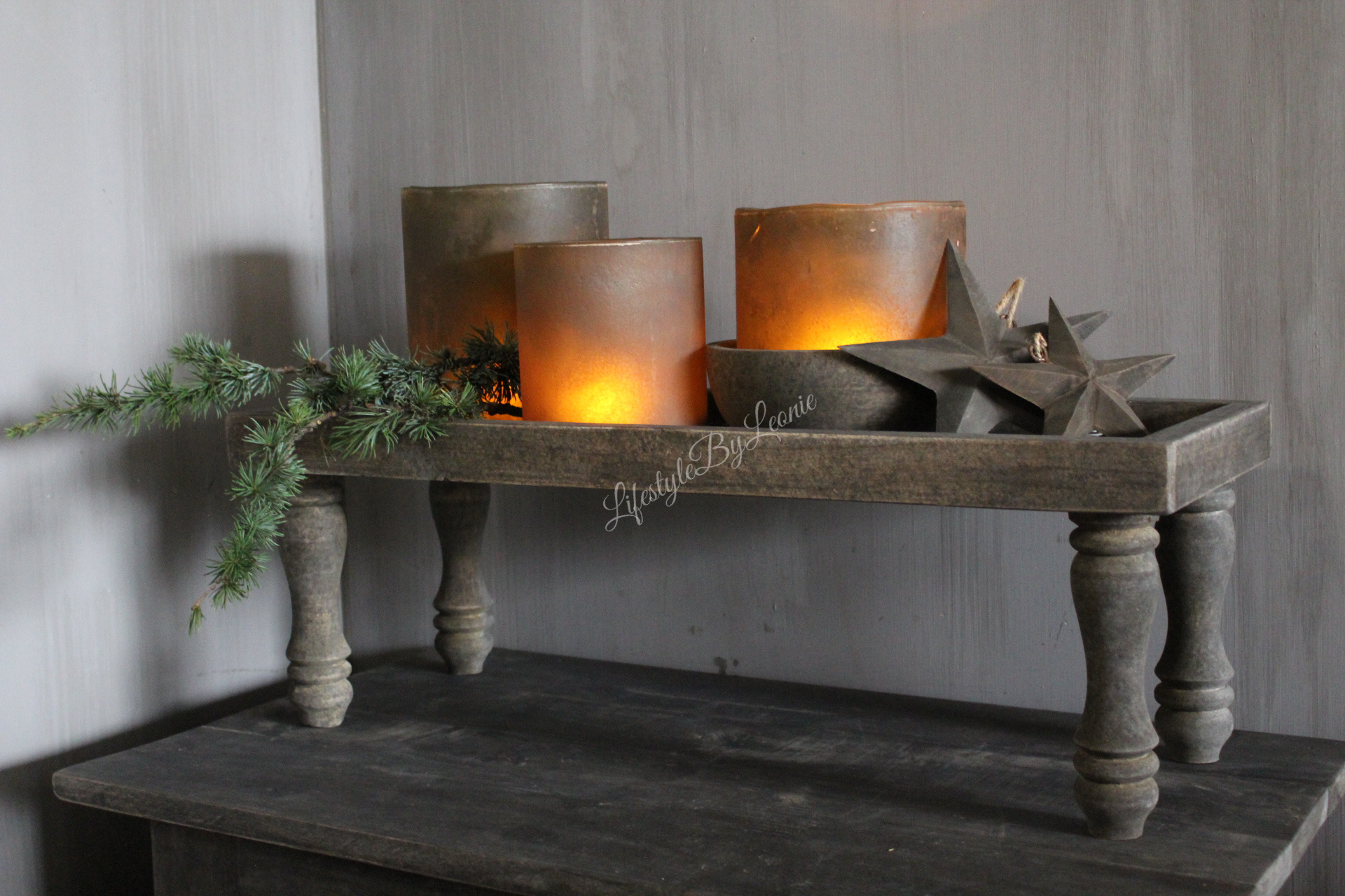 Houten lange smalle tray op pootjes. Leuk met wat windlichten of kerst decoratie.